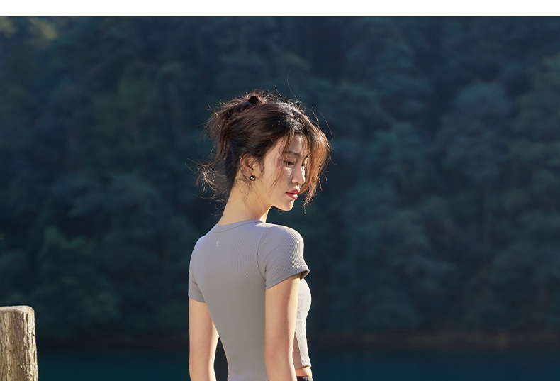 【路路精选】春季新款户外运动瑜伽服女普拉提运动高弹力轻薄速干透气健身T恤