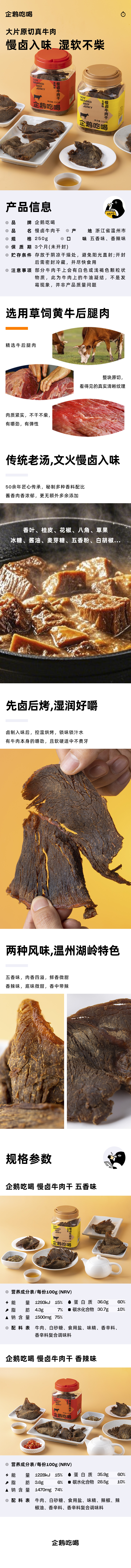 企鹅吃喝|温州慢卤牛肉干 香辣味/五香味可选 原切牛肉 慢卤入味 越嚼越香