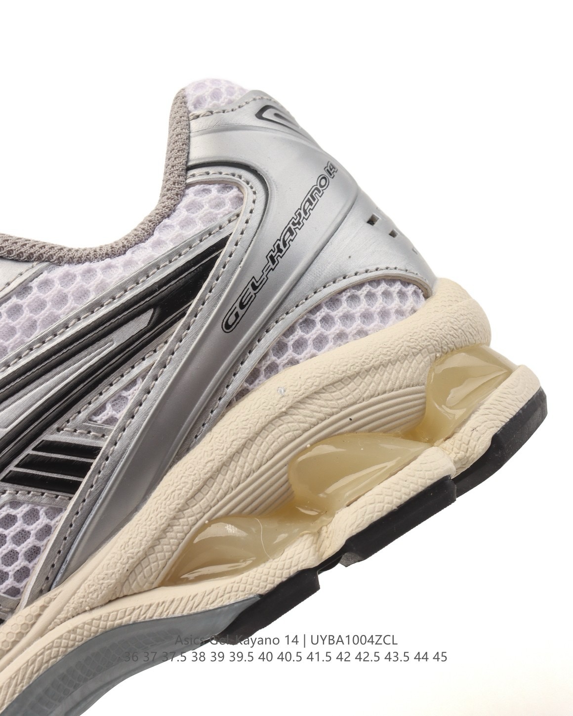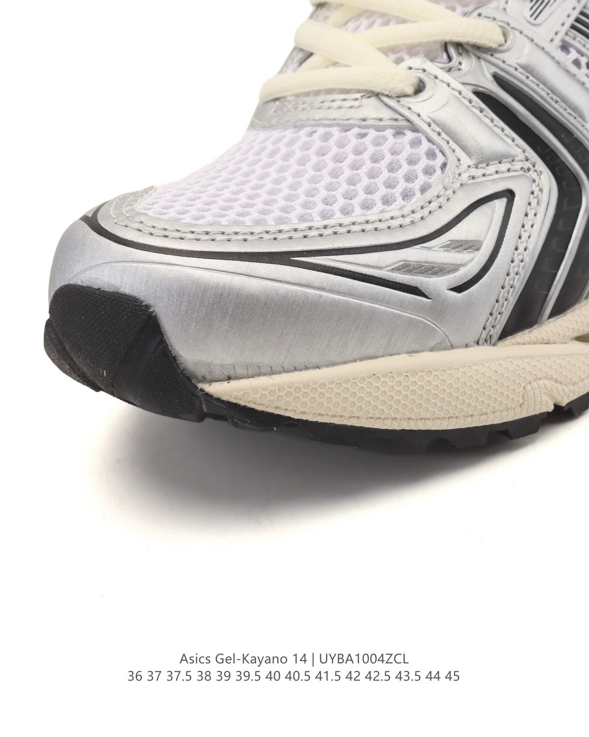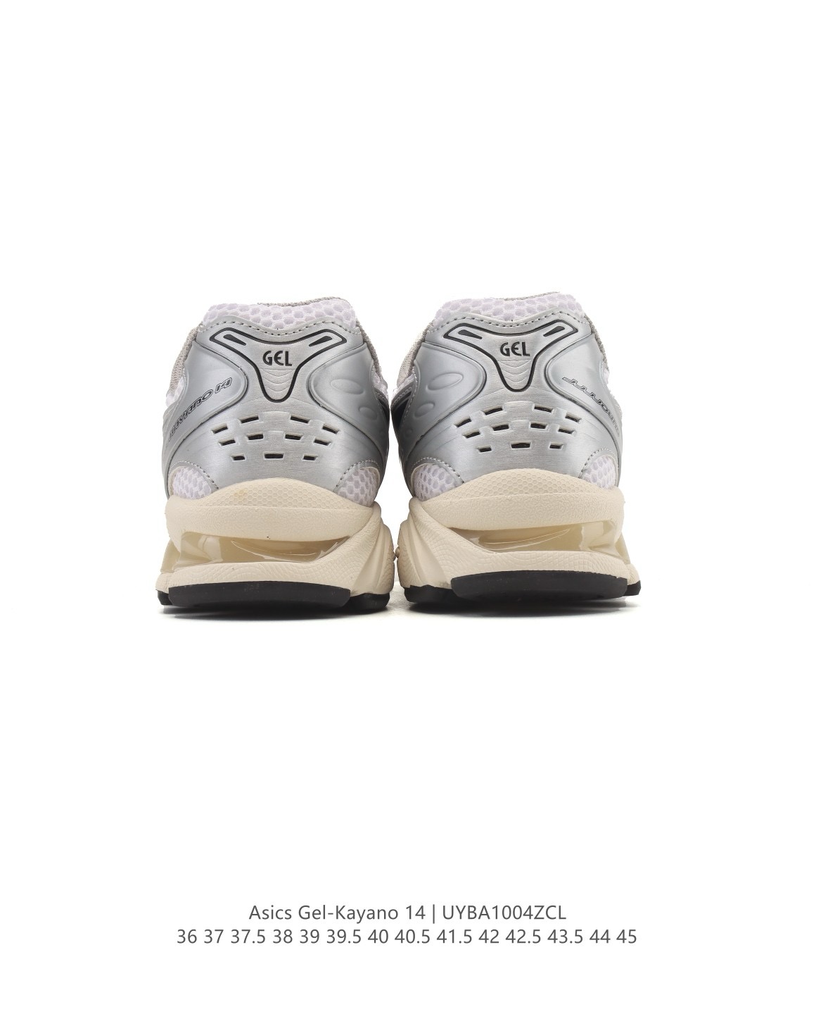【公司级 真标】亚瑟士 Asics Gel-Kayano 14 运动休闲透气专业缓震慢跑鞋。采用工程弹性双层再生网格密度鞋面材质,后跟3D可视GEL缓震乳胶物料,升级FF BLAST PLUS全新缓震中底部位科技材质,外置高耐磨橡胶外底 稳步升级,跑出节奏。
