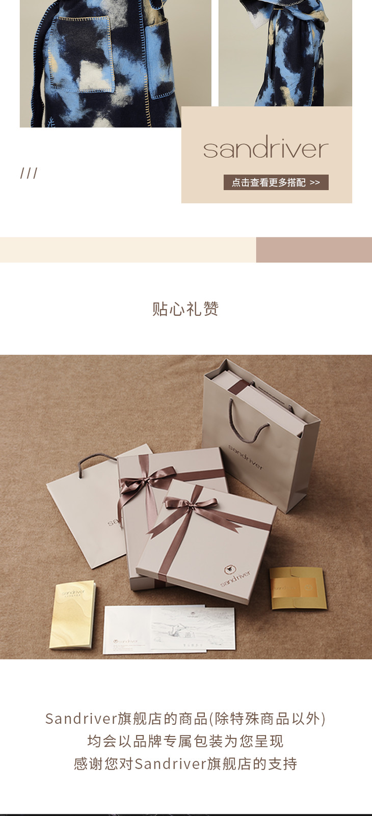 历年在巴黎时装周亮相,享誉世界的艺术羊绒品牌[Sandriver 沙涓]由羊绒布道者郭秀玲女士创立。阿拉善自有牧场纯种羔羊绒,日本国宝设计师小筱顺子,上海自有基地精工细作。承载羊绒情怀,坚持匠人品质。