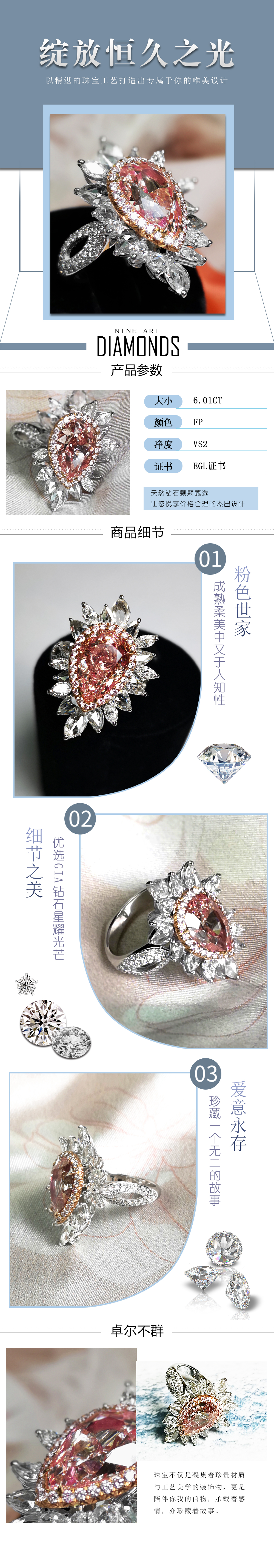天然粉钻戒指6.01克拉