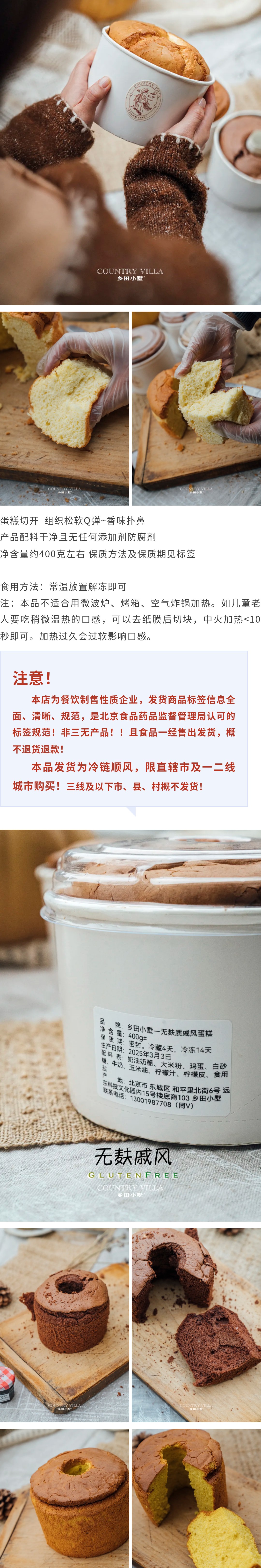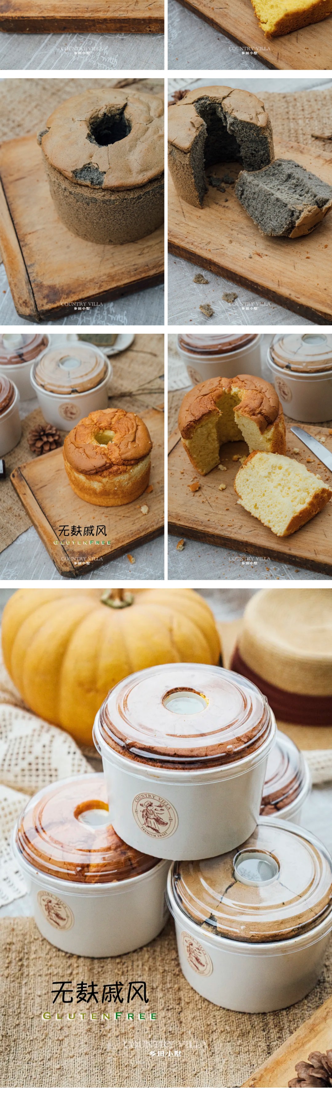 6寸无麸戚风蛋糕坯(巧克力、南瓜、黑芝麻、乳酪)