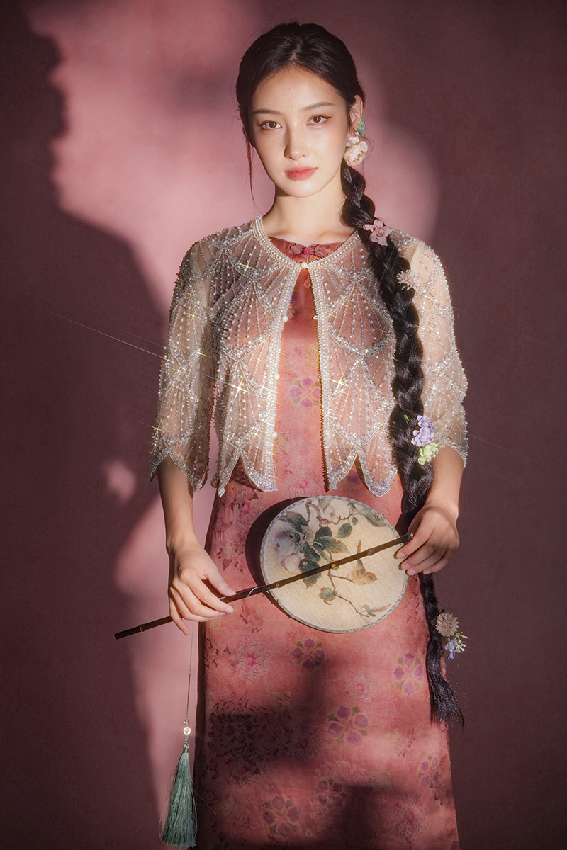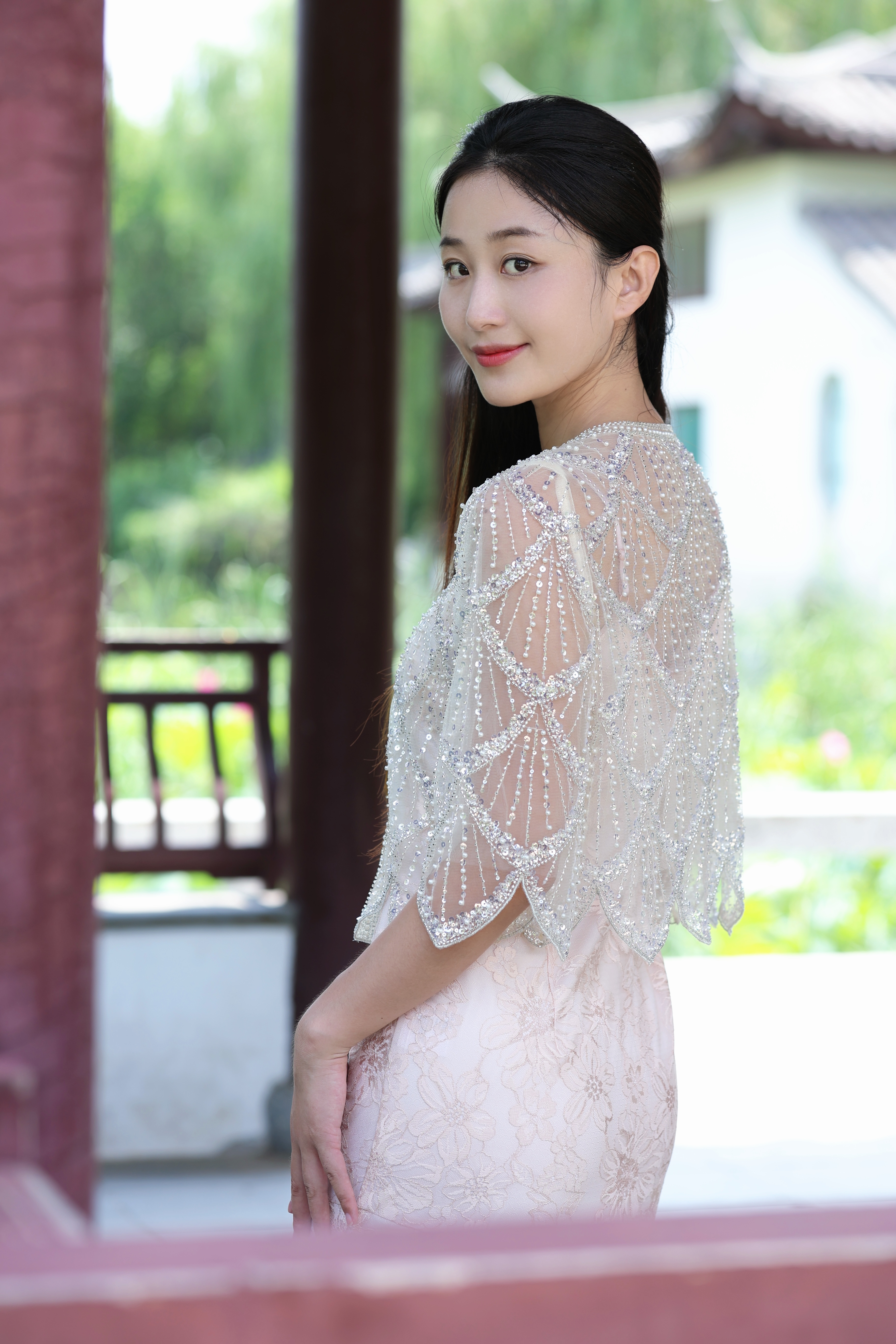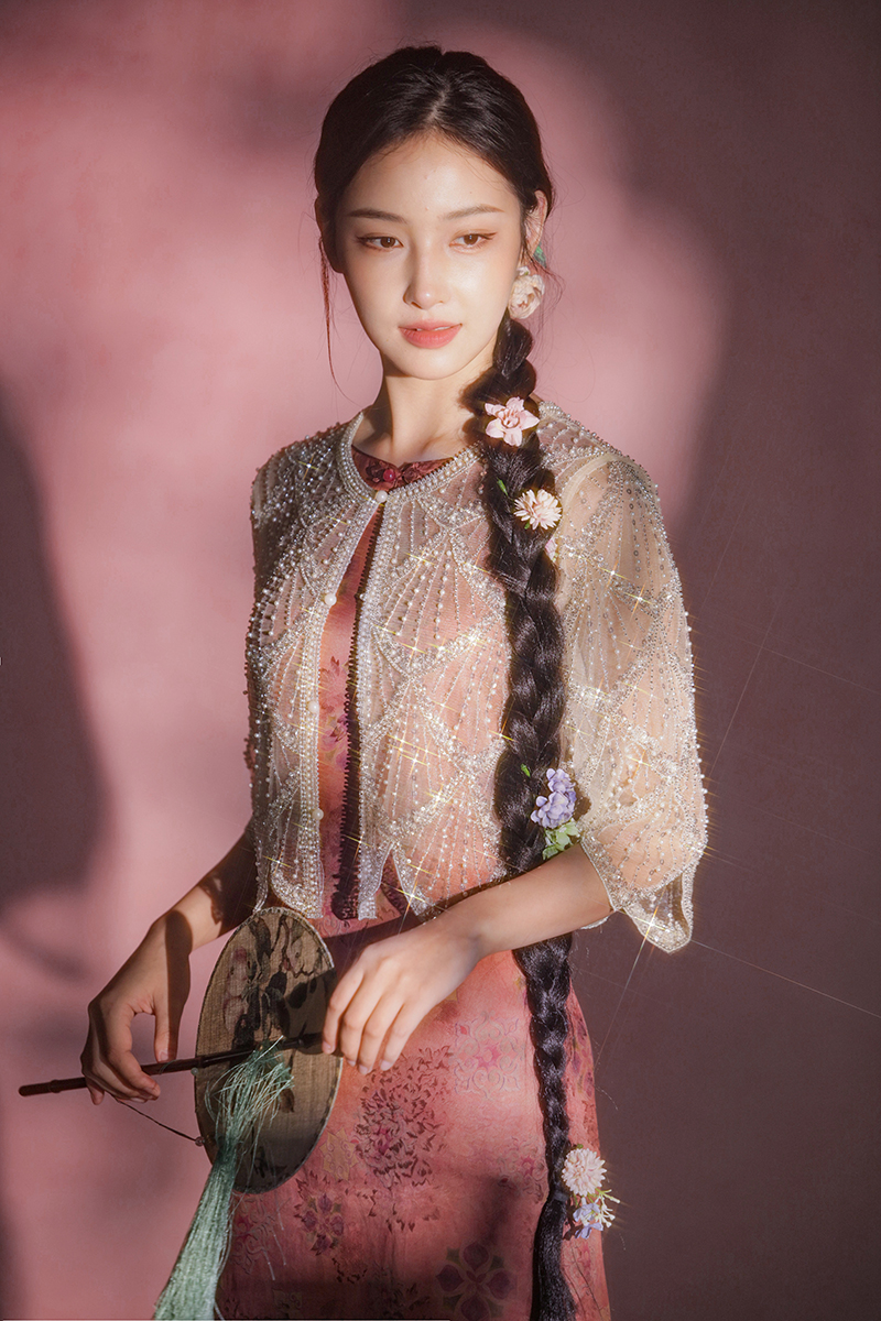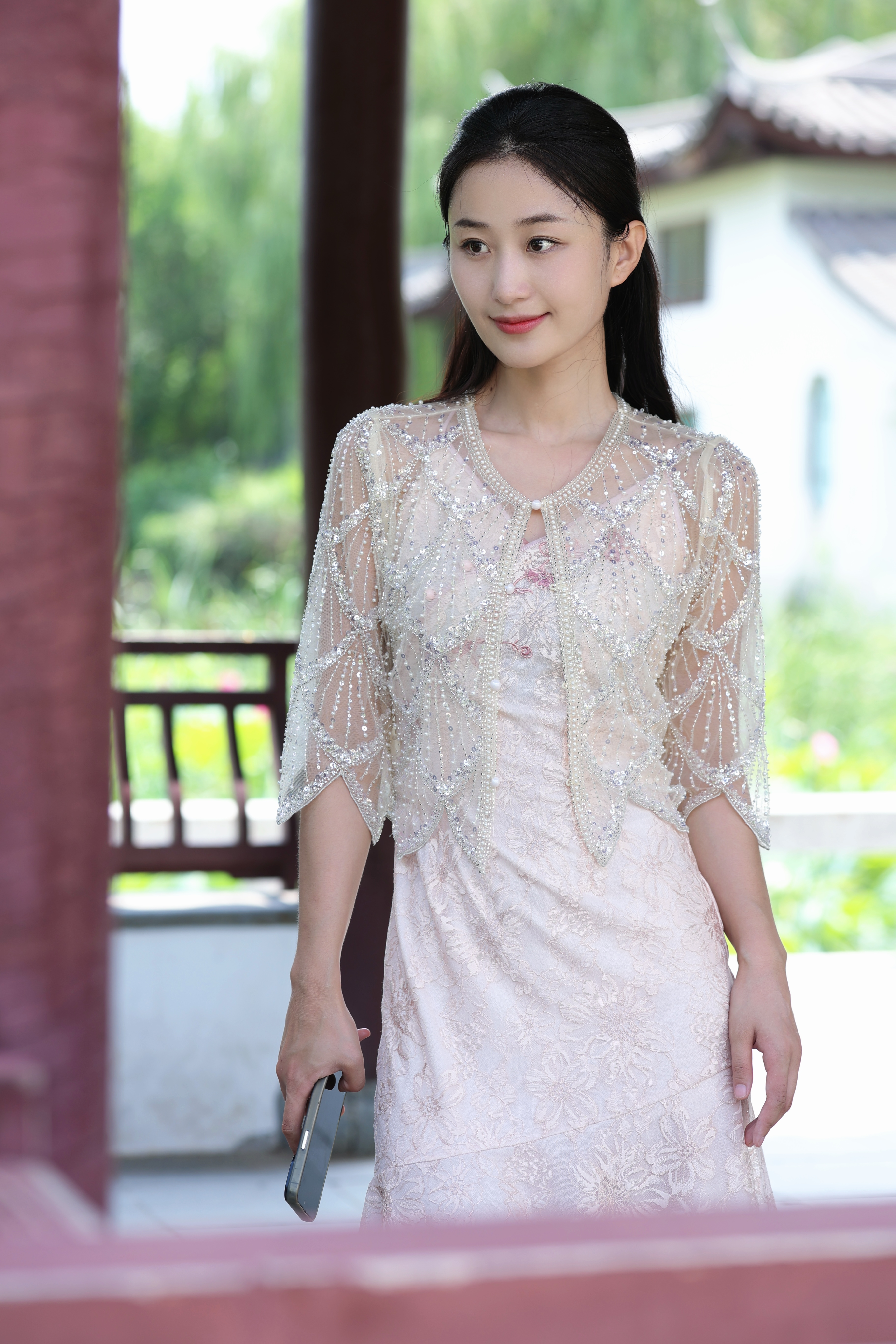 它适合披在肩头赴一场夏夜宴会,也适合裹着它,在午后的花园里喝一杯清茶。如月光织就的珠纱,披一身古典与贵气。