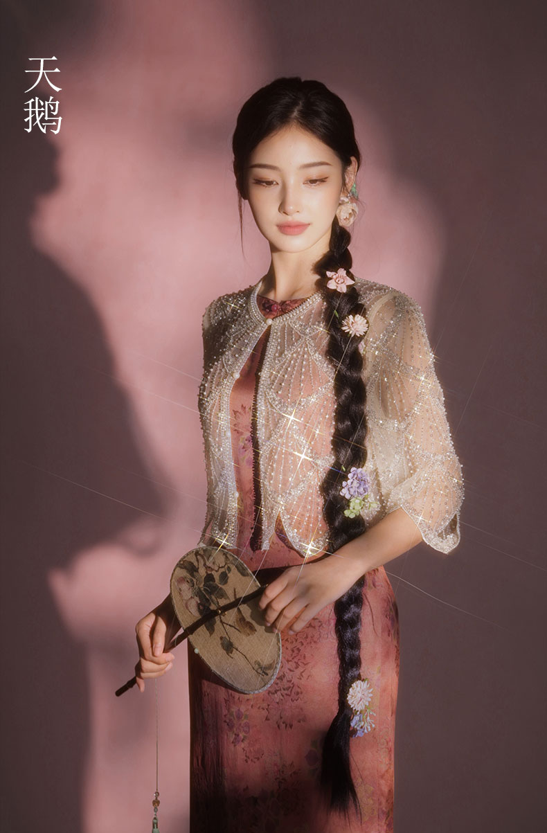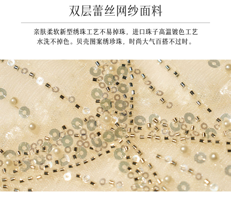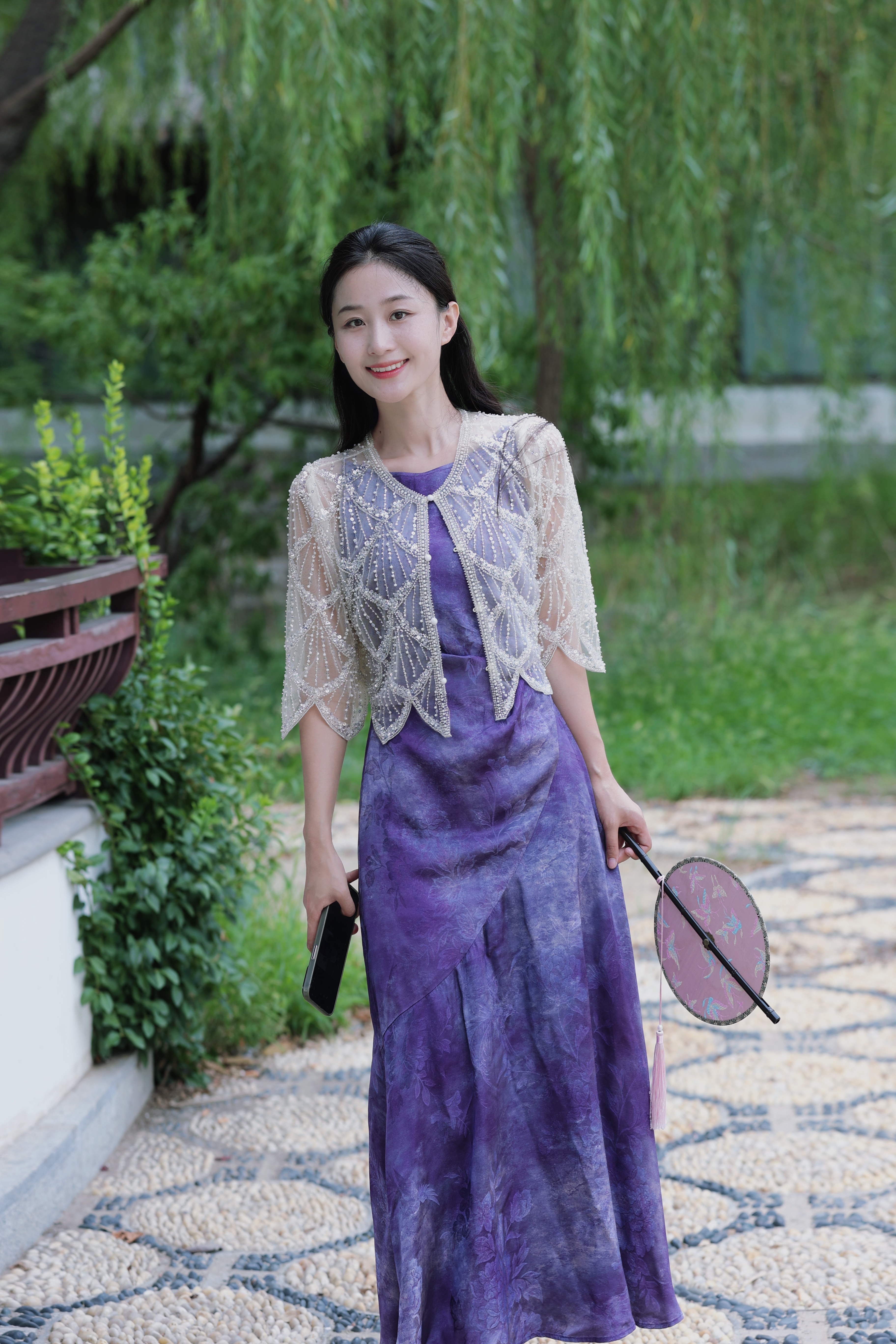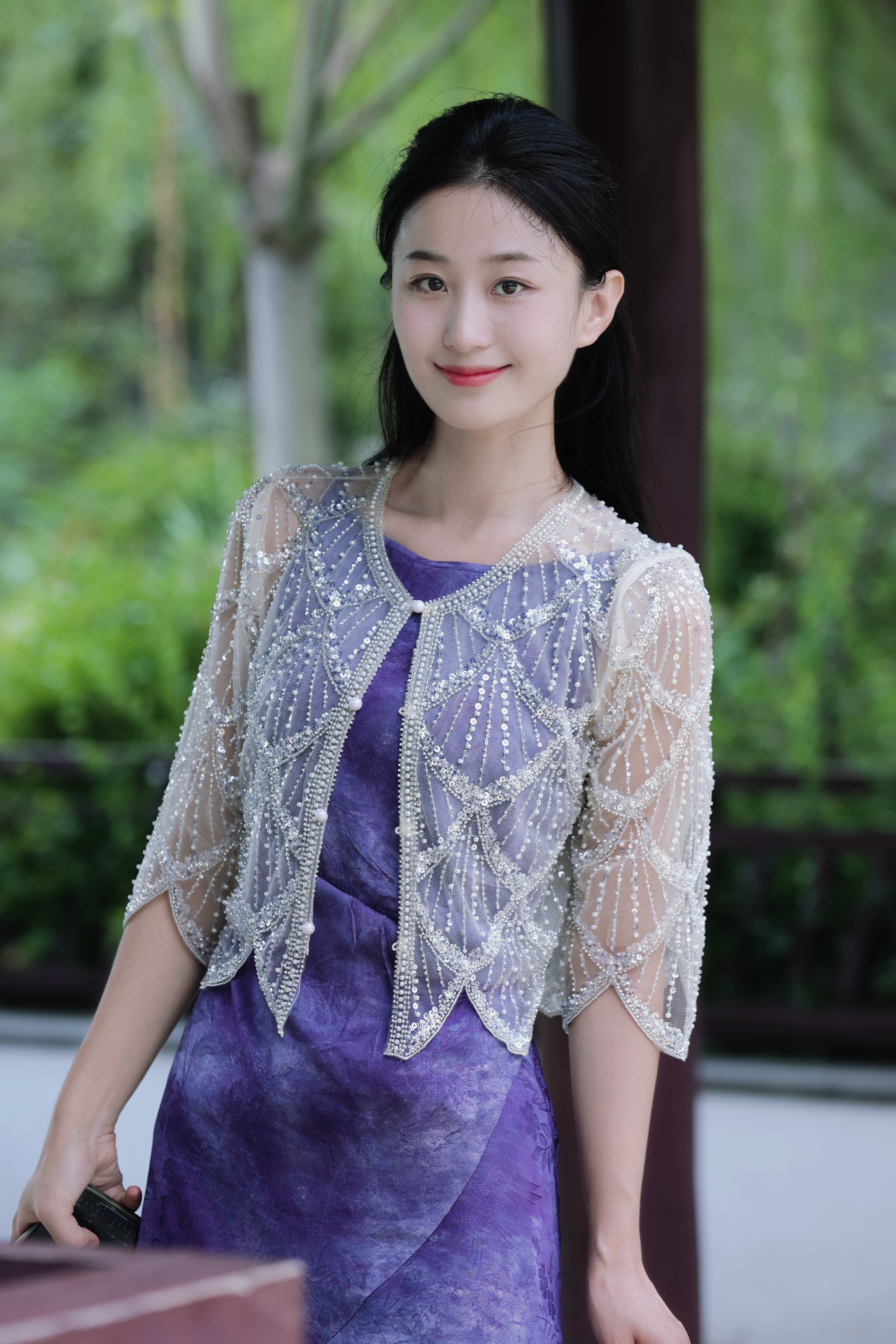 它适合披在肩头赴一场夏夜宴会,也适合裹着它,在午后的花园里喝一杯清茶。如月光织就的珠纱,披一身古典与贵气。