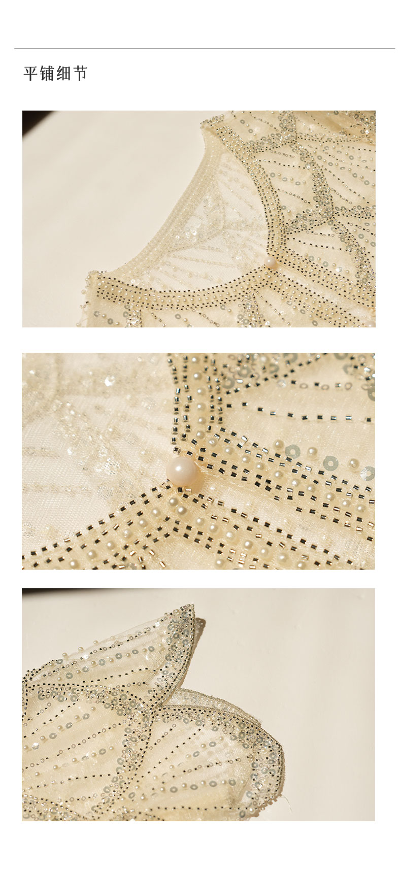 🌟通身非遗钉珠,从领口至衣摆,珍珠与亮片如星辰洒落,熠熠生辉