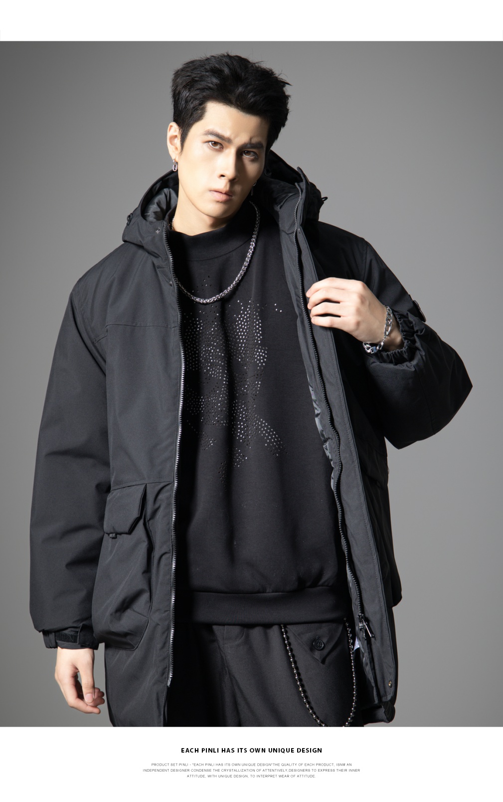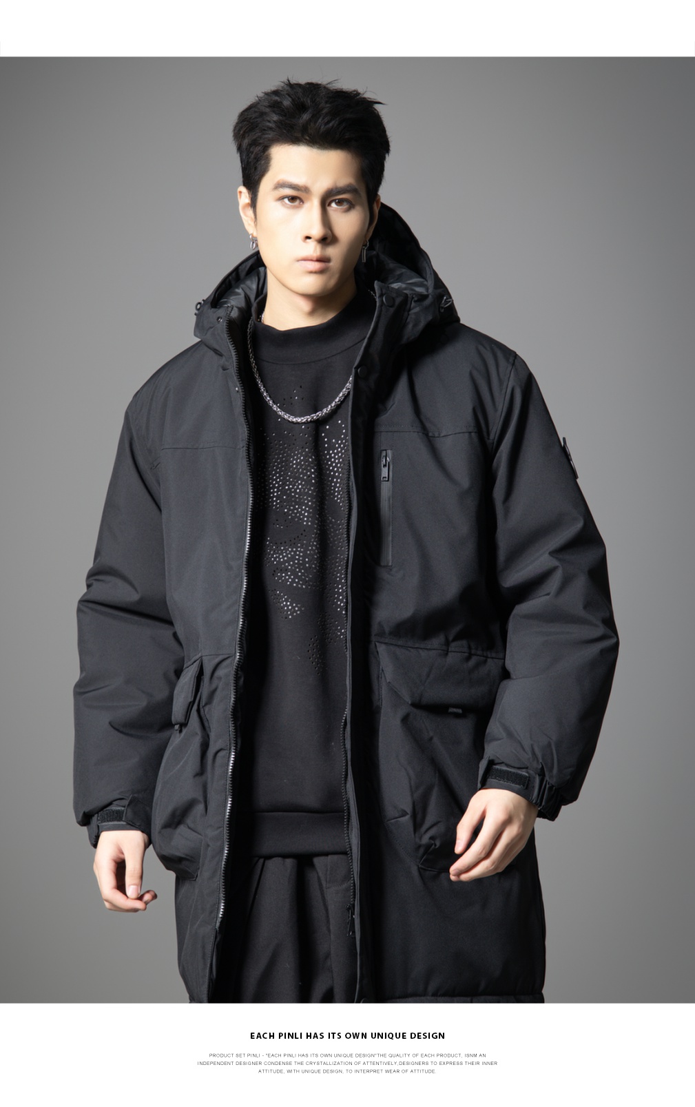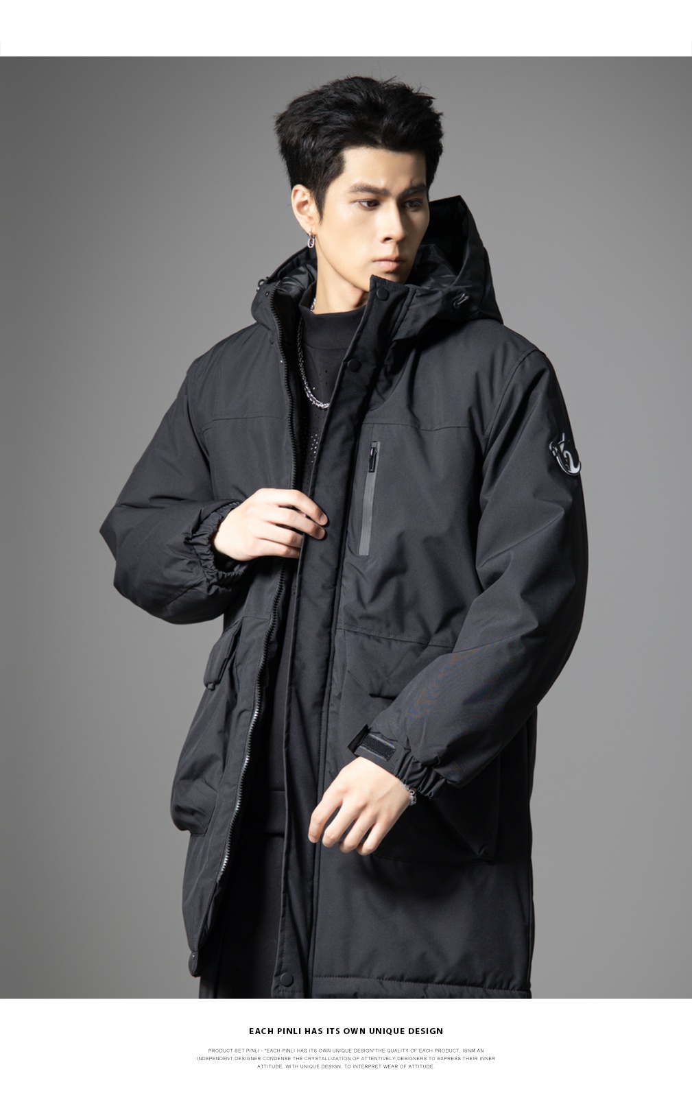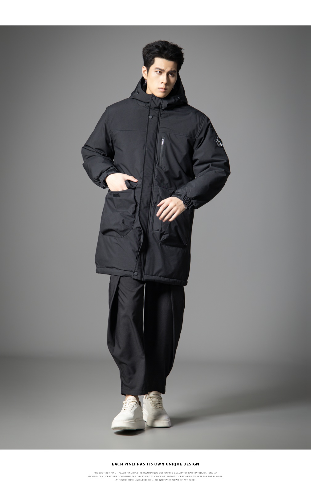 PINLI品立2025冬季新款工装大口袋长款棉衣男士宽松连帽棉服外套GD253105168