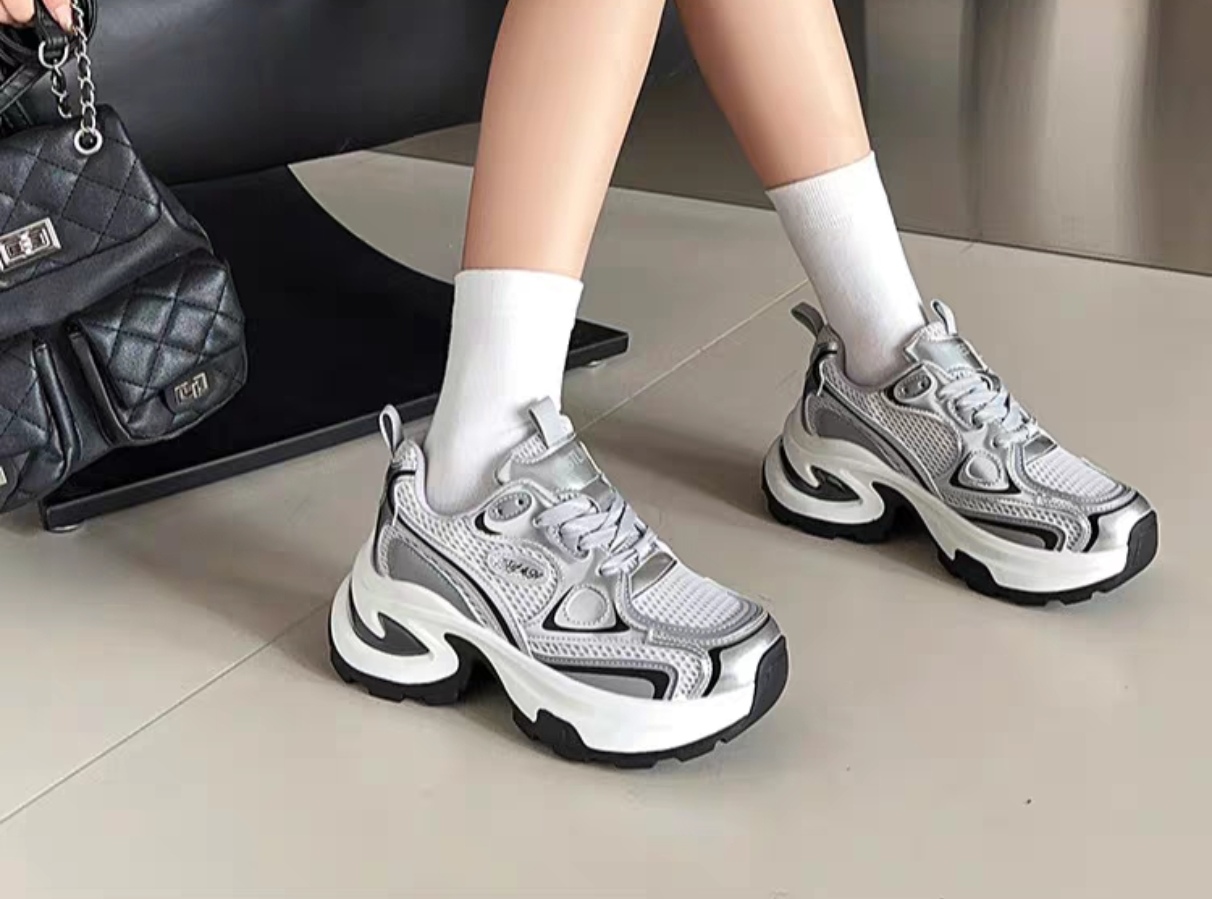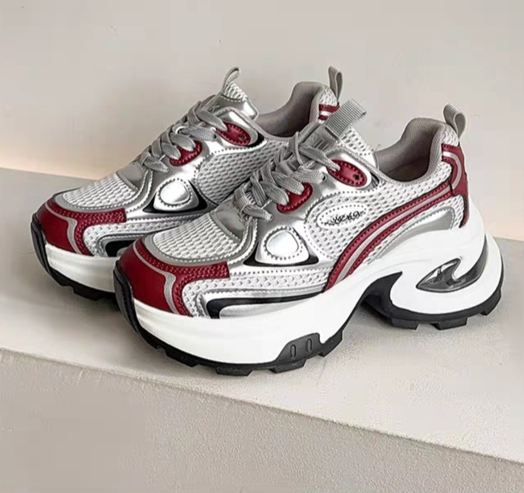 一见钟情的老爹鞋,这个颜值很难让人不心动啊,给日常穿搭加分,增高6cm,小个子的扬眉吐气啦,拍照巨出片!被复古银的老爹迷住了,车厘子红撞色也好时髦。
