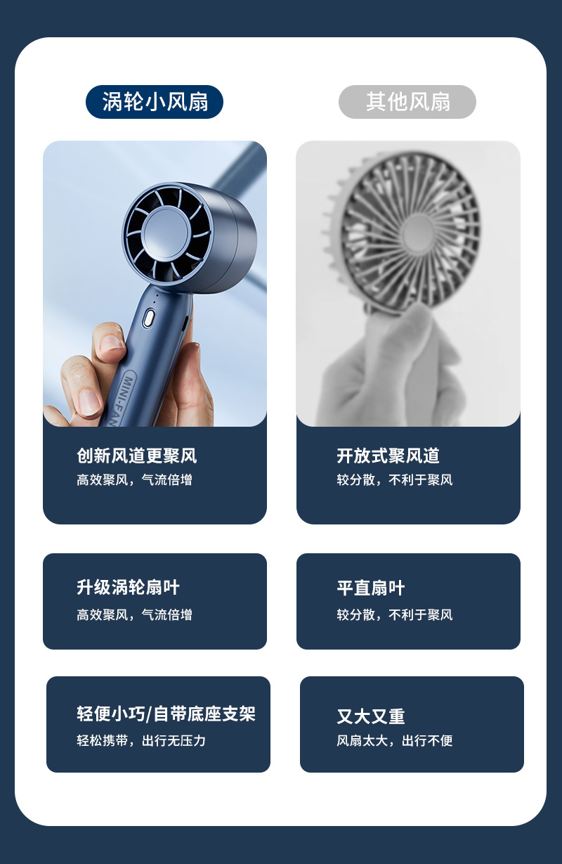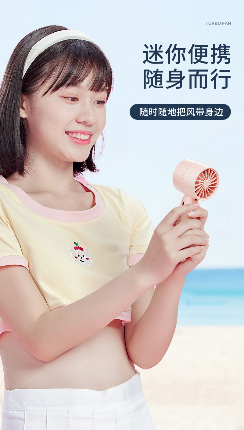 严选 usb充电手持风扇 迷你学生便携式桌面支架涡轮无叶小风扇1个