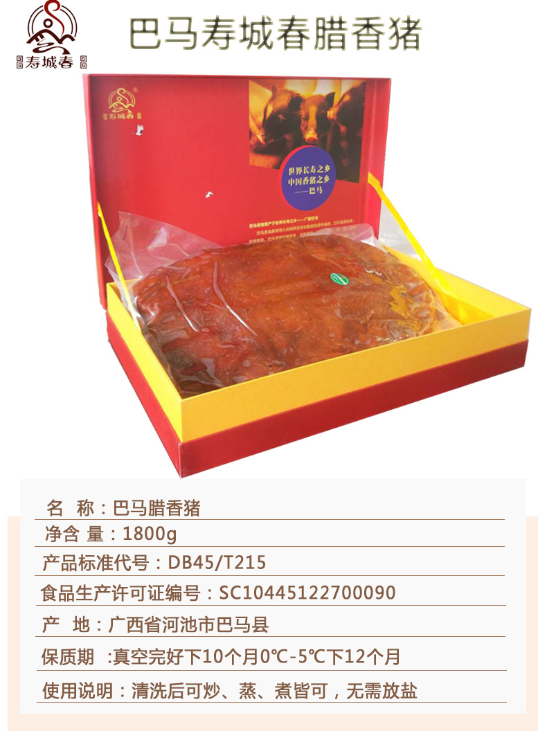 寿城春巴马腊香猪1800g/盒