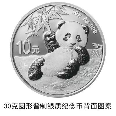 (十)30克圆形银质纪念币为普制币,含纯银30克,直径40毫米,面额10元,成色99.9%,最大发行量10000000枚。