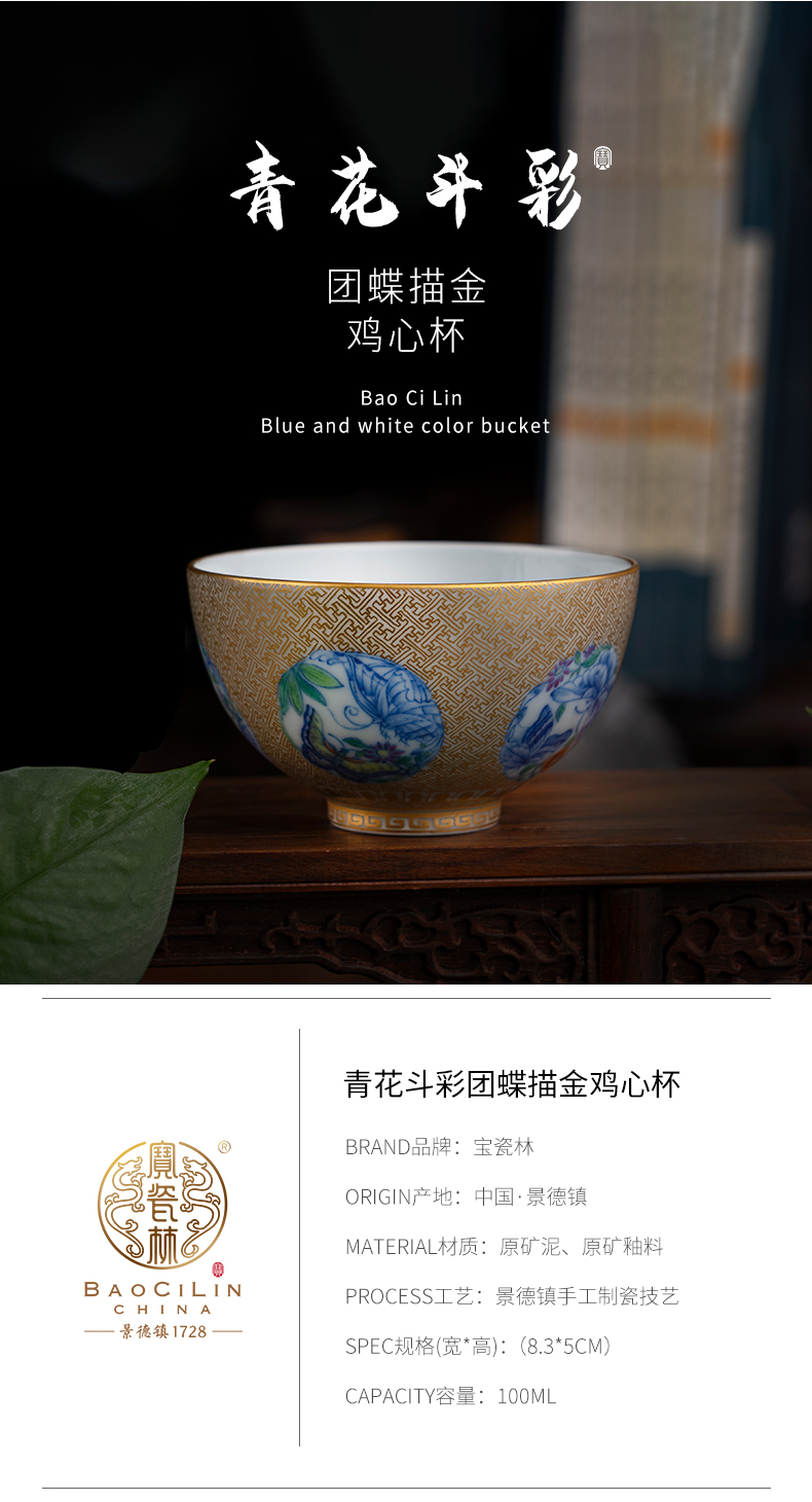 青花斗彩团蝶描金鸡心杯