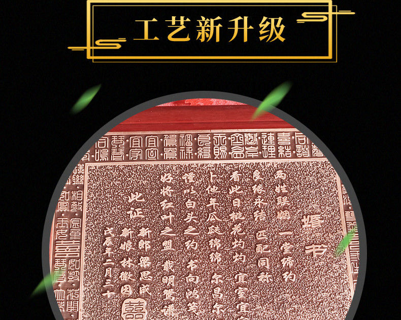 【结婚仪式感】中式婚书铜版铜板铜制订婚书结婚民国古风婚书请柬送日子礼品【属于手工定制不退换 15天内发货】