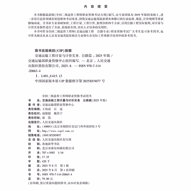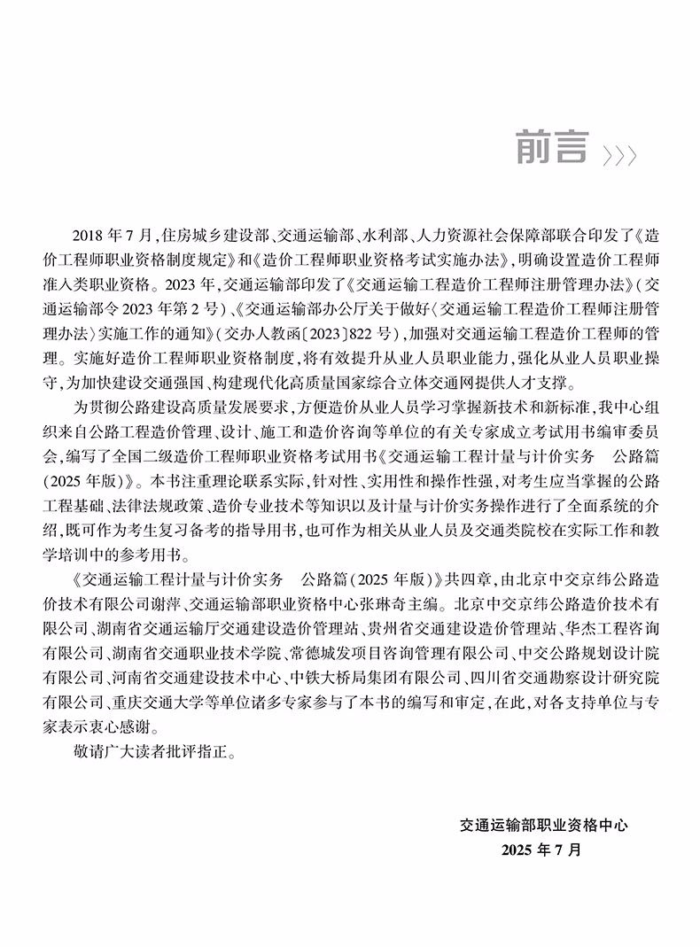 交通运输工程计量与计价实务 公路篇 2025年版全国二级造价工程师职业资格考试用书