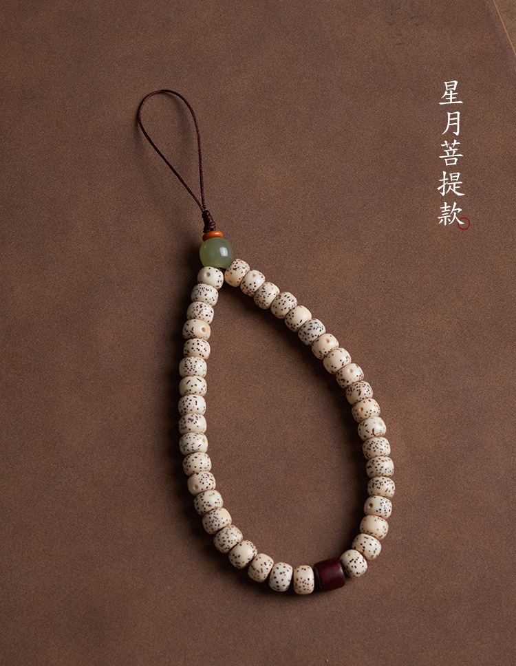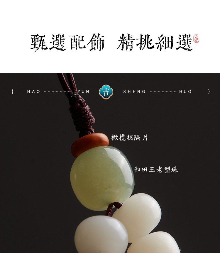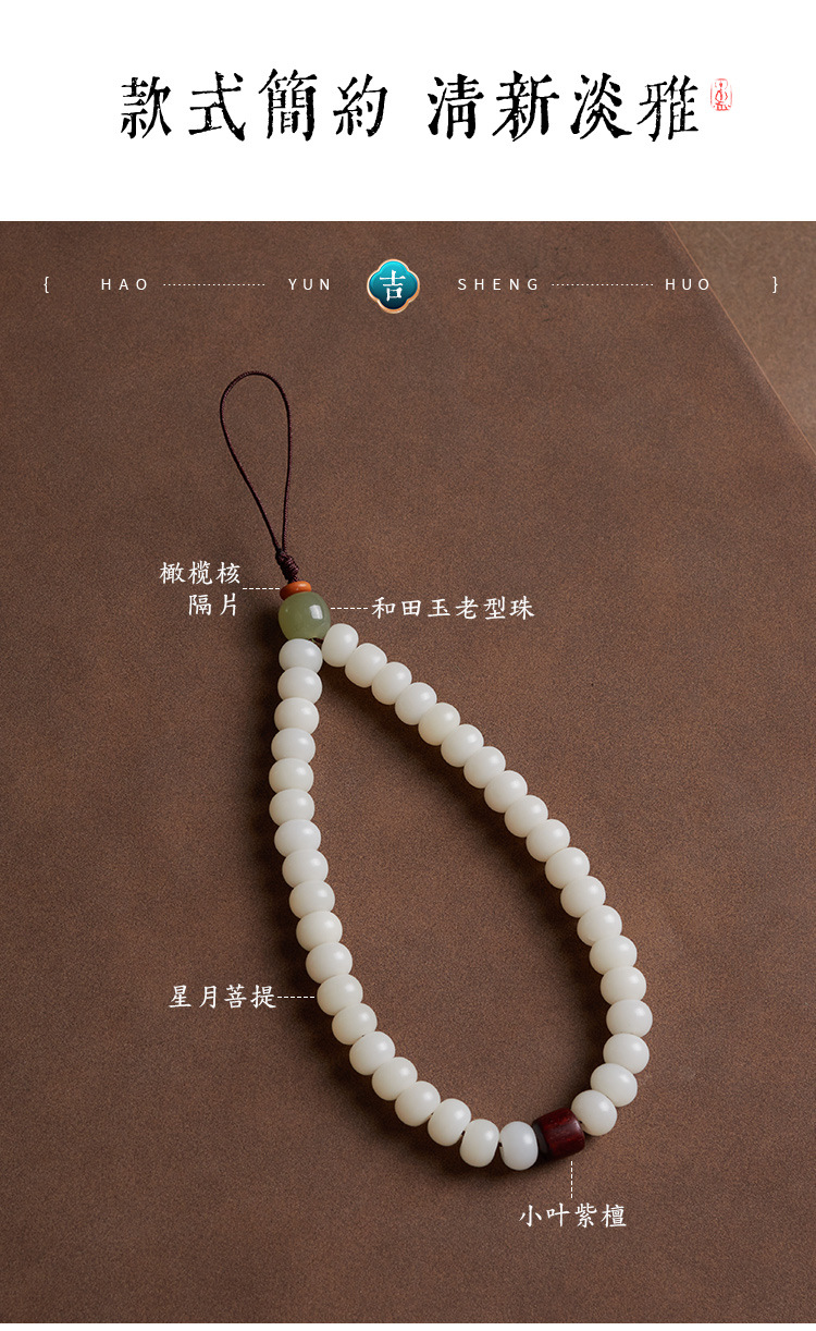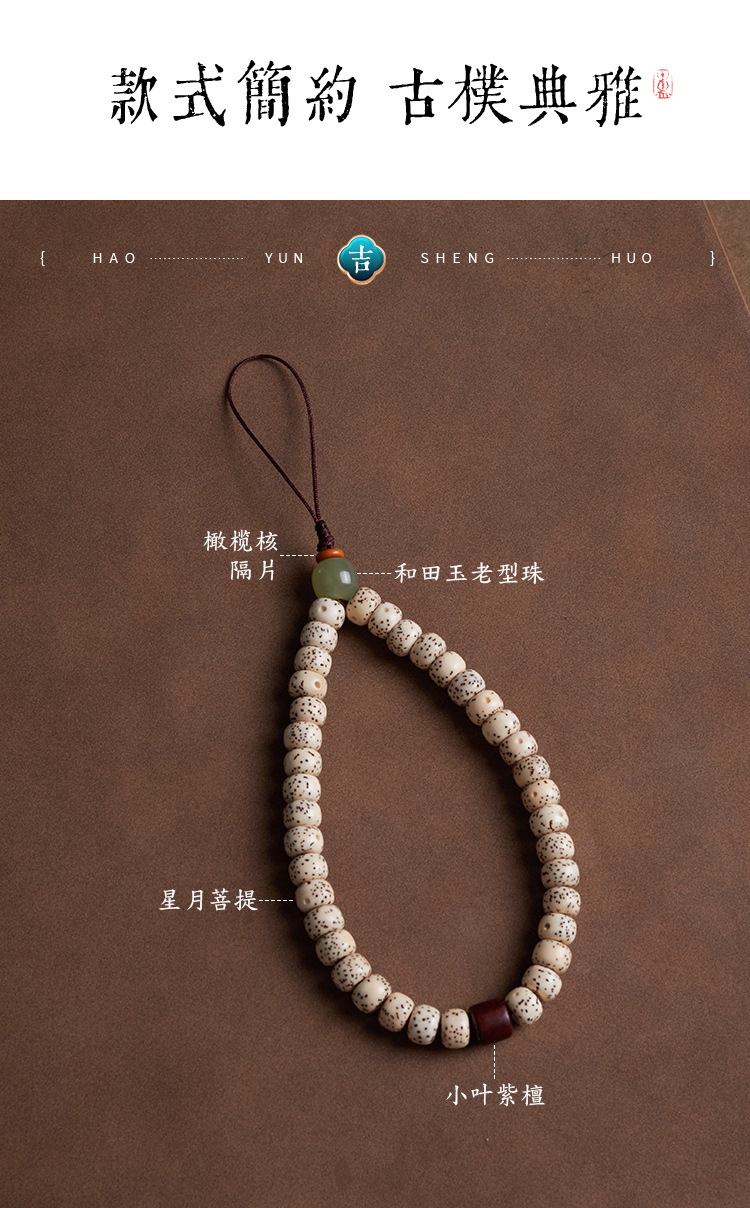 六鑫珠宝 雅韵国风天然星月和田玉菩提手机链