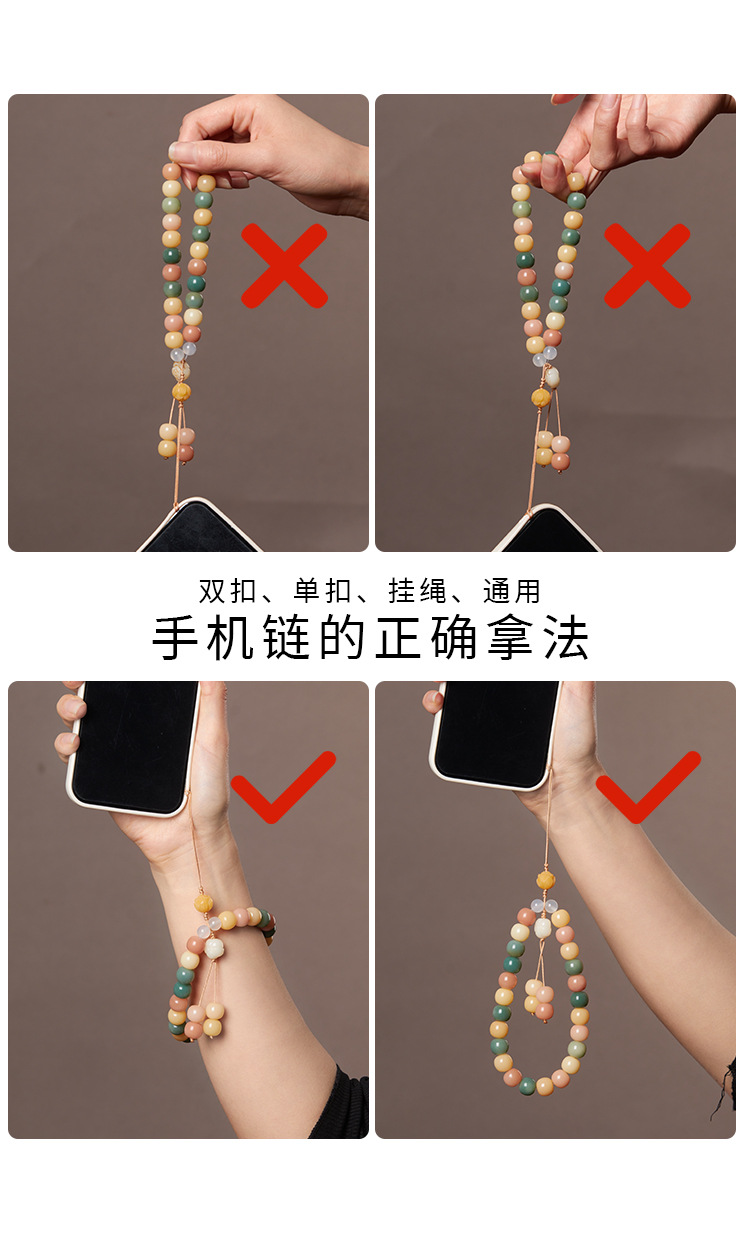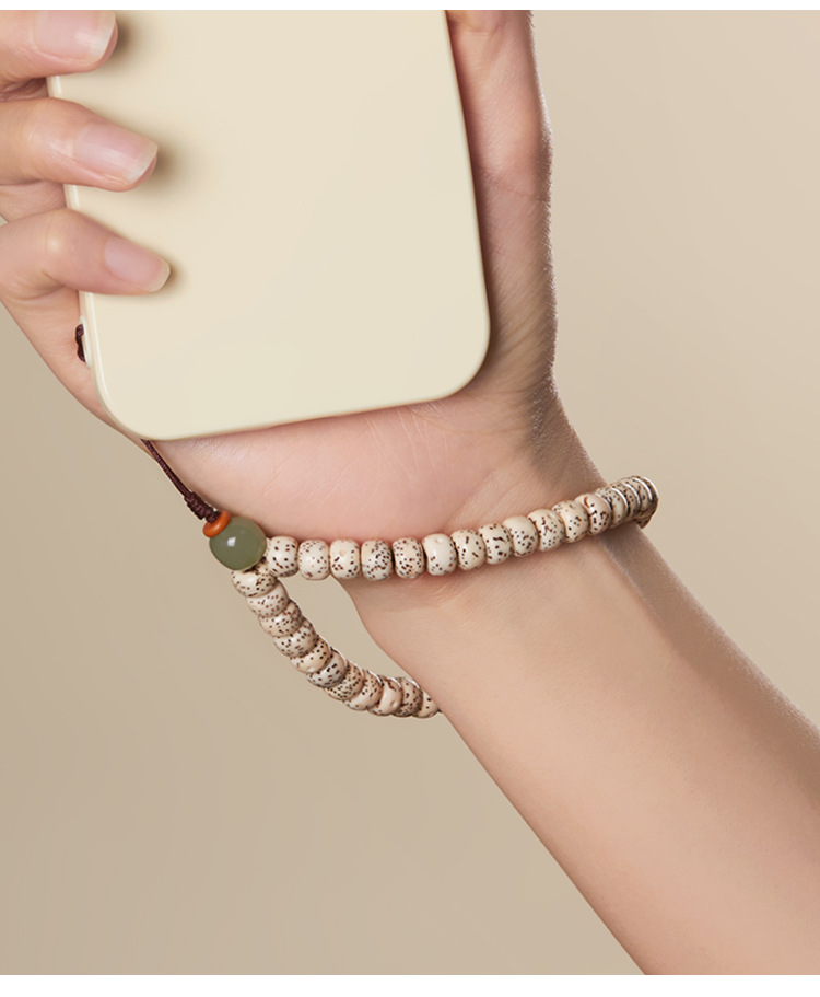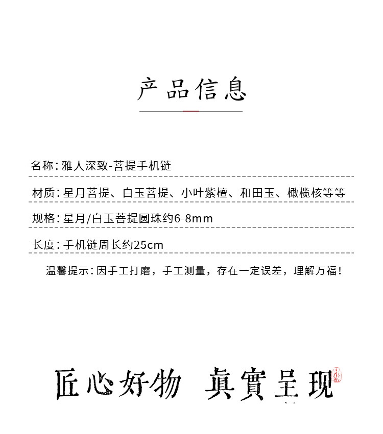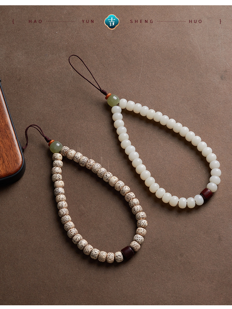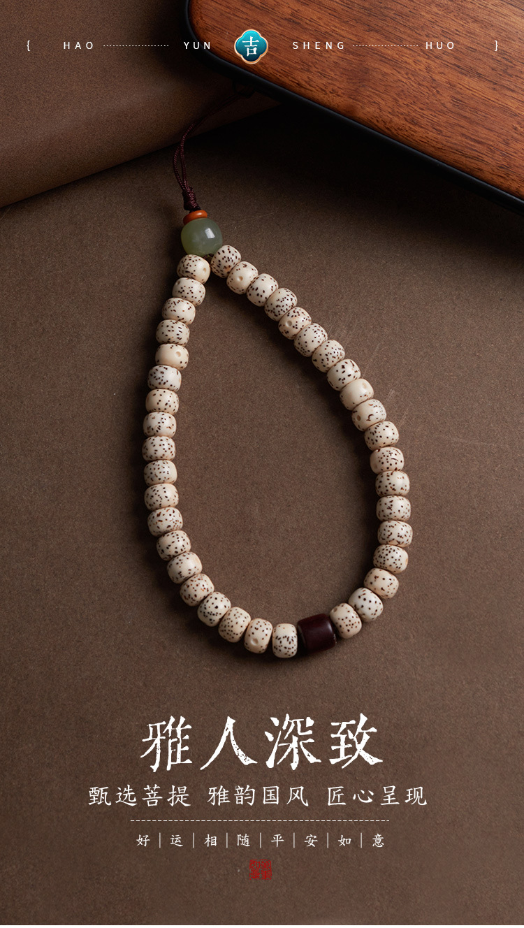 六鑫珠宝 雅韵国风天然星月和田玉菩提手机链