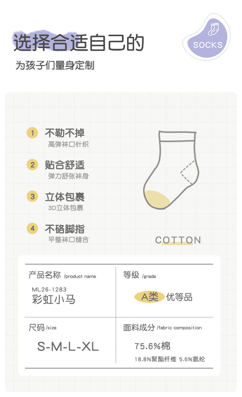 【5双装】新款儿童袜子春季卡通中筒袜可爱女童男童棉袜透气春秋A类宝宝袜 商品图4