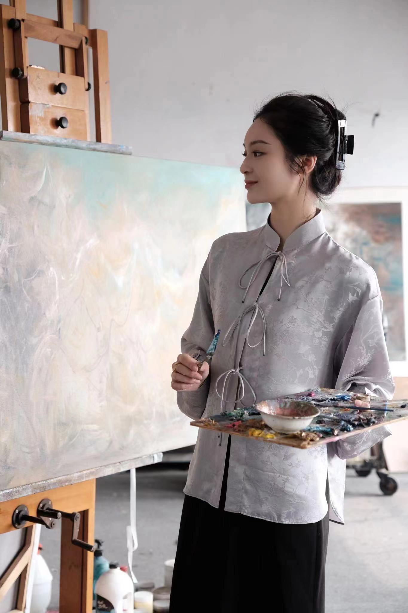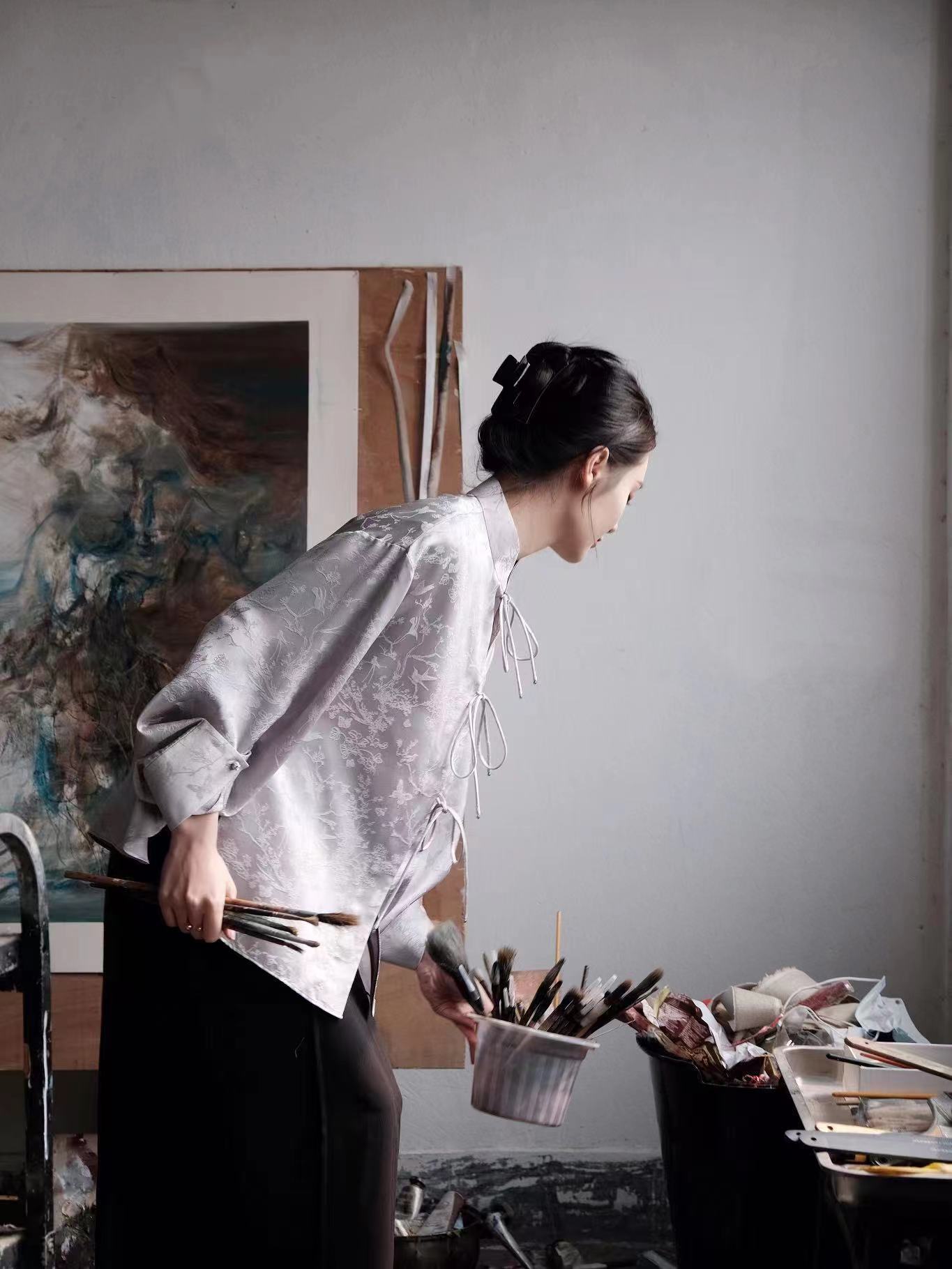 盛唐婧 |桃夭粉新中式国风提花上衣