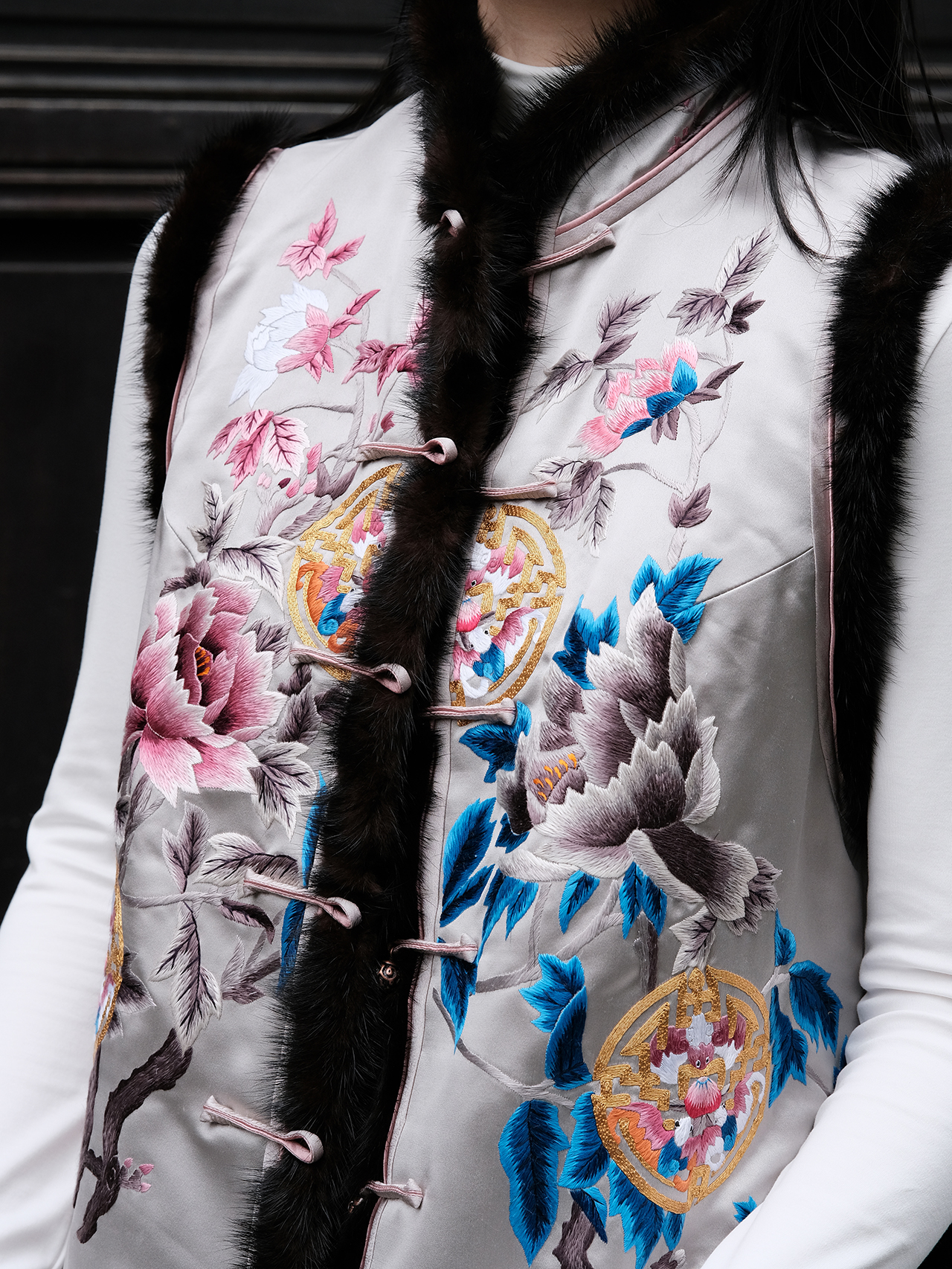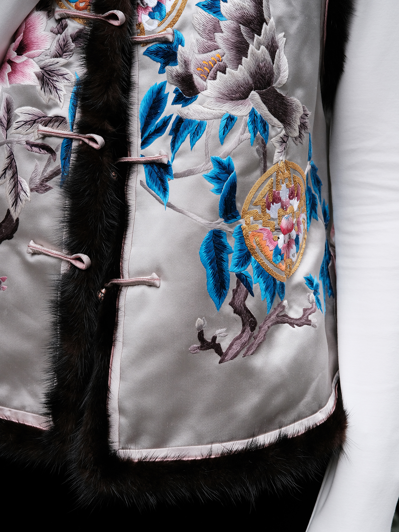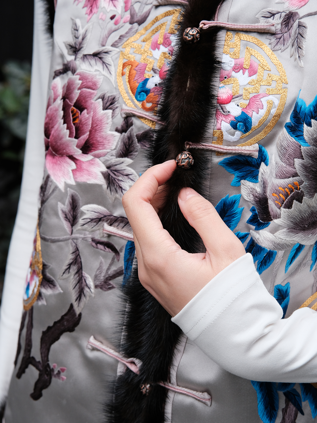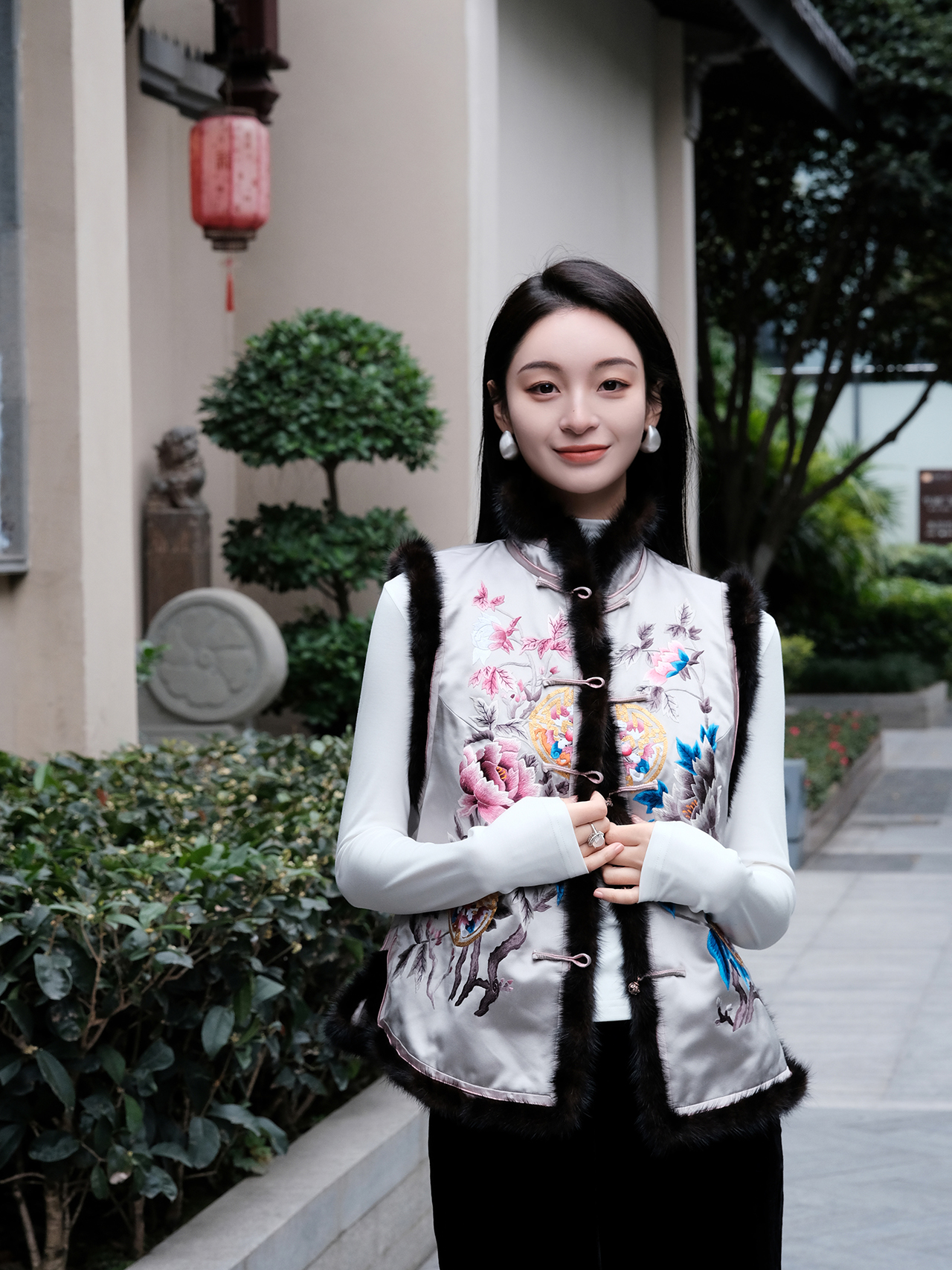 盛唐牡丹&王小潇联名|富贵长寿貂毛手绣棉背心-白色