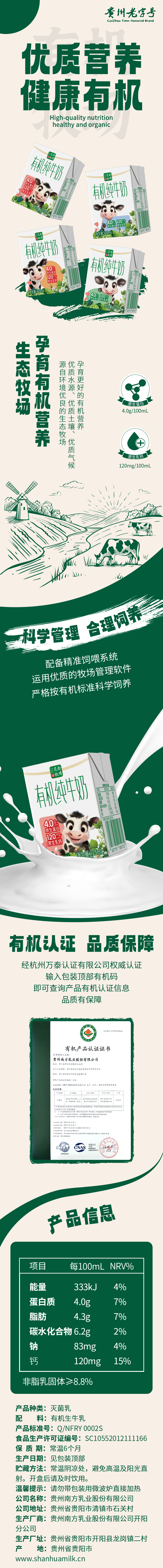 山花有机纯牛奶125mL*32盒/箱4.0g蛋白质120mg原生乳钙