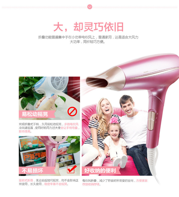【家用电器】。折叠T3雷瓦RIWA吹风机轻 风力强旅行吹风机