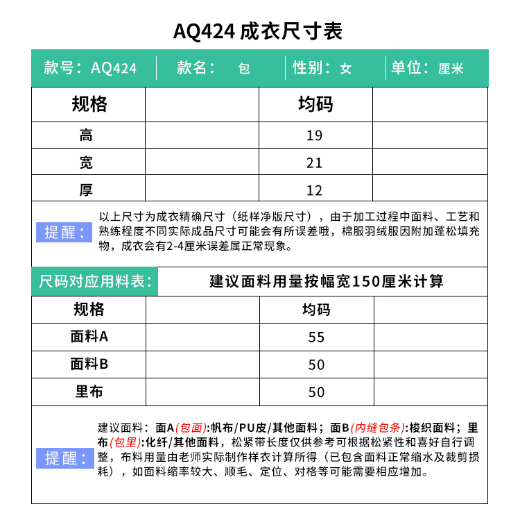 裁缝学苑AQ424新款帆布包纸样女运动骑行背包斜挎包胸包样板