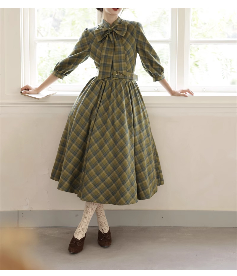 裁缝学苑AS429英伦复古腰带蝴蝶结收腰大摆裙纸样女装连衣裙样板