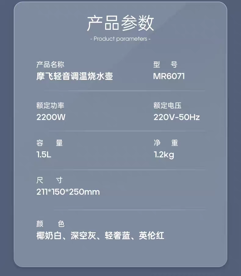 【云粉节】10楼 摩飞 轻音调温烧水壶 MR6071 吊牌价288元 活动价219元