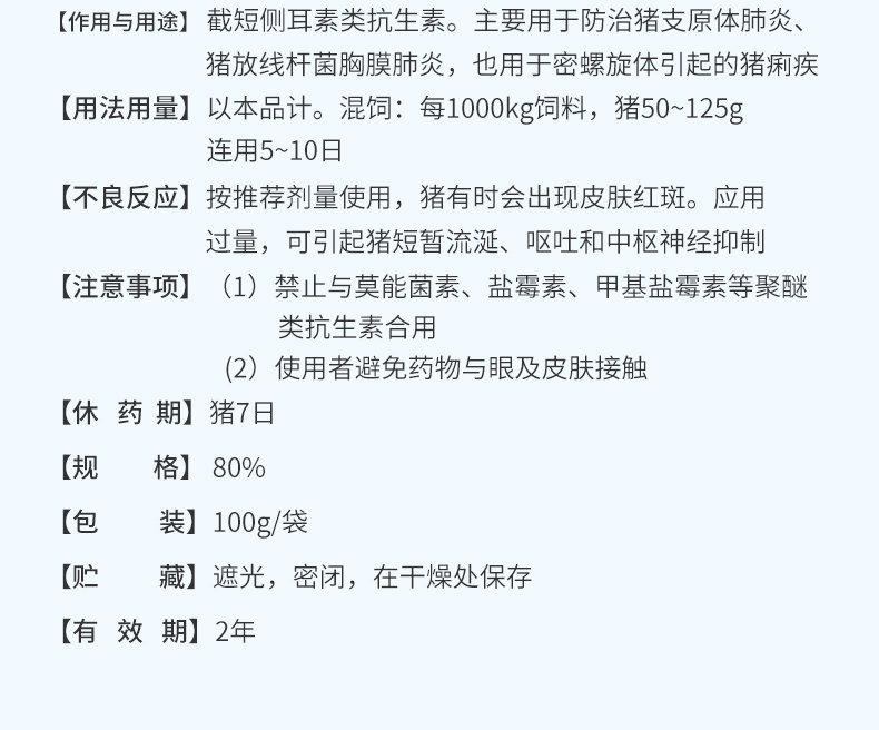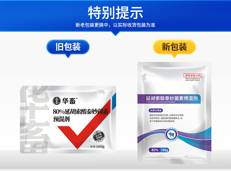 华畜兽药 80%泰妙菌素预混剂鸡支原净猪咳嗽禽支原体呼吸猪 回肠炎兽用药
