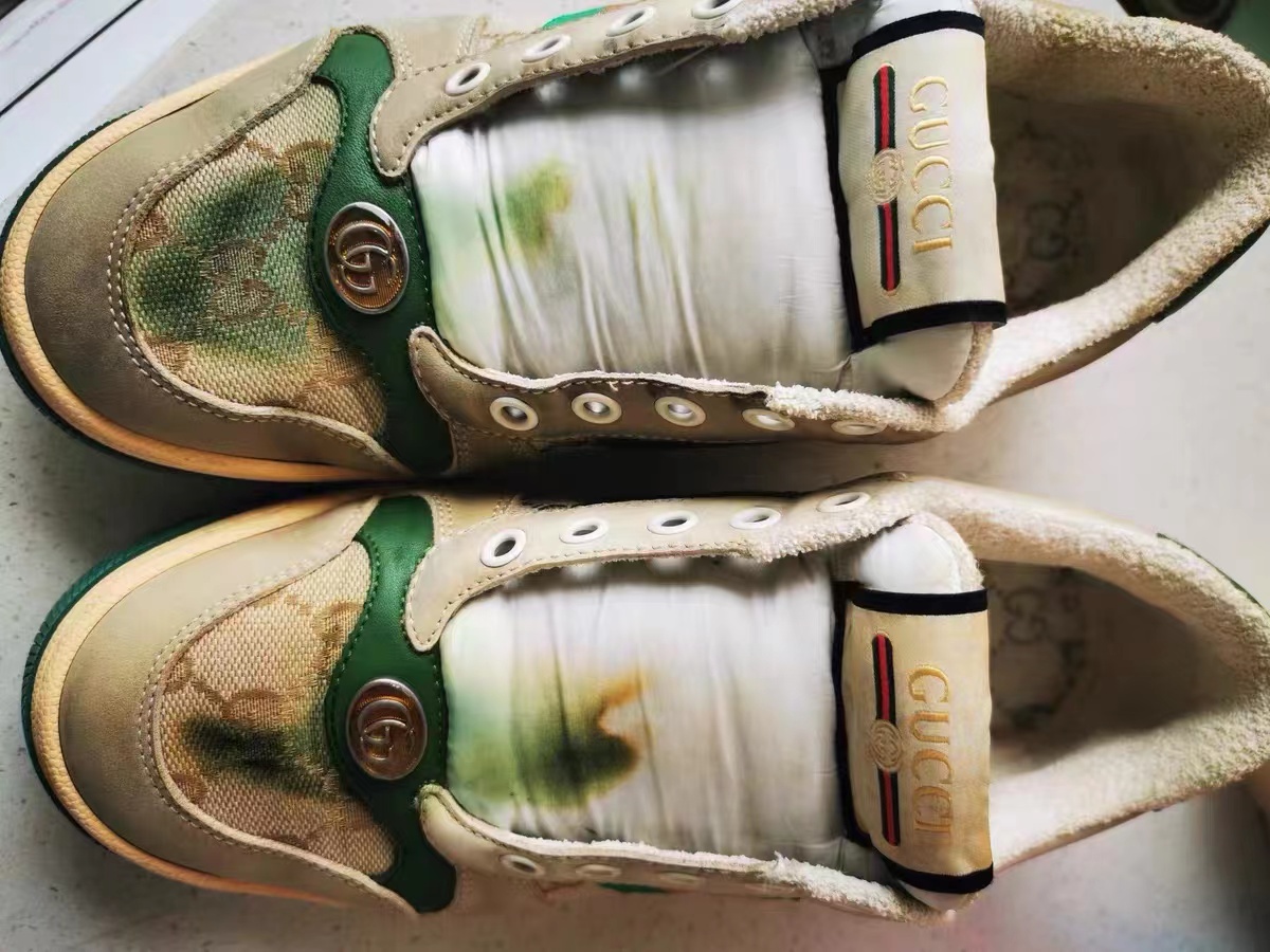 这双鞋清洗情况朋友们不要像正常刷鞋那样,千万别侵泡,真皮部分不要直接浊水~