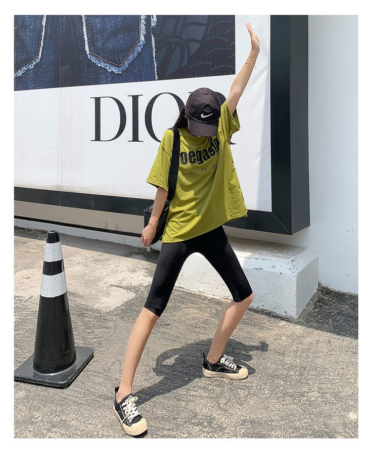 瑜伽芭比裤女夏鲨鱼皮打底裤 | 五分裤薄黑色运动骑行短裤