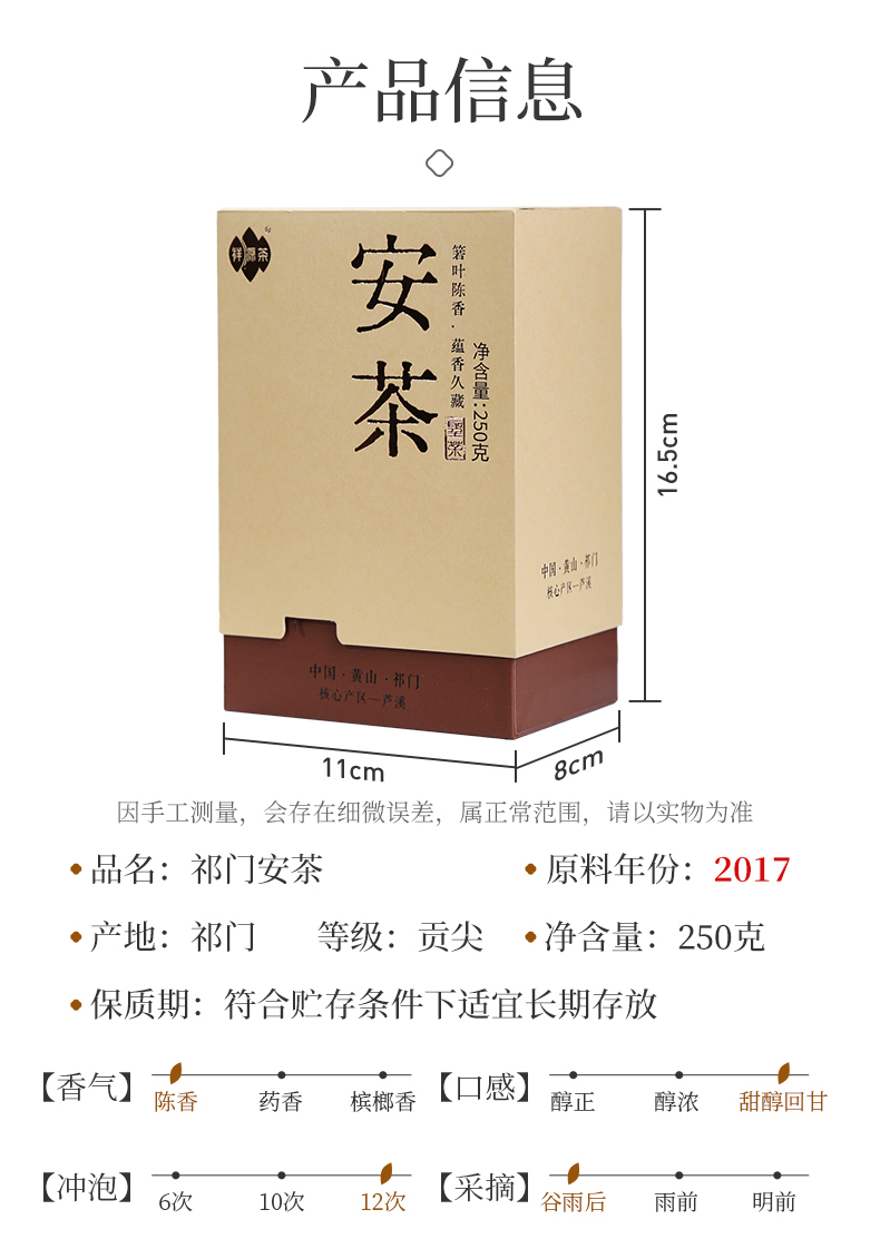 祥源茶丨安茶 贡尖 黑茶 产地安徽 2017年原料 250g 盒装