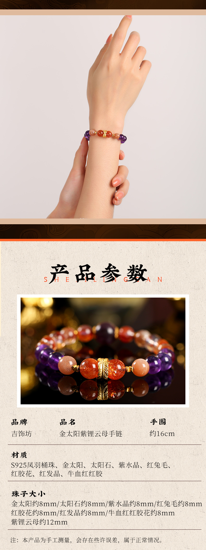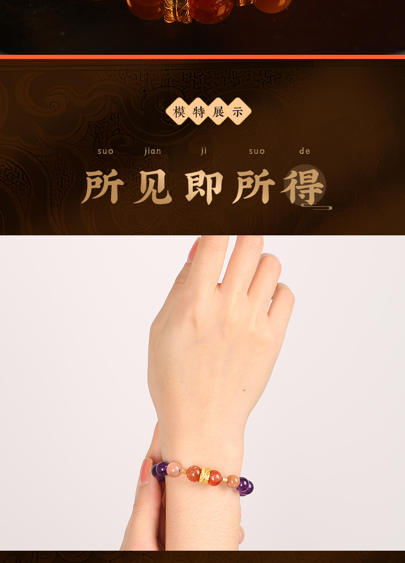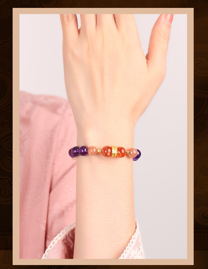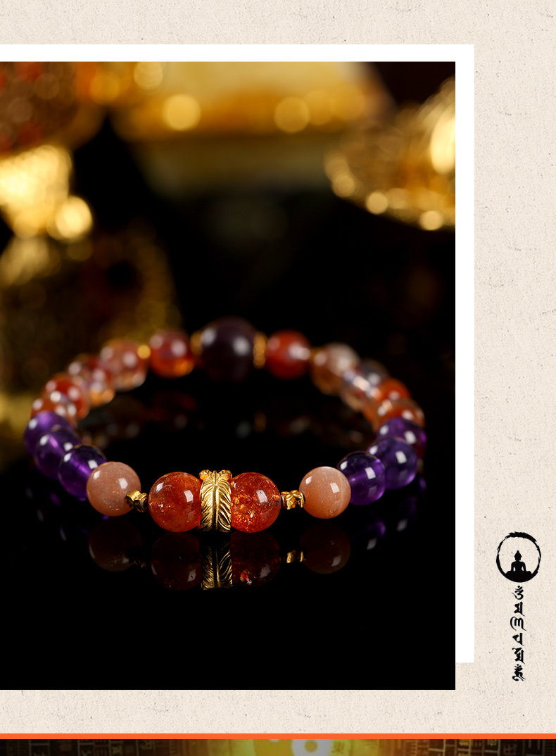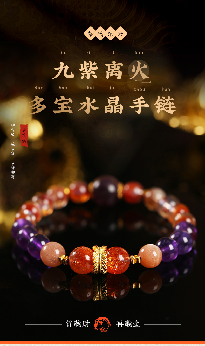 九紫离火多宝水晶手链 红兔毛金太阳紫水晶手串