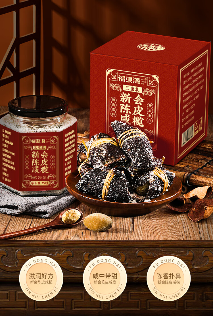福东海 新会陈皮咸榄100克/瓶(三宝扎)