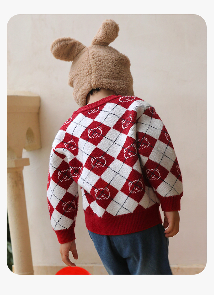贝贝怡童装男童时尚撞色格纹针织衫秋冬款宝宝柔软保暖套头毛衣233S3285