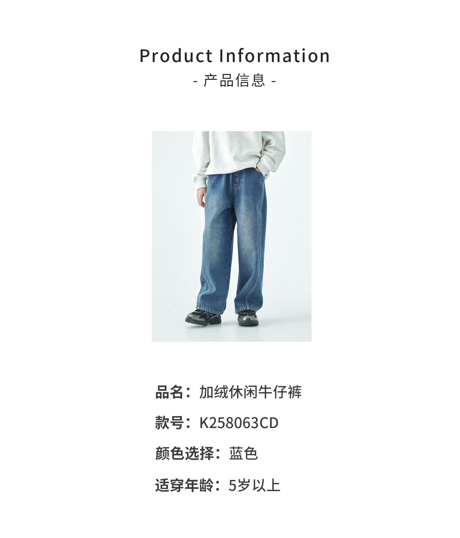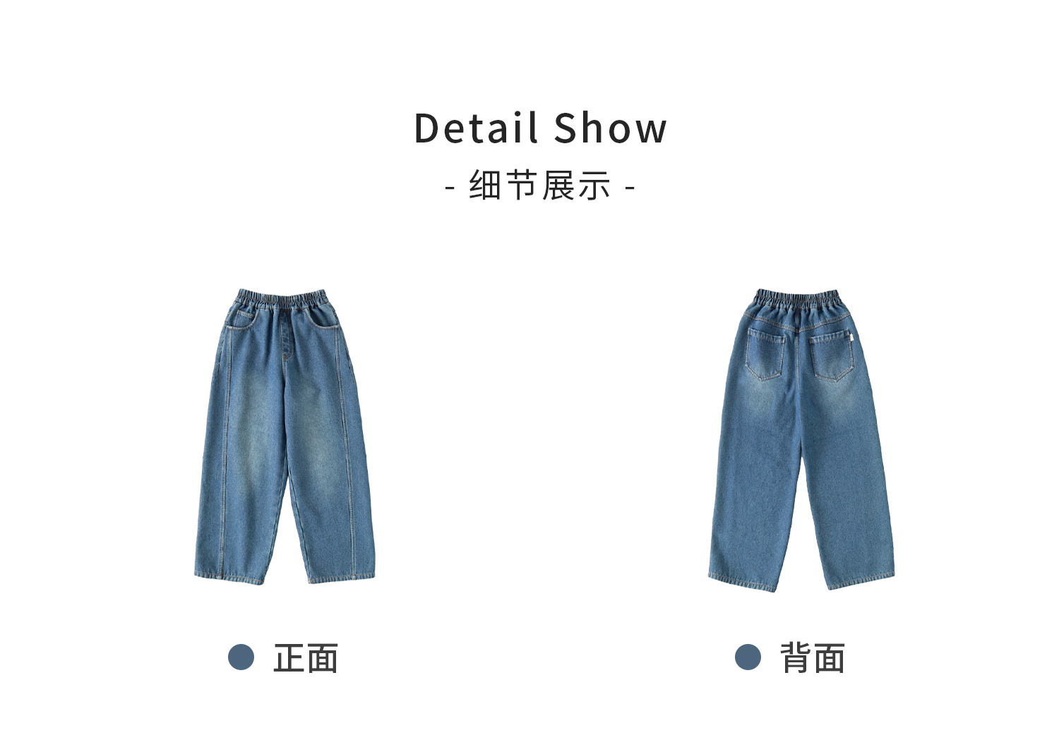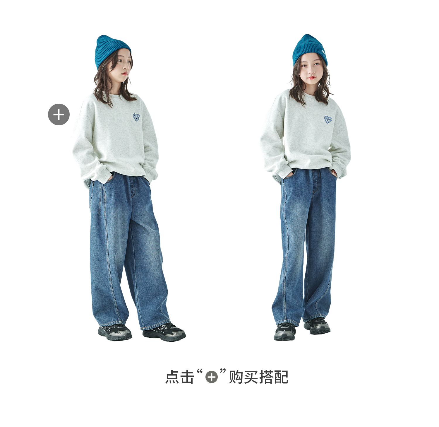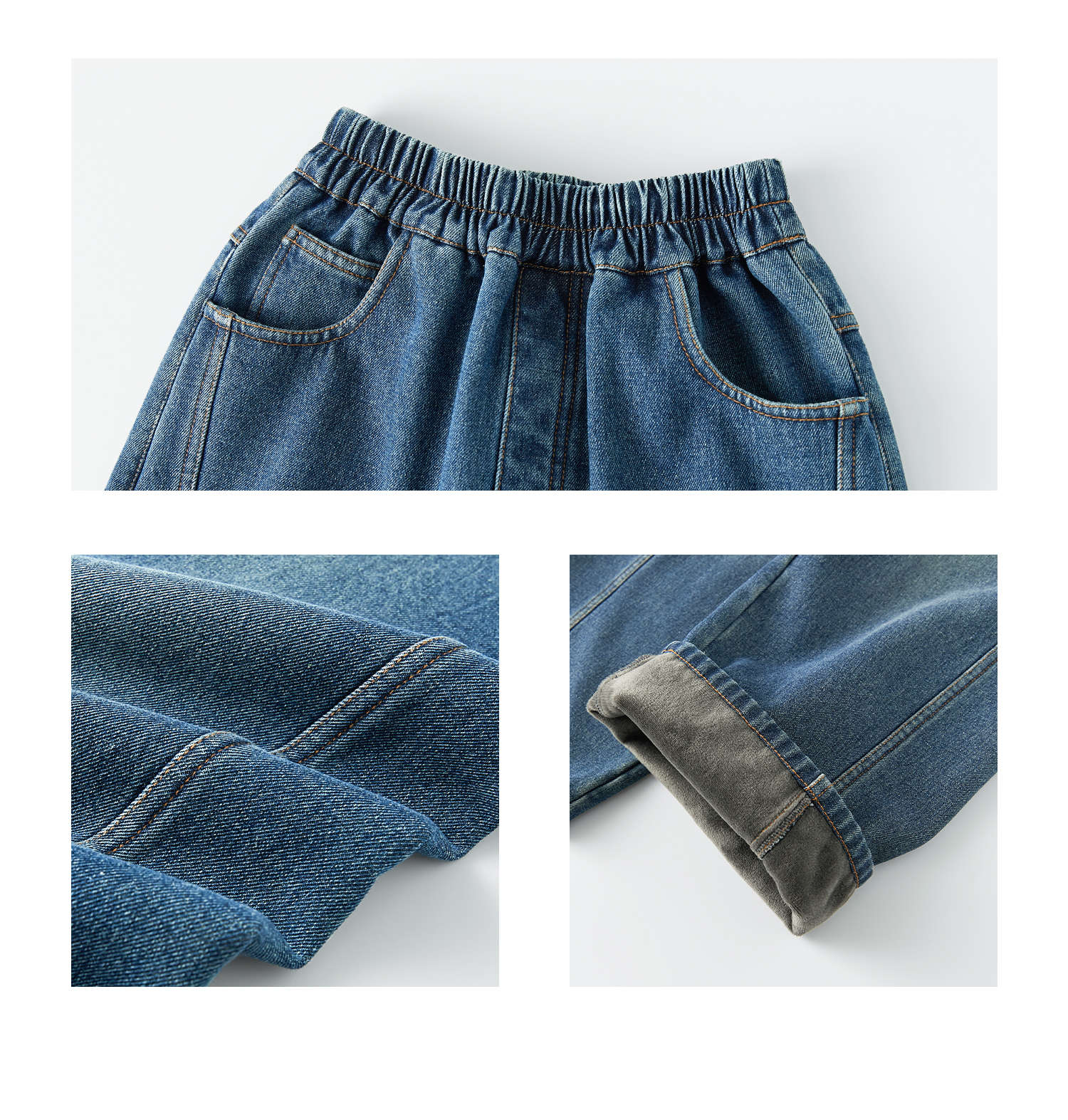 棵初25年秋冬新款亲子中大女童内里加绒休闲牛仔裤复古校园风裤子