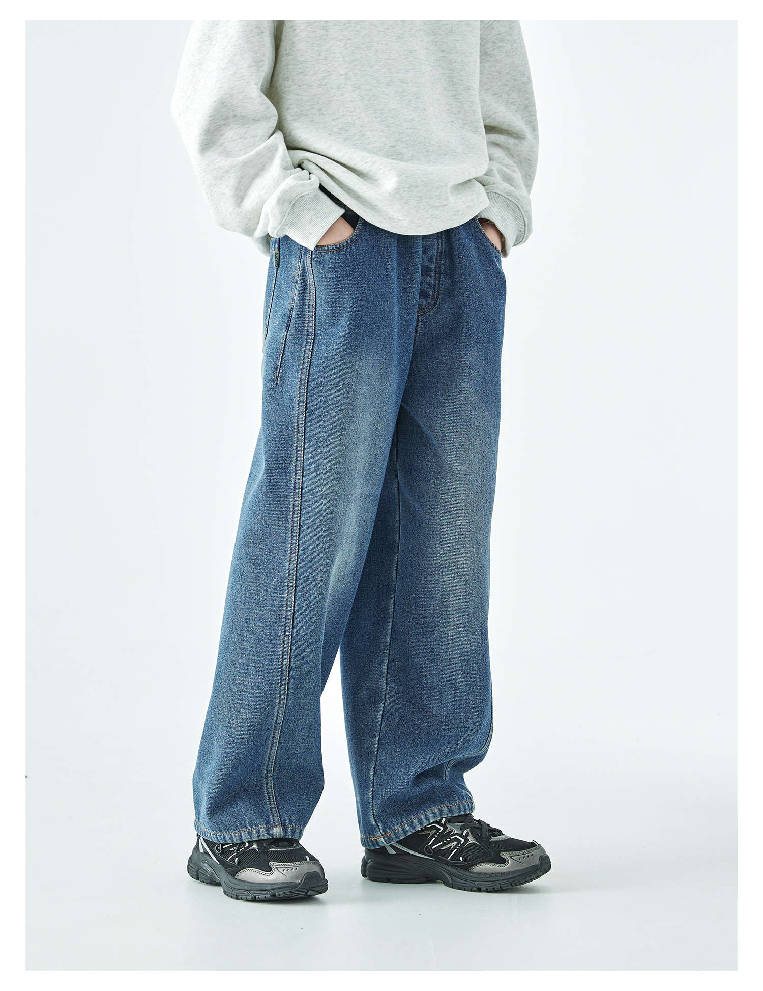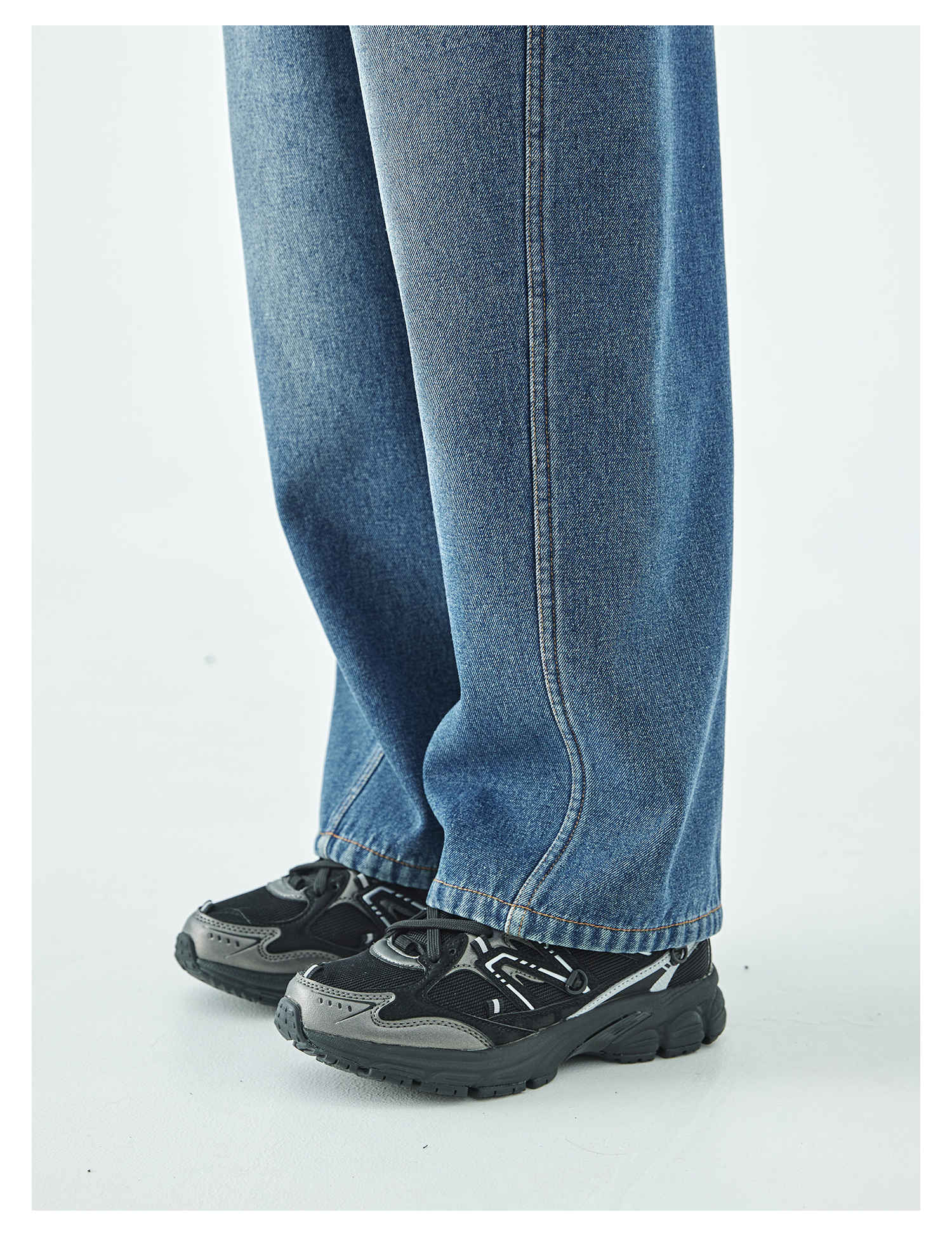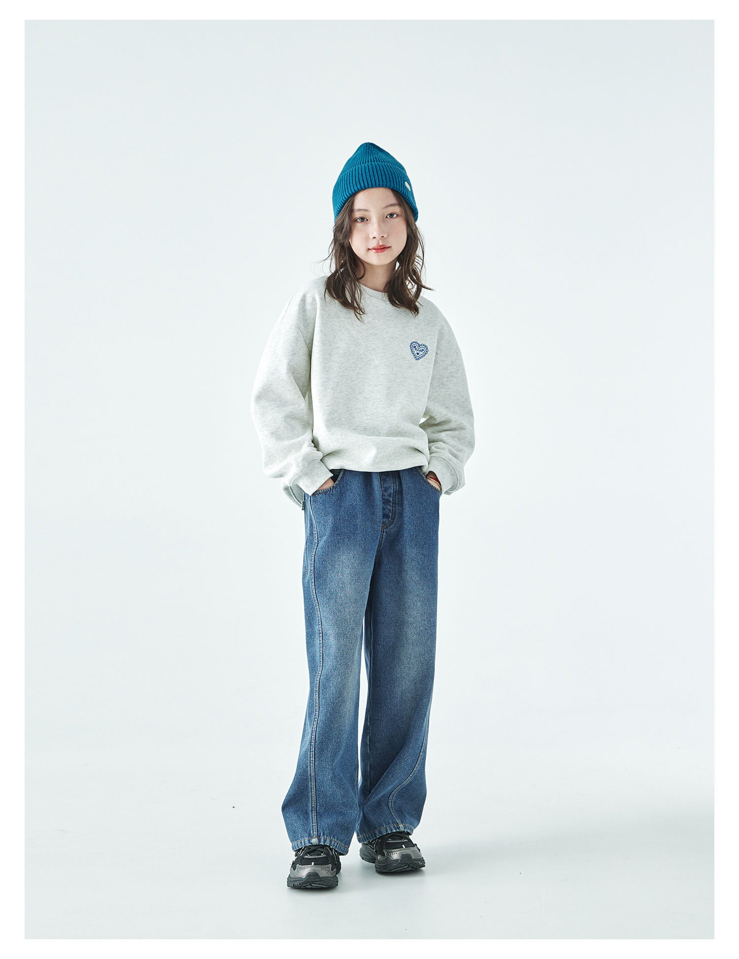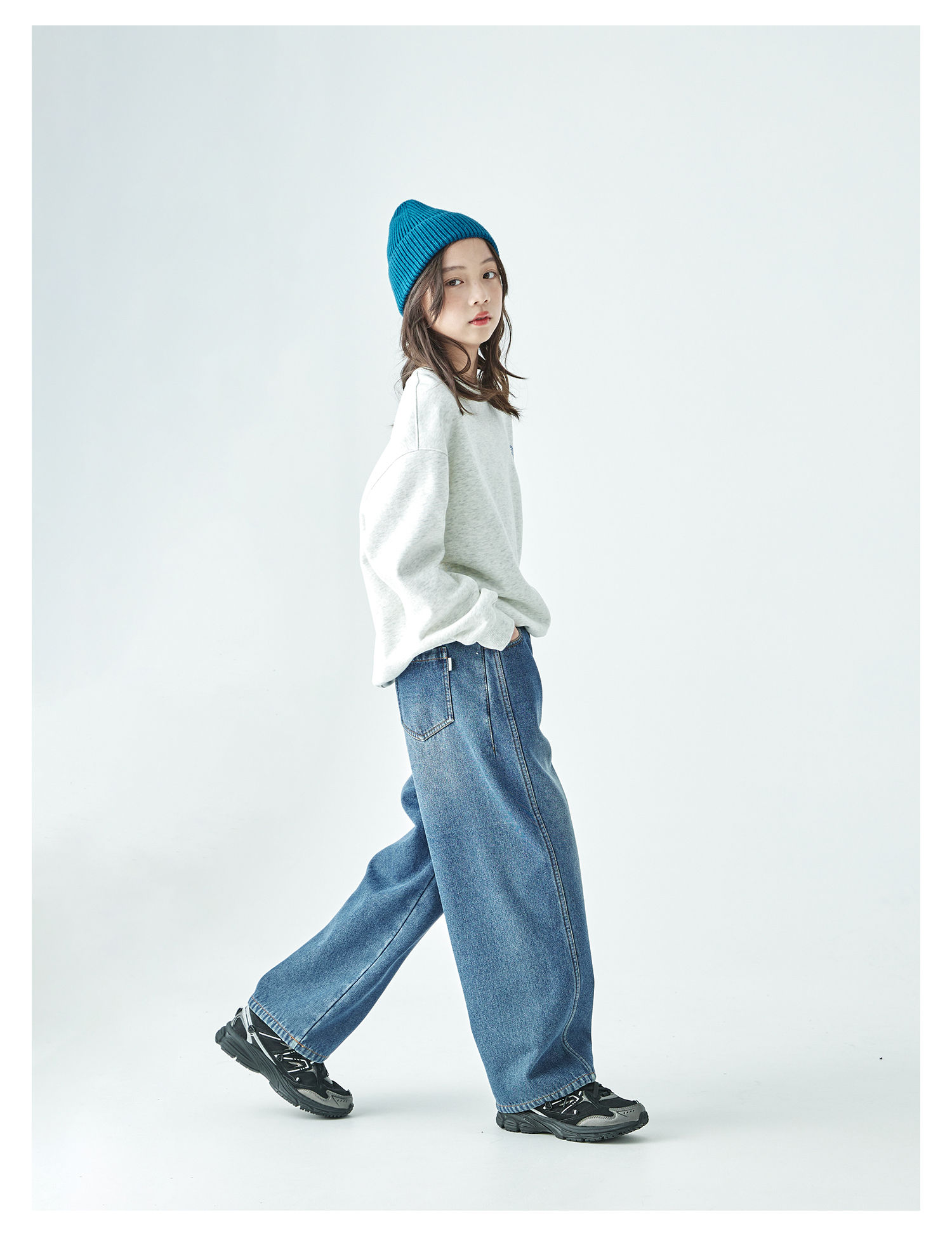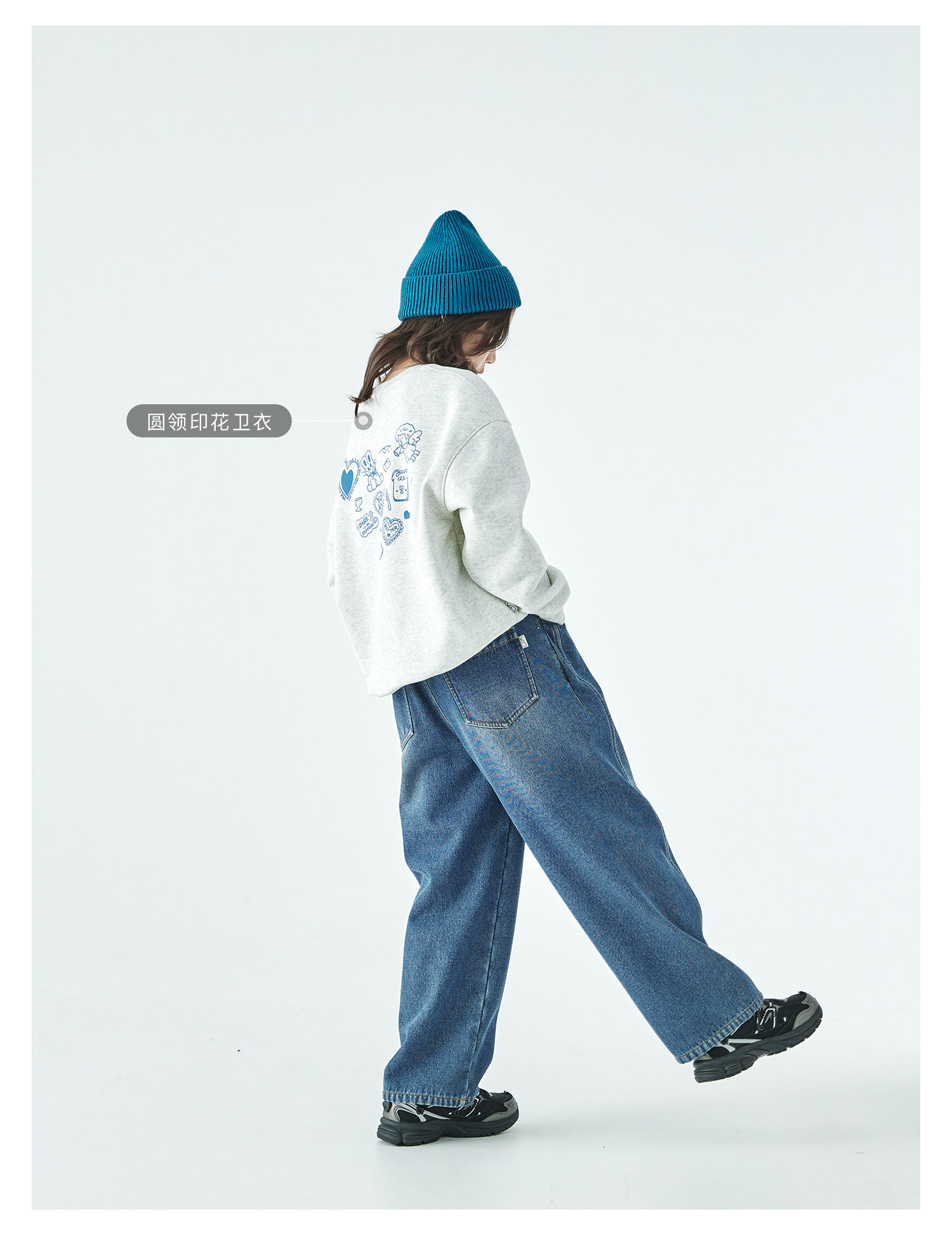 棵初25年秋冬新款亲子中大女童内里加绒休闲牛仔裤复古校园风裤子
