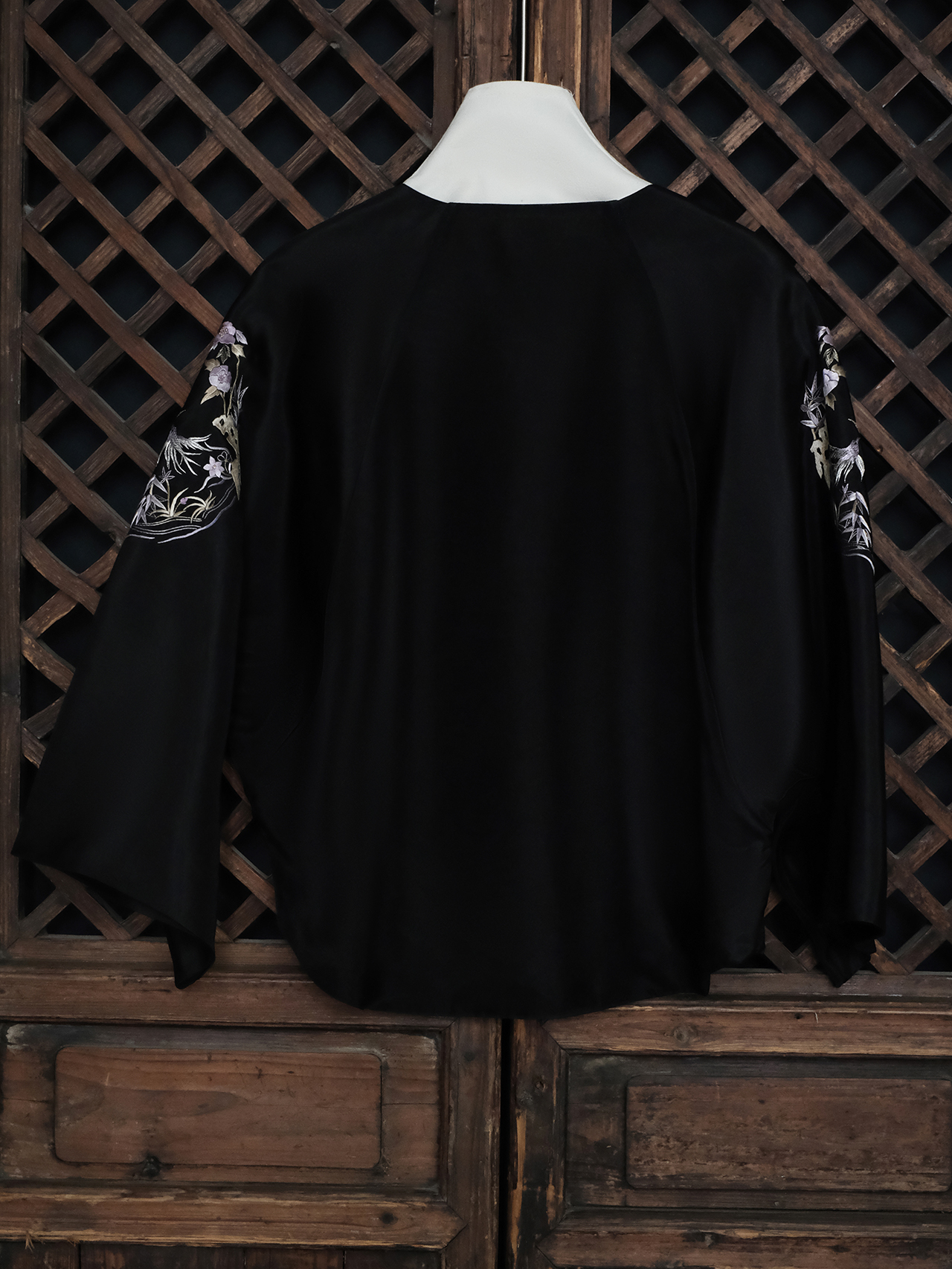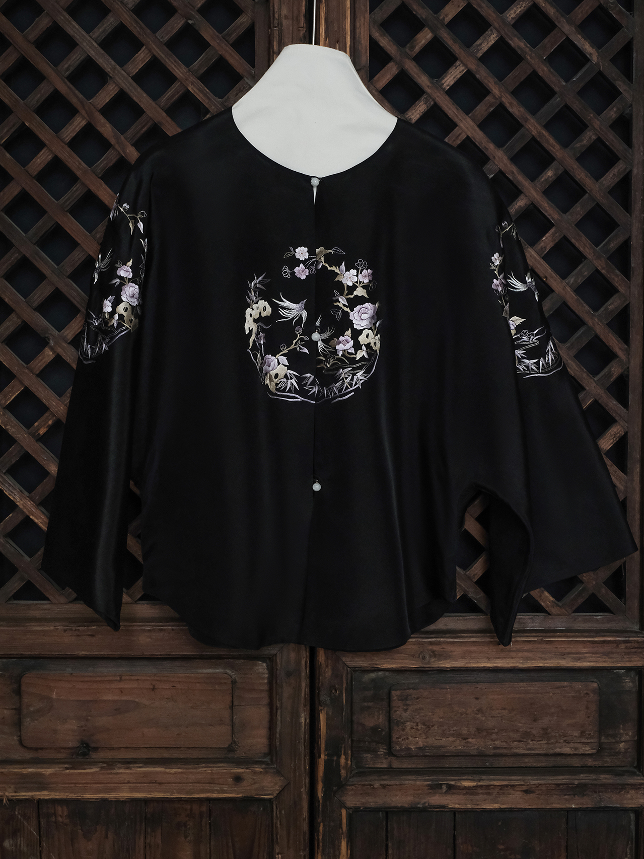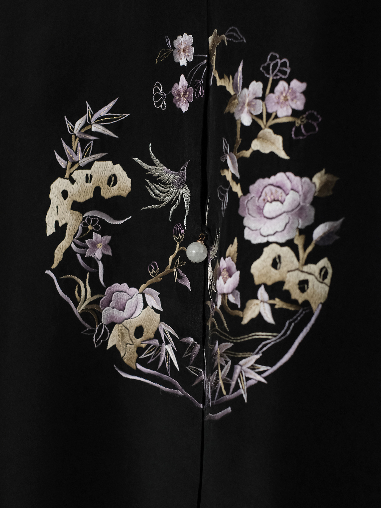 盛唐牡丹大师系列| 喜上眉梢团纹欧根缎手绣外套-黑色