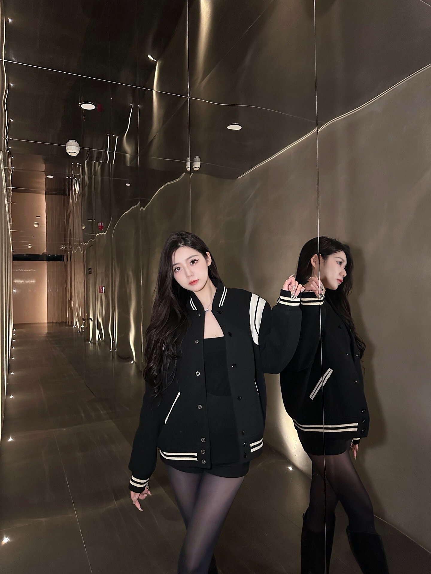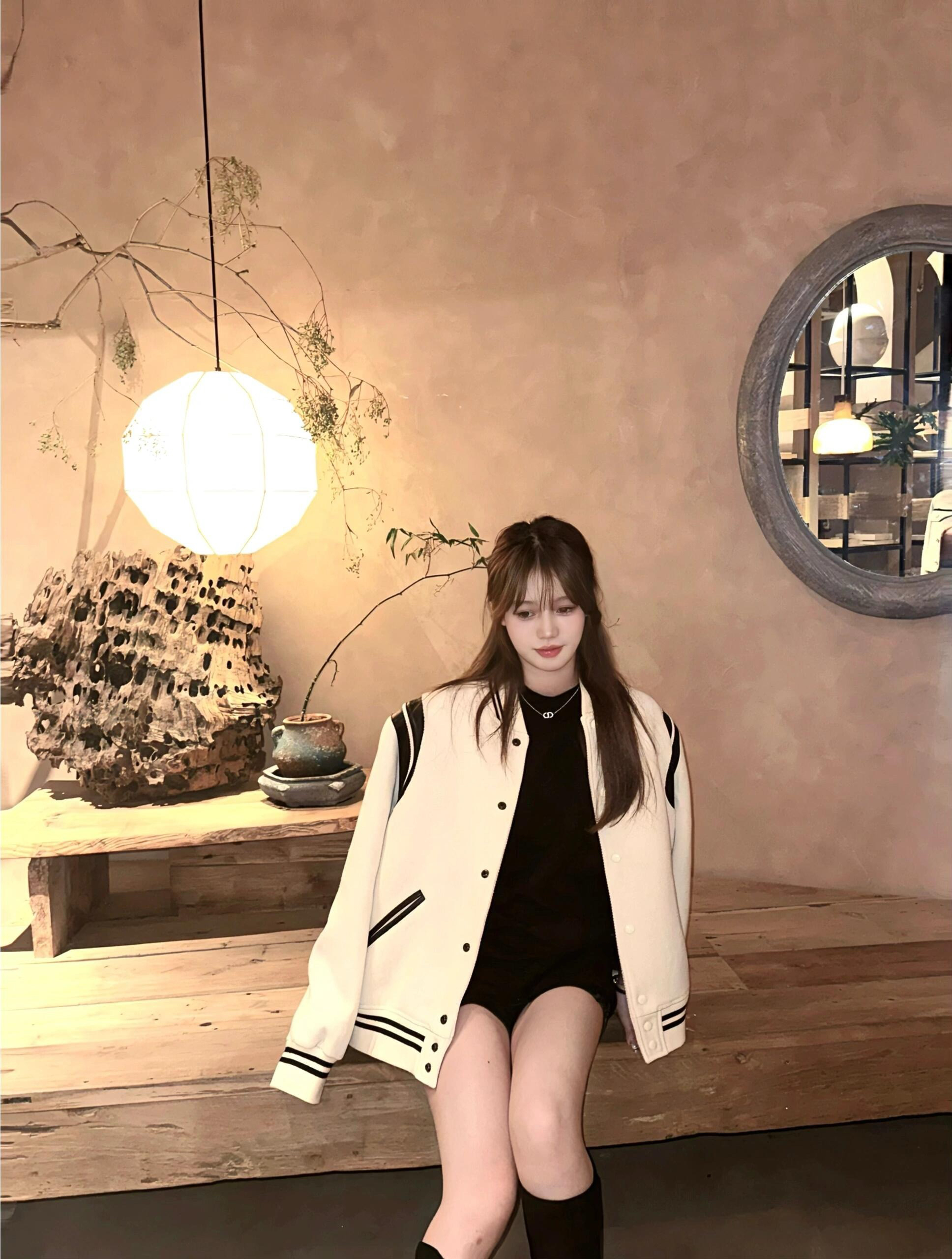 正肩短款小廓形设计,更加优化身材比例,日常穿搭显瘦显高,挺拔有型不显臃肿,版型宽松包容度极高