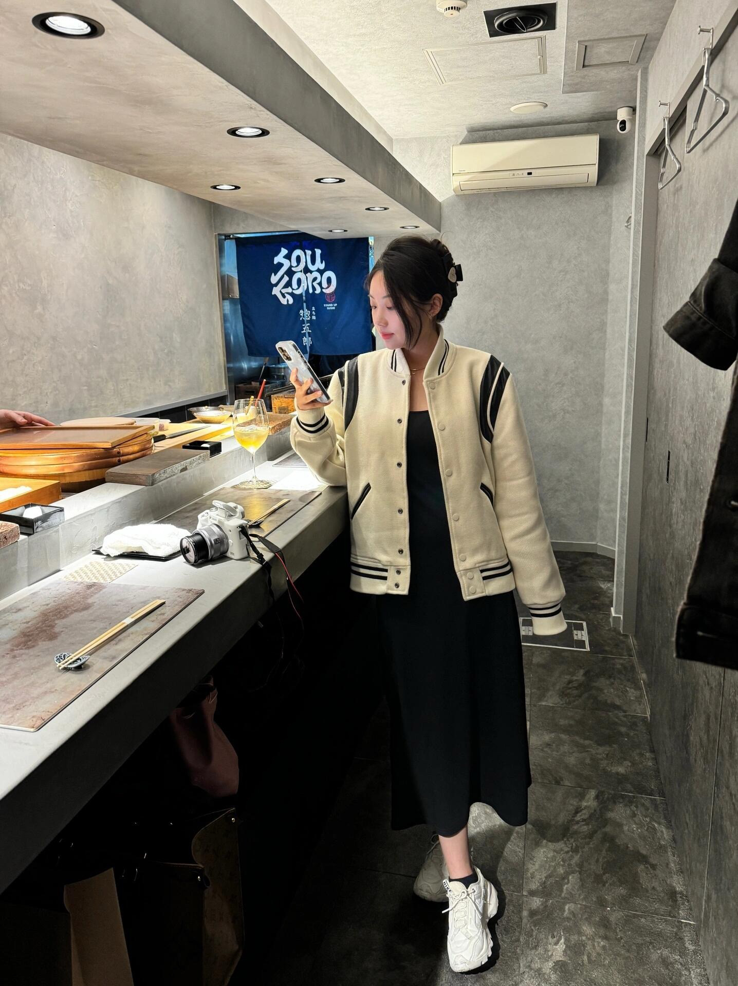 下摆的收口设计,不会特别紧绷,留有适合的余量,即能平衡版型,上身也不会太拘束,实穿度满分哈