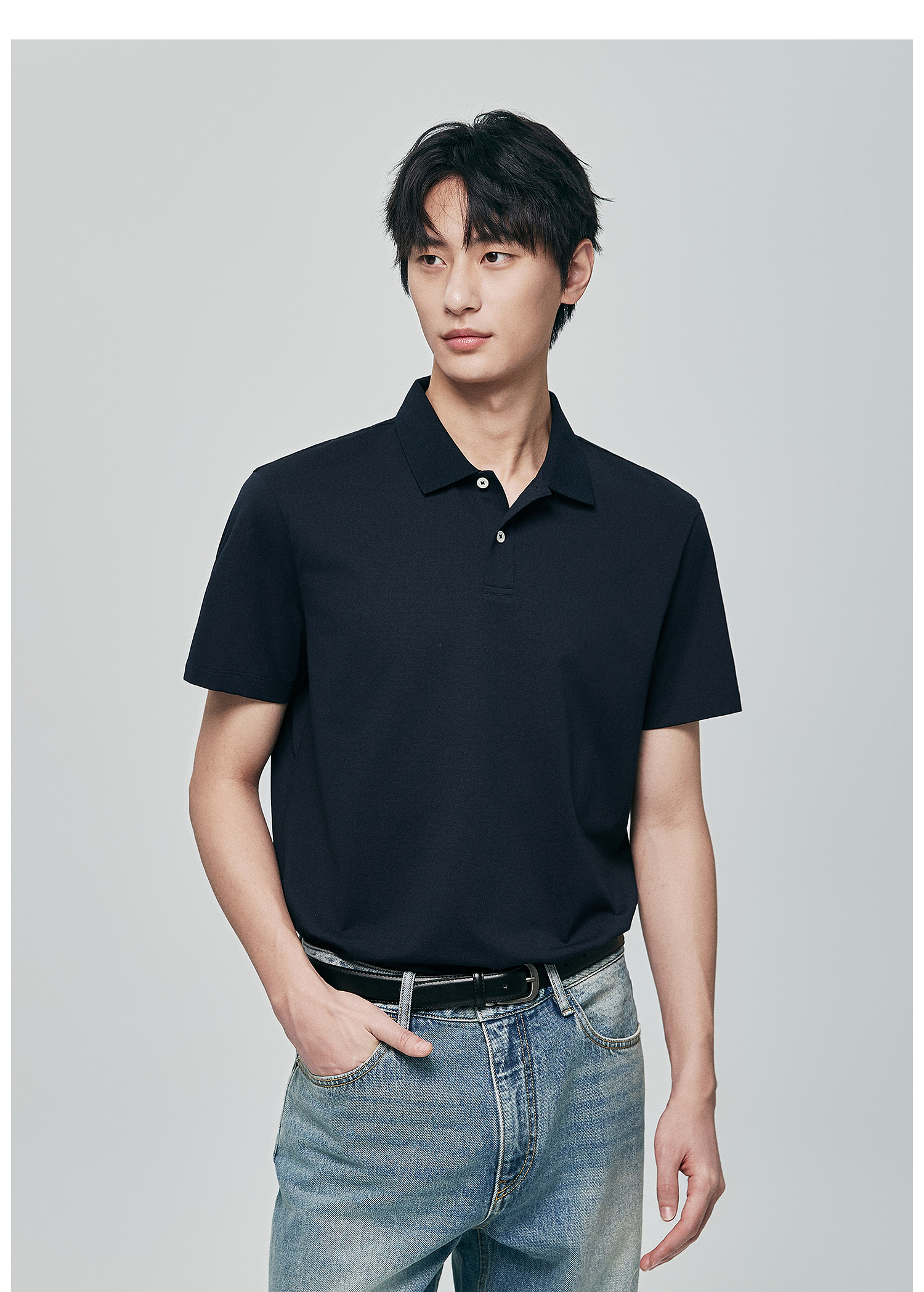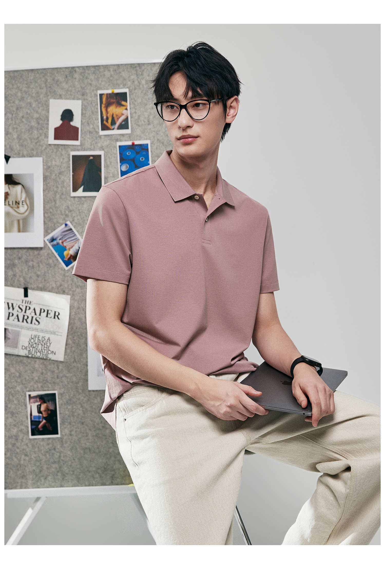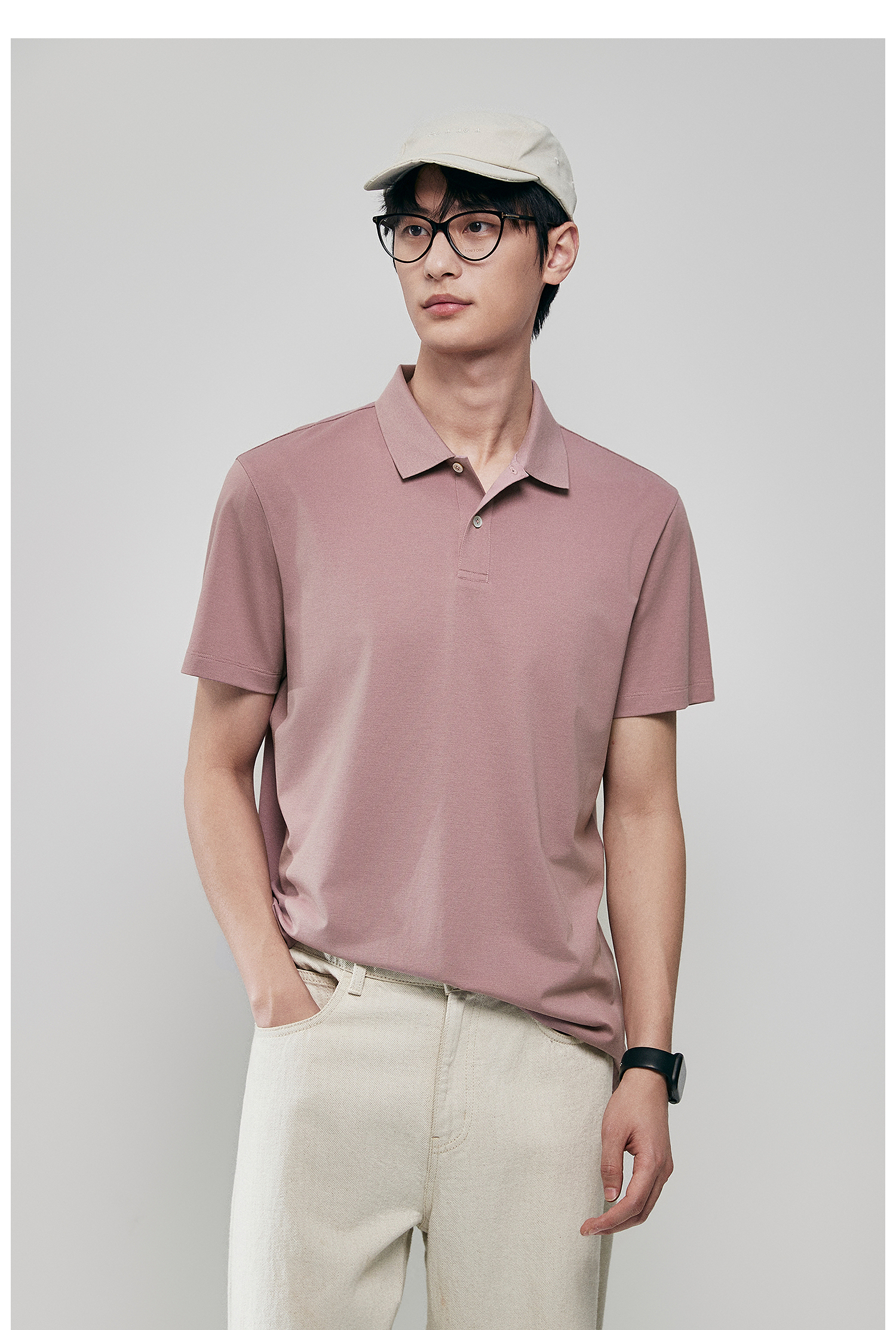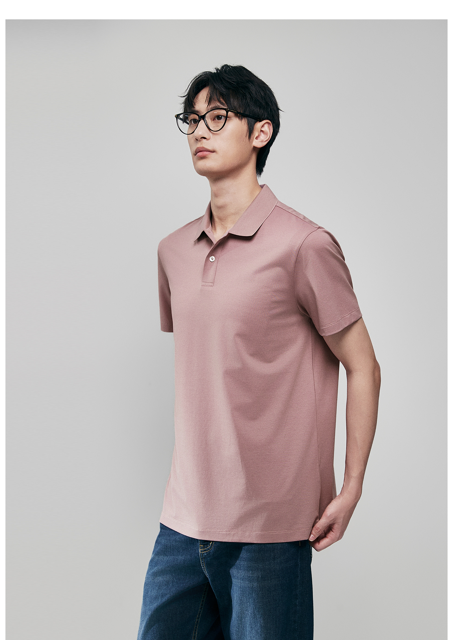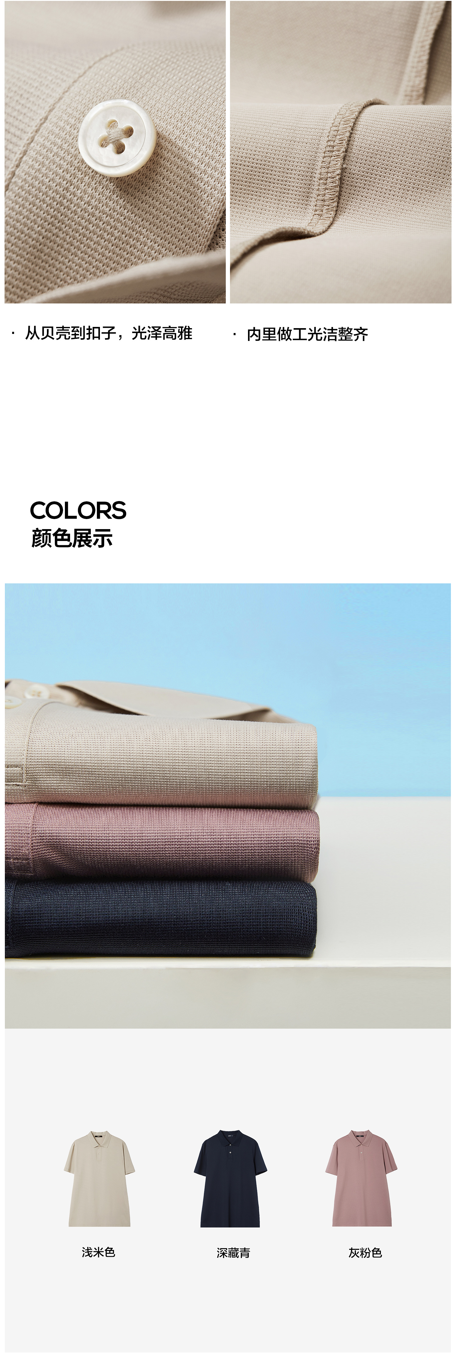 棉仓363802009-玉爽丝米格短袖扁机一片领两粒扣短袖POLO