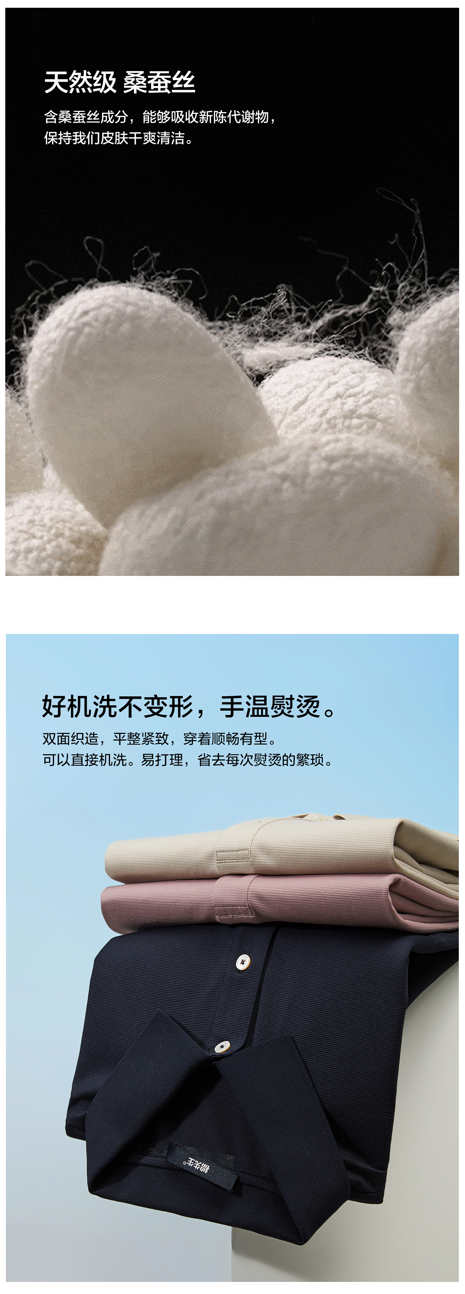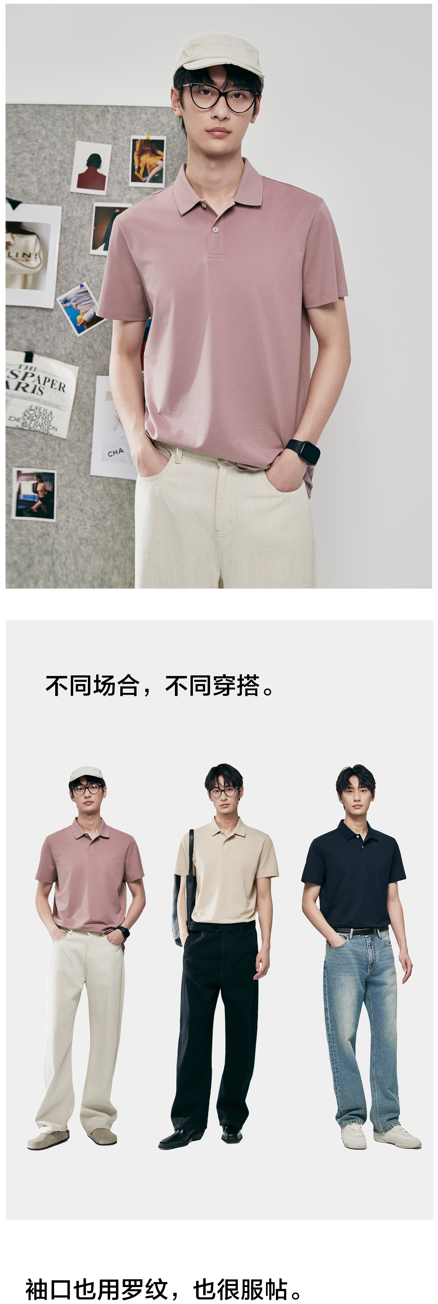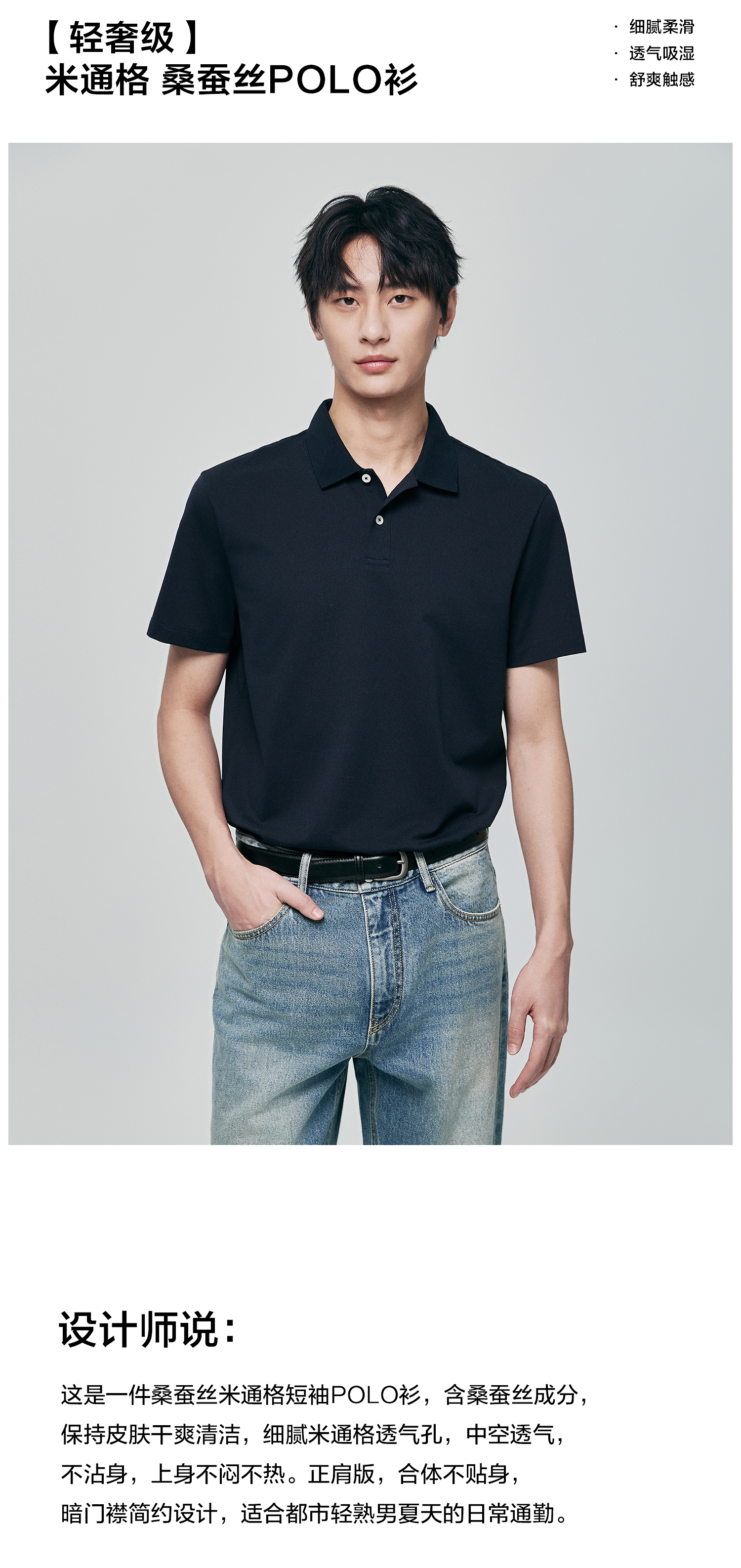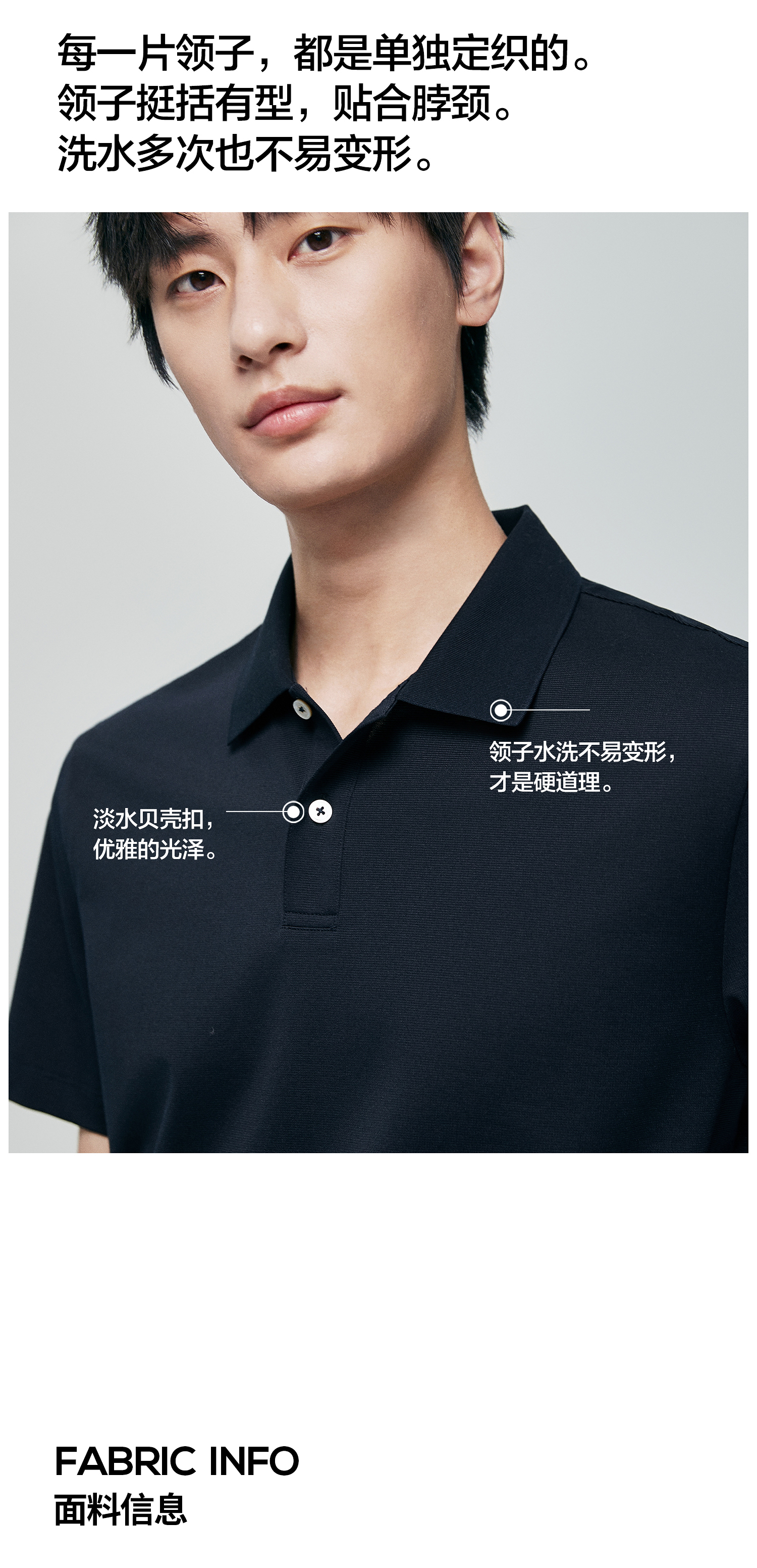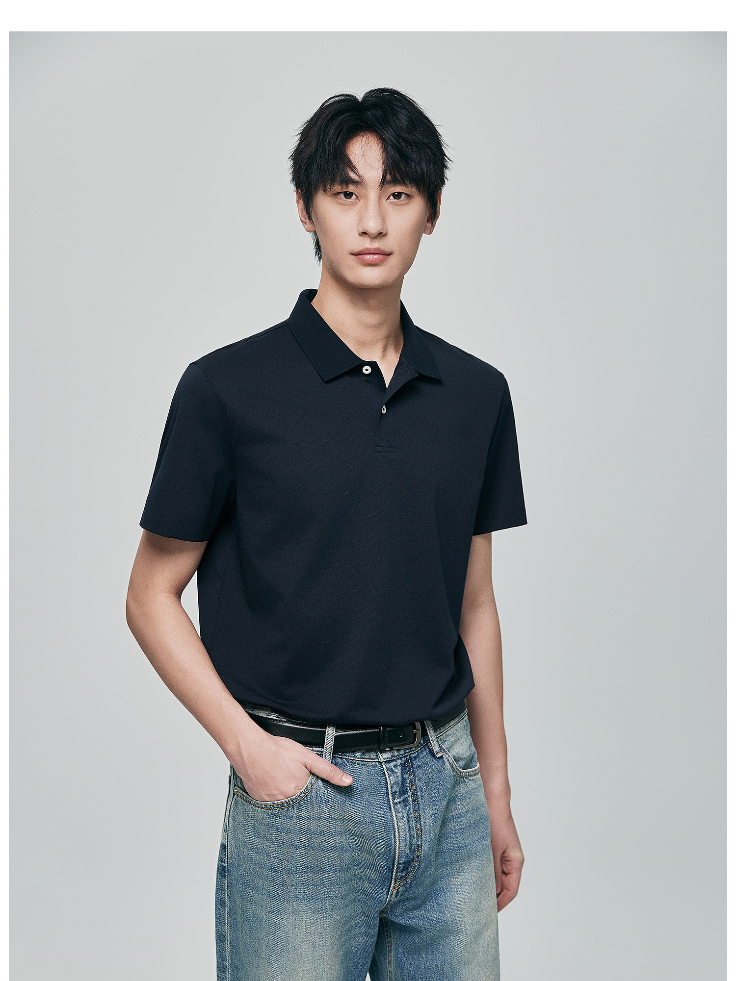 棉仓363802009-玉爽丝米格短袖扁机一片领两粒扣短袖POLO