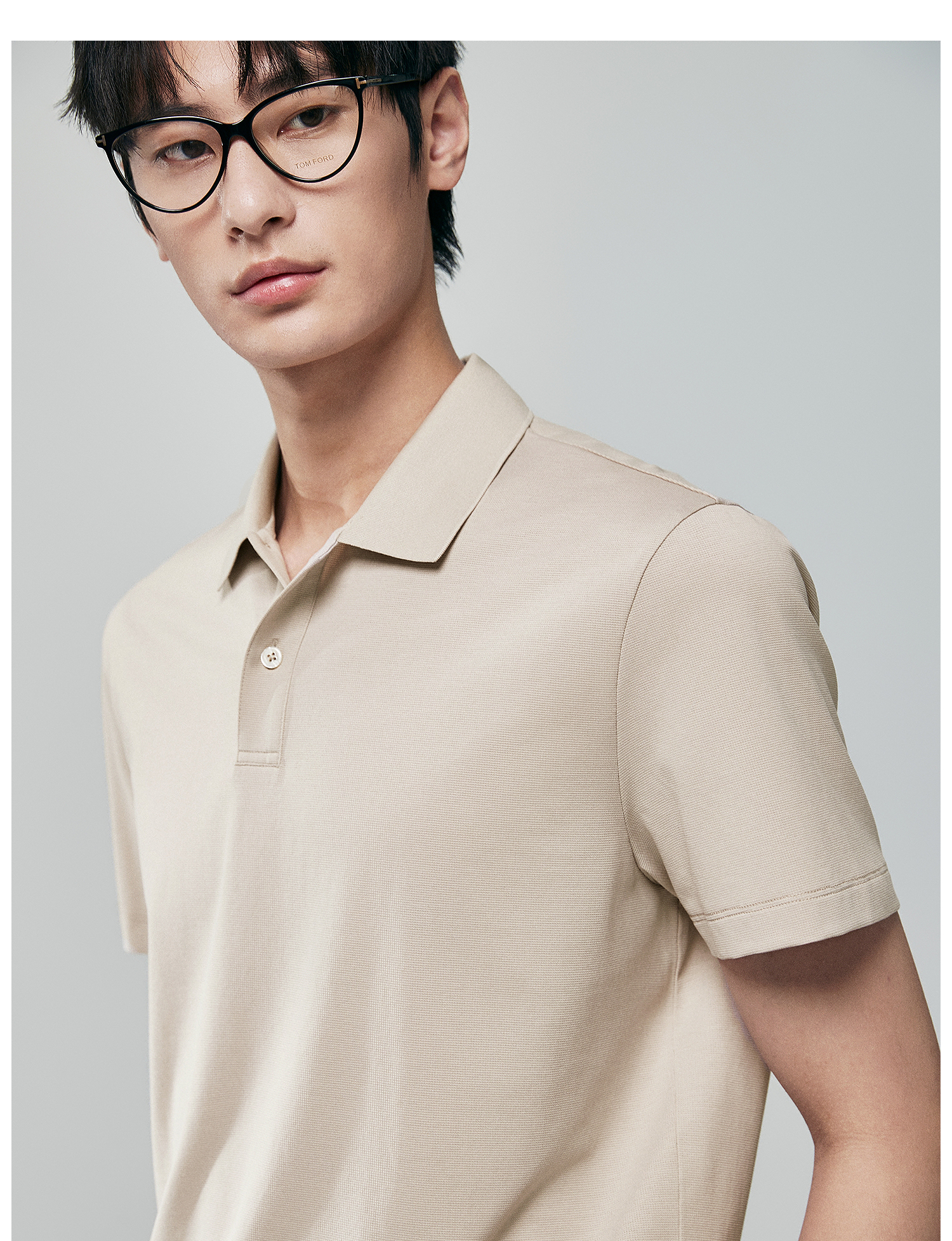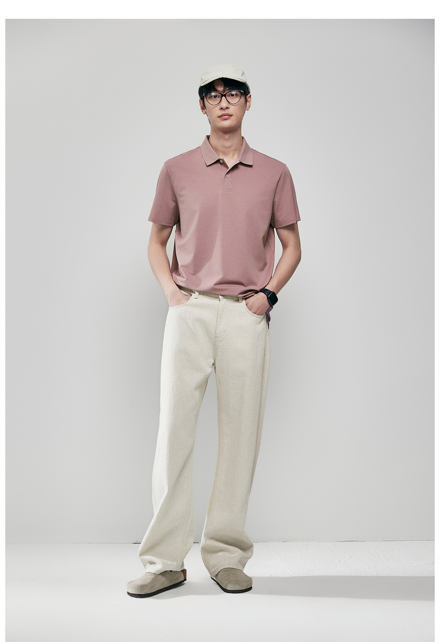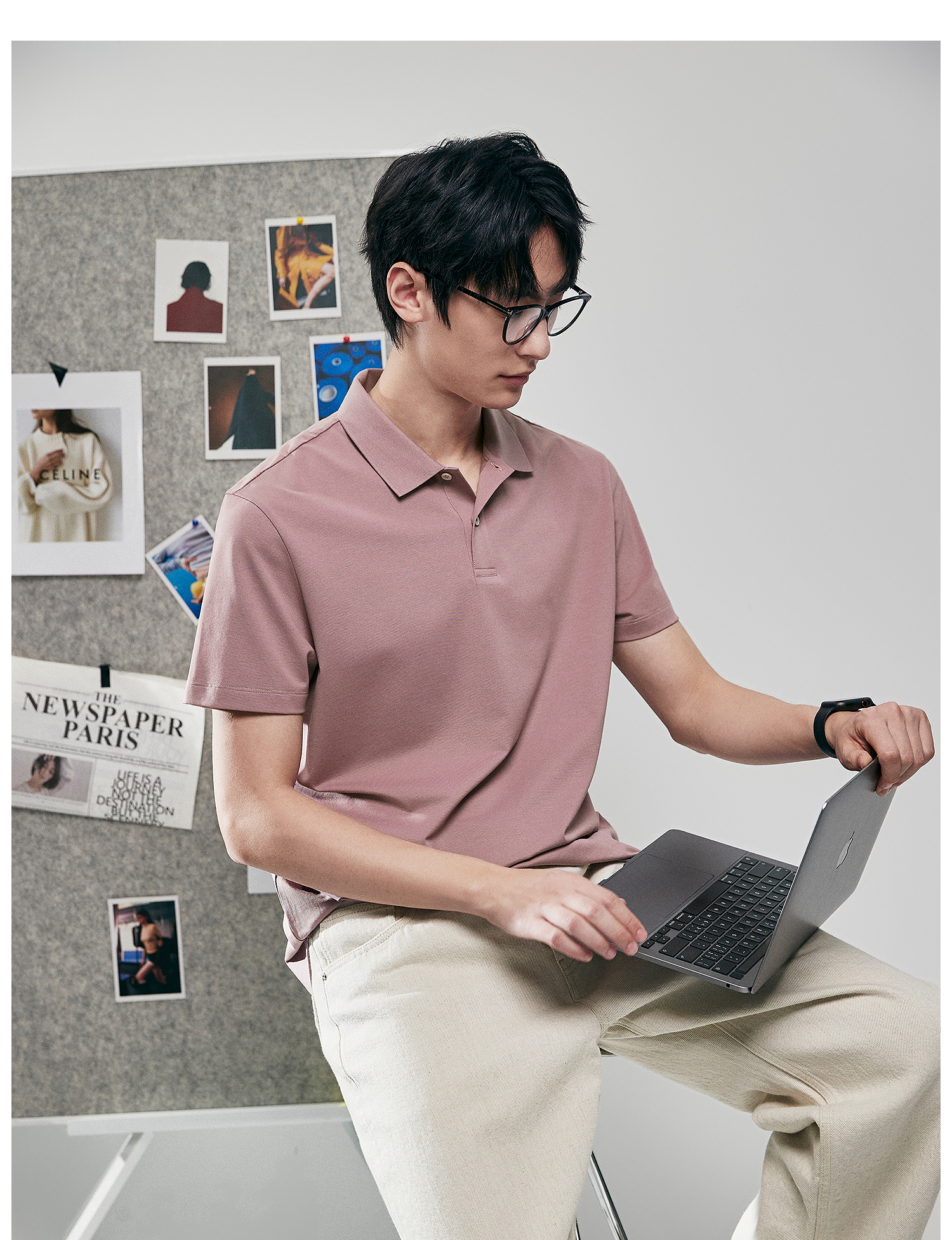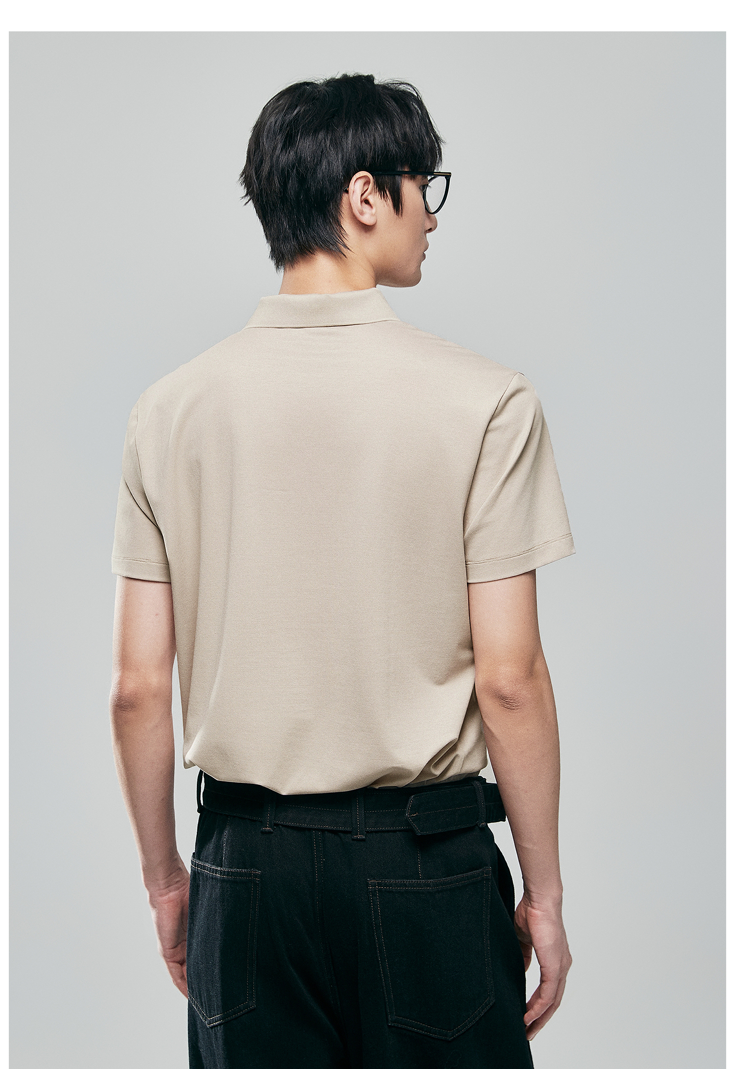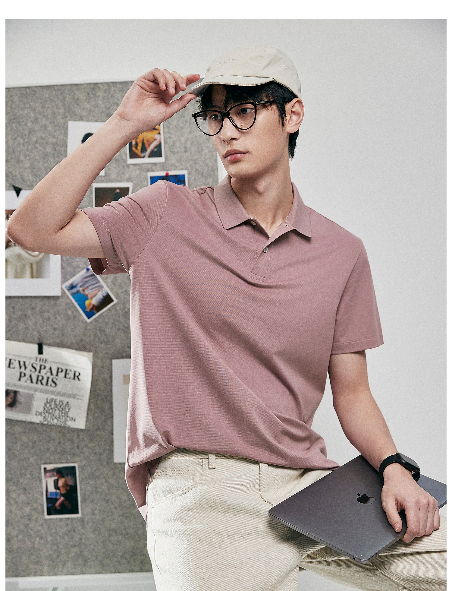 棉仓363802009-玉爽丝米格短袖扁机一片领两粒扣短袖POLO
