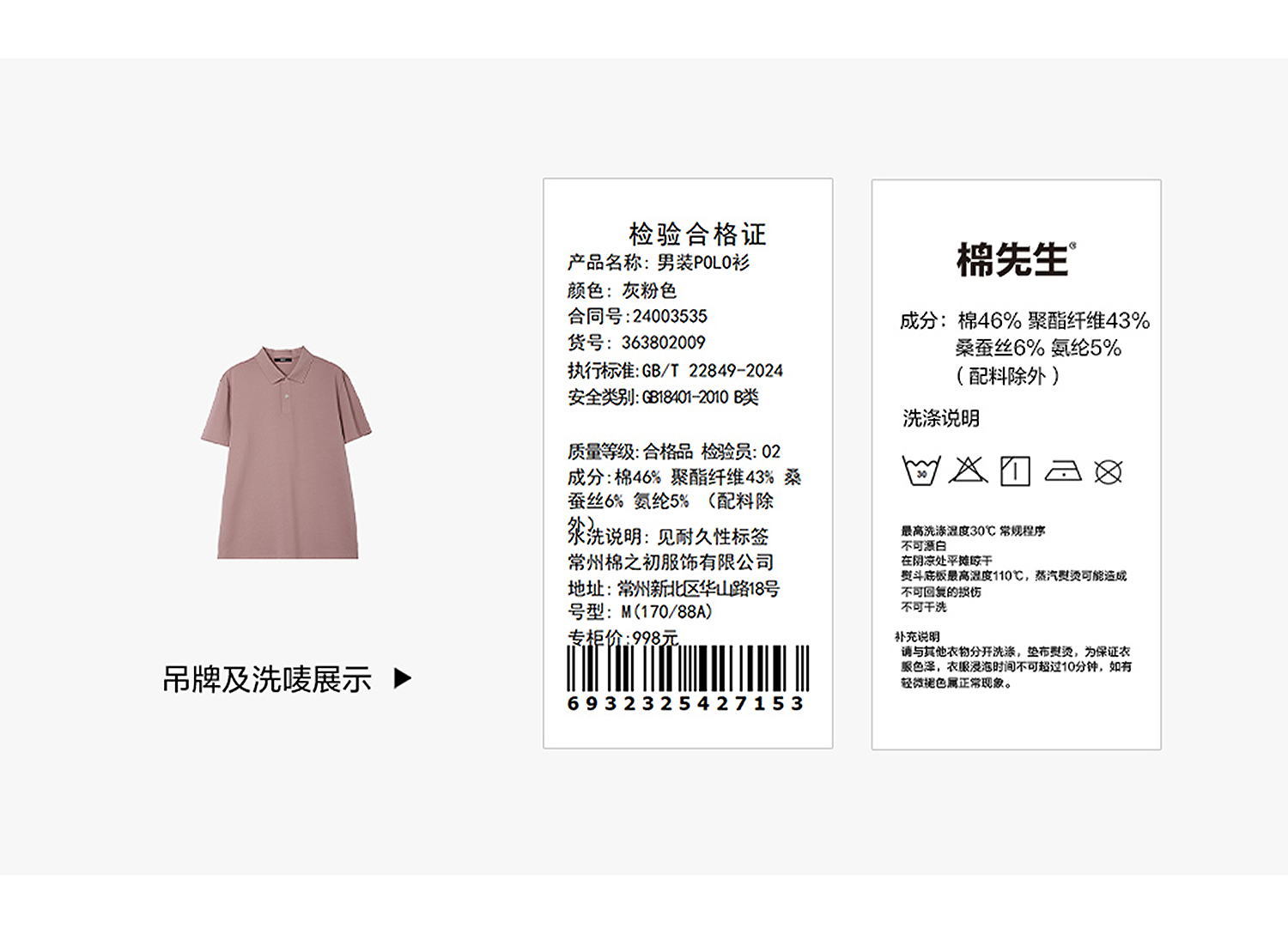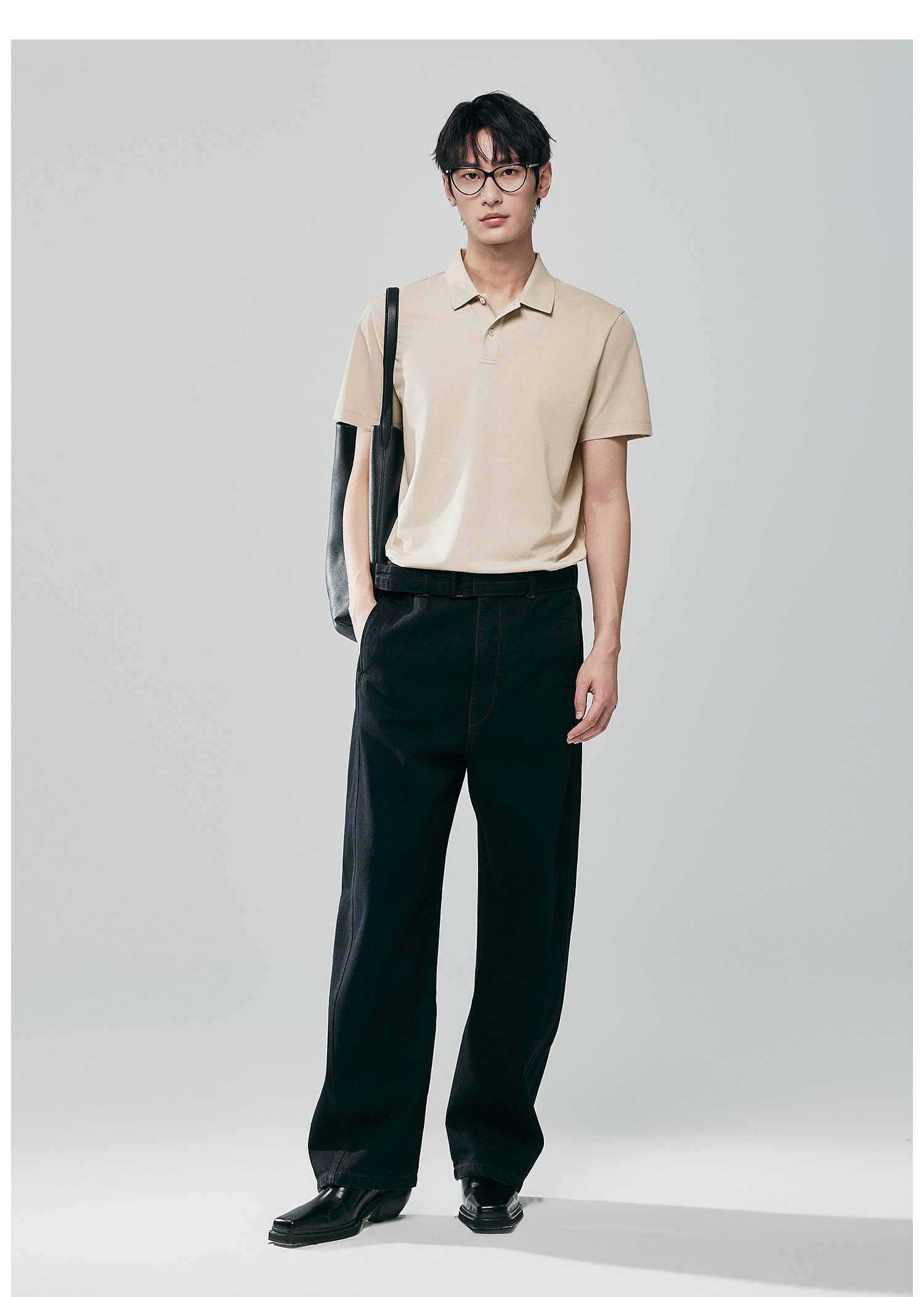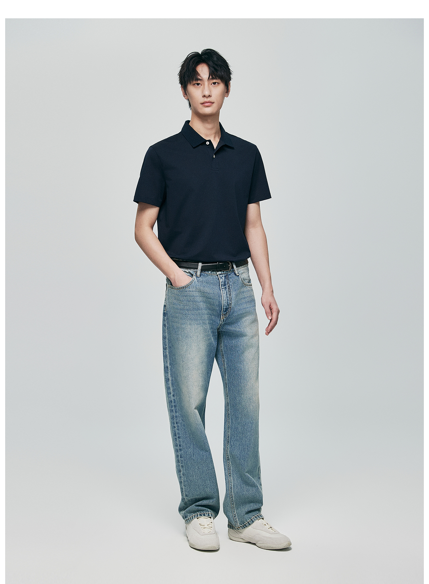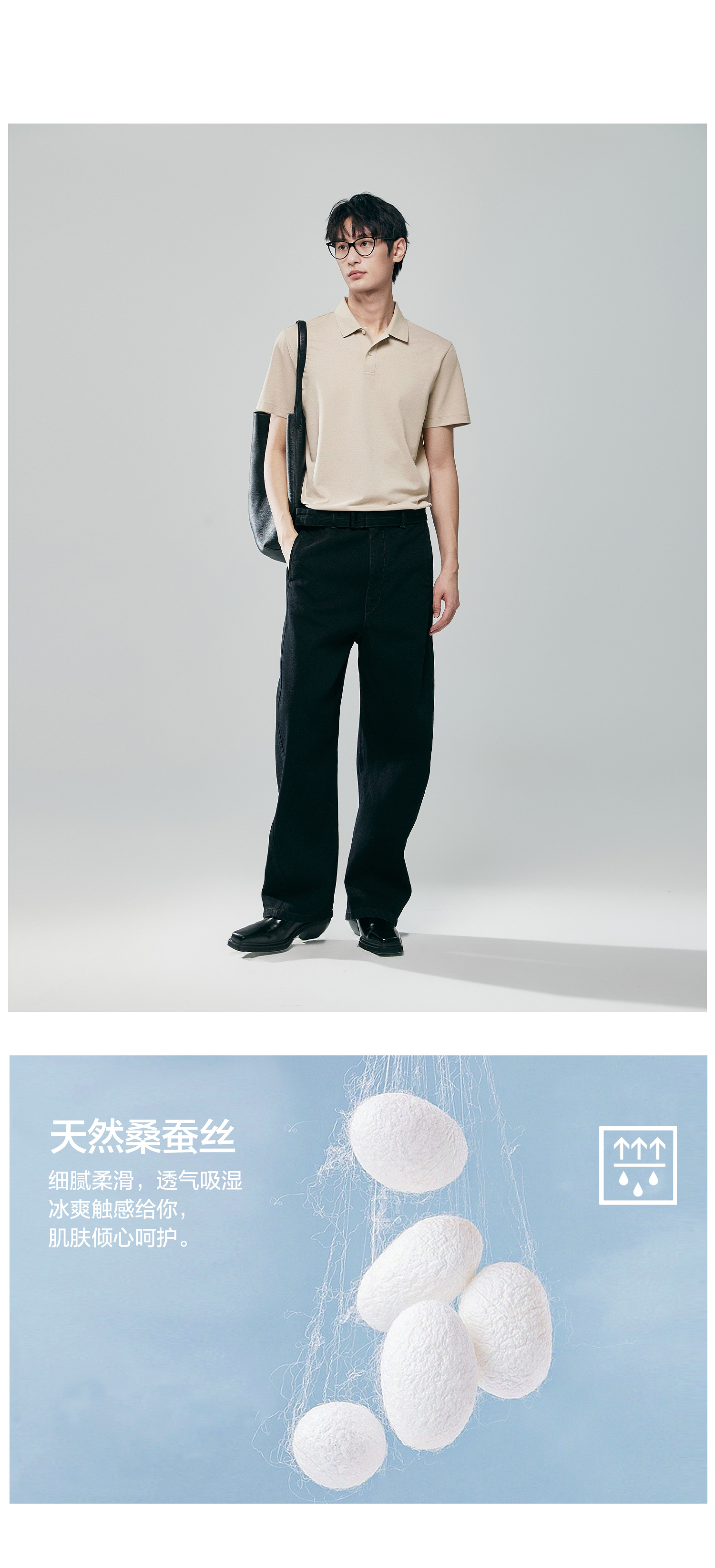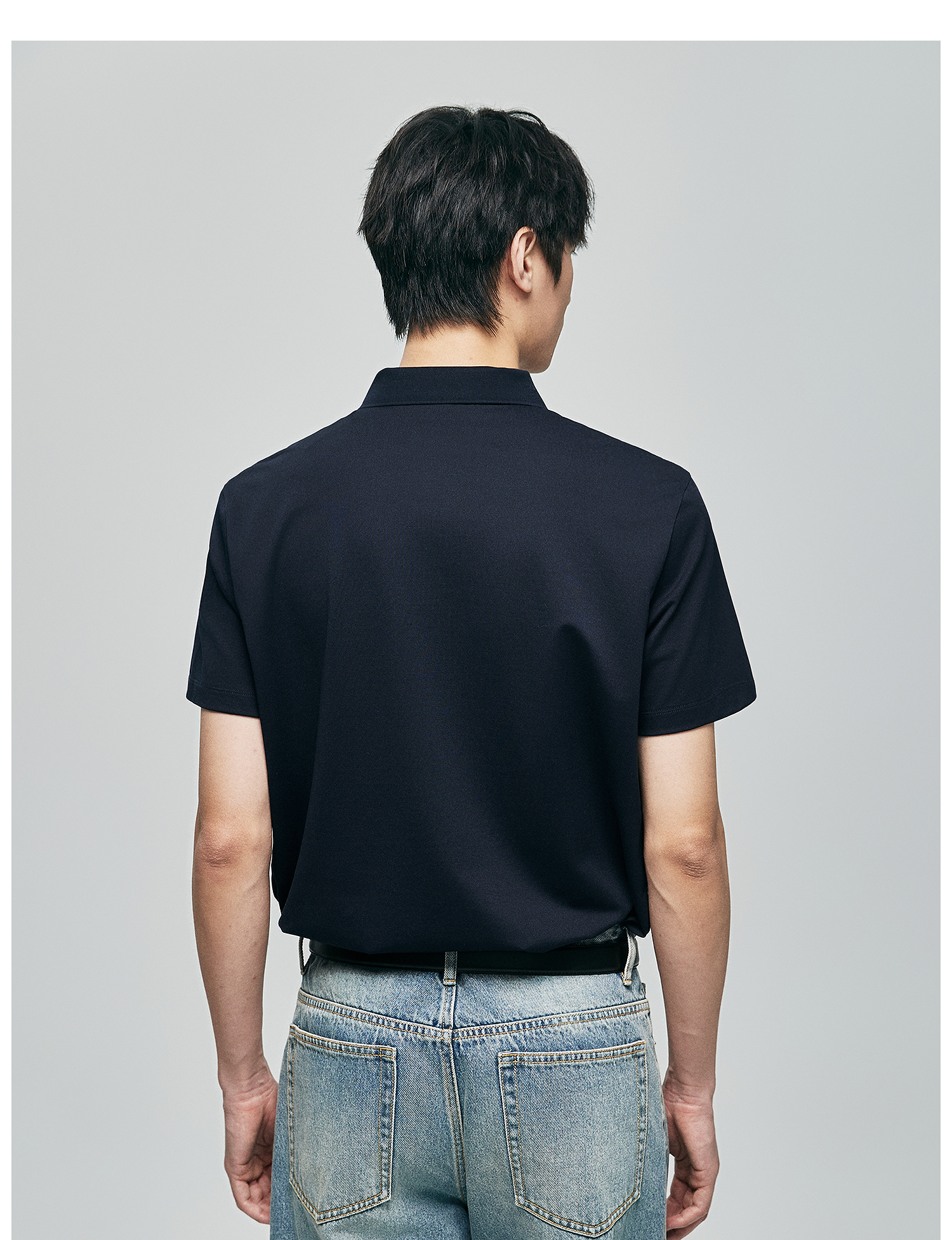棉仓363802009-玉爽丝米格短袖扁机一片领两粒扣短袖POLO