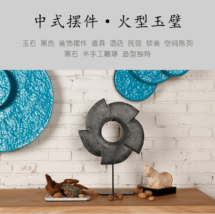 火轮玉片桌面摆件中式玉璧
