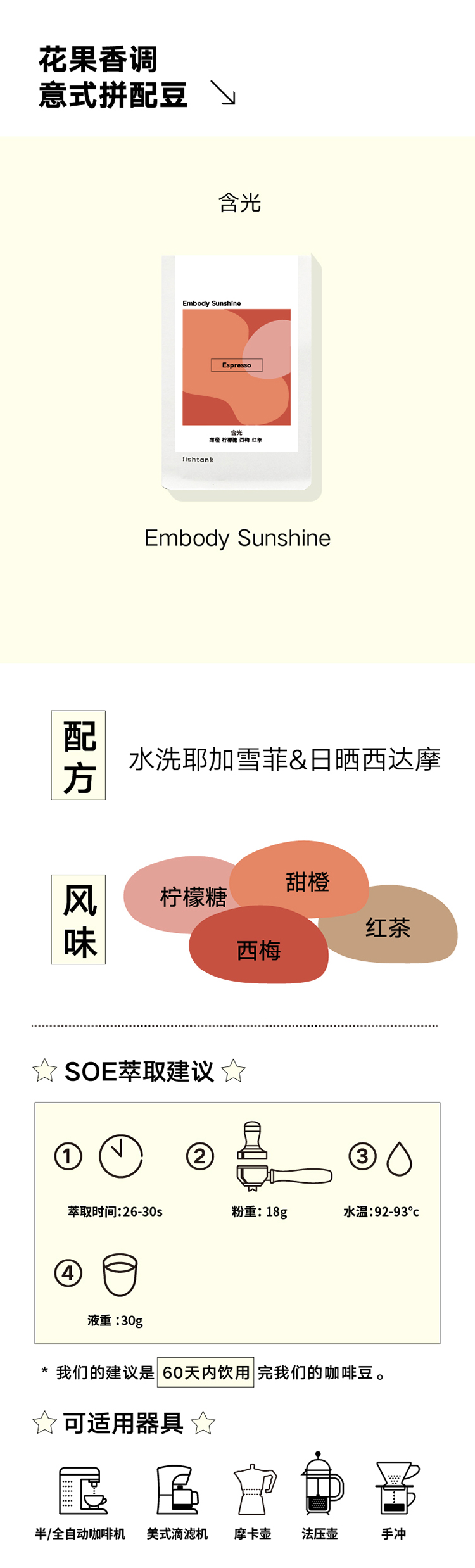 【1kg囤货装】浅烘花果香 含光 意式拼配豆1kg