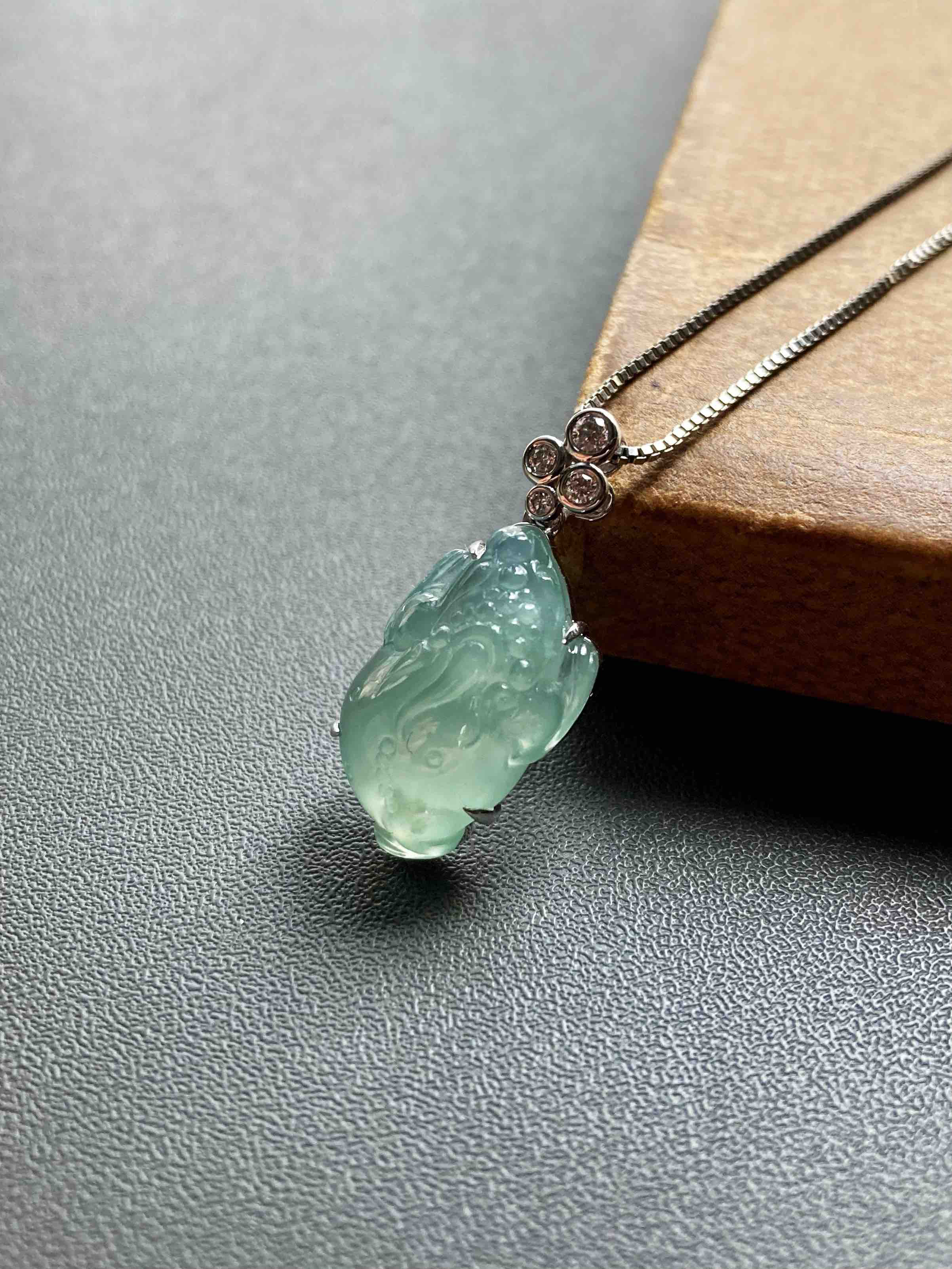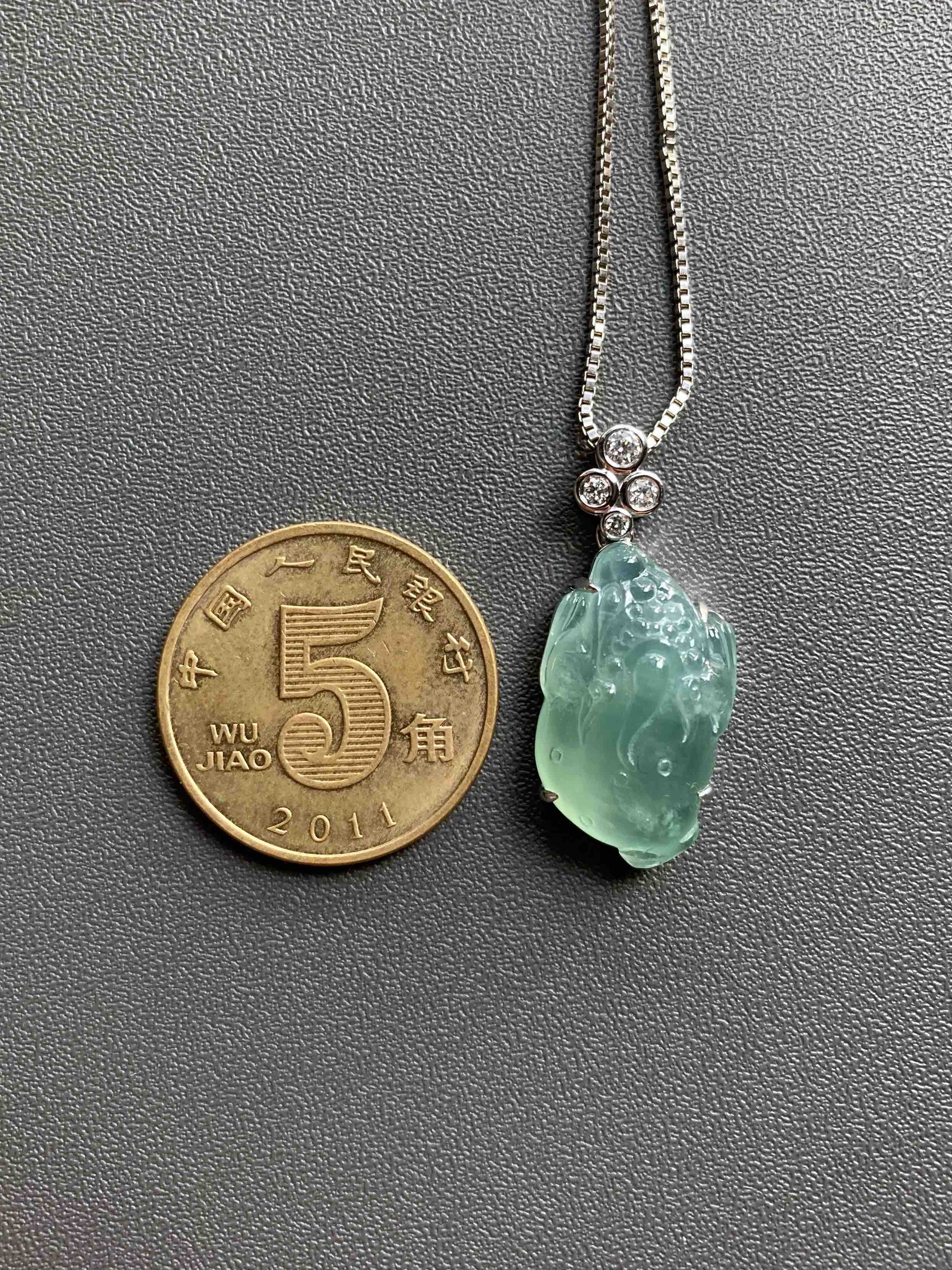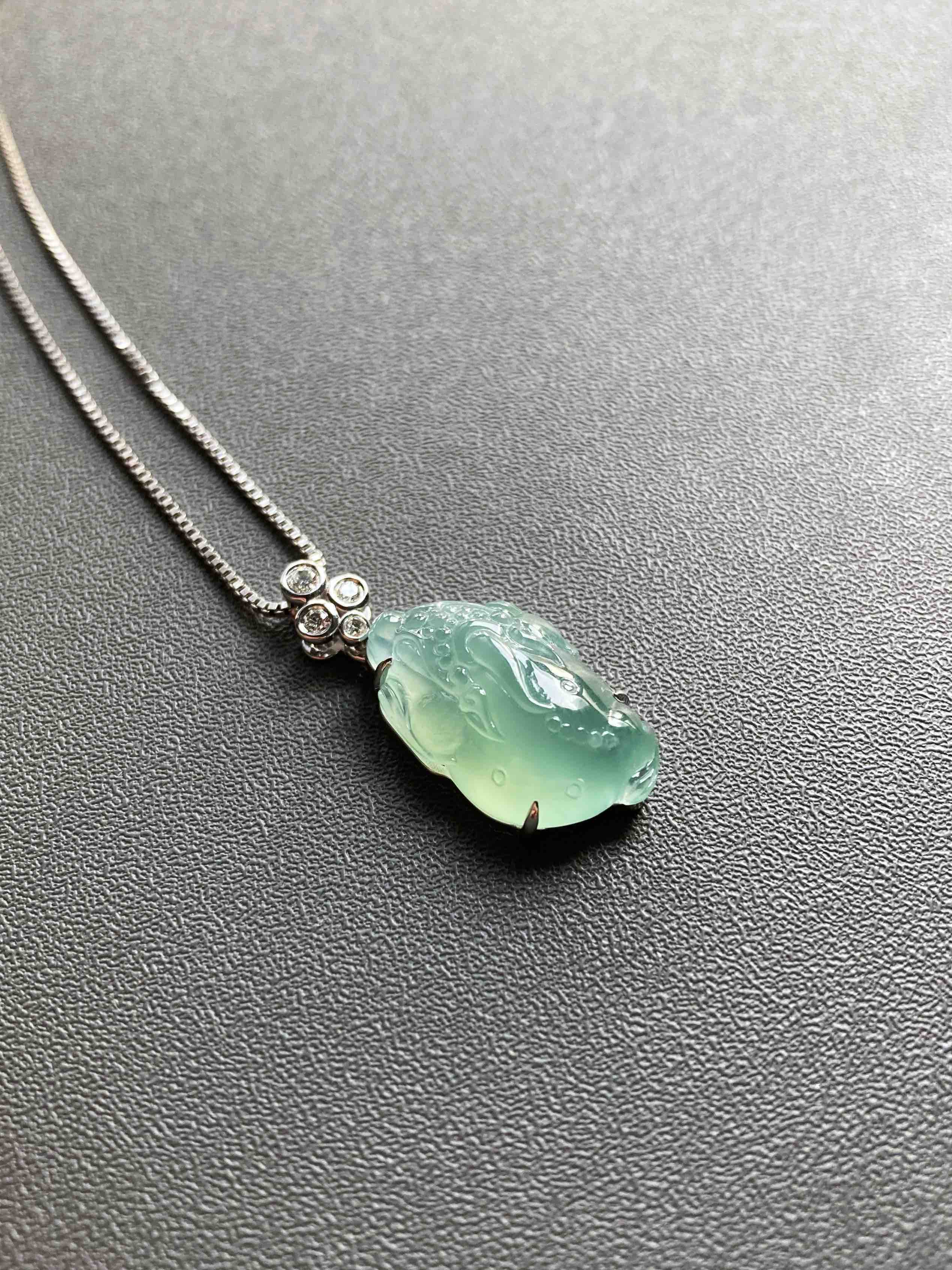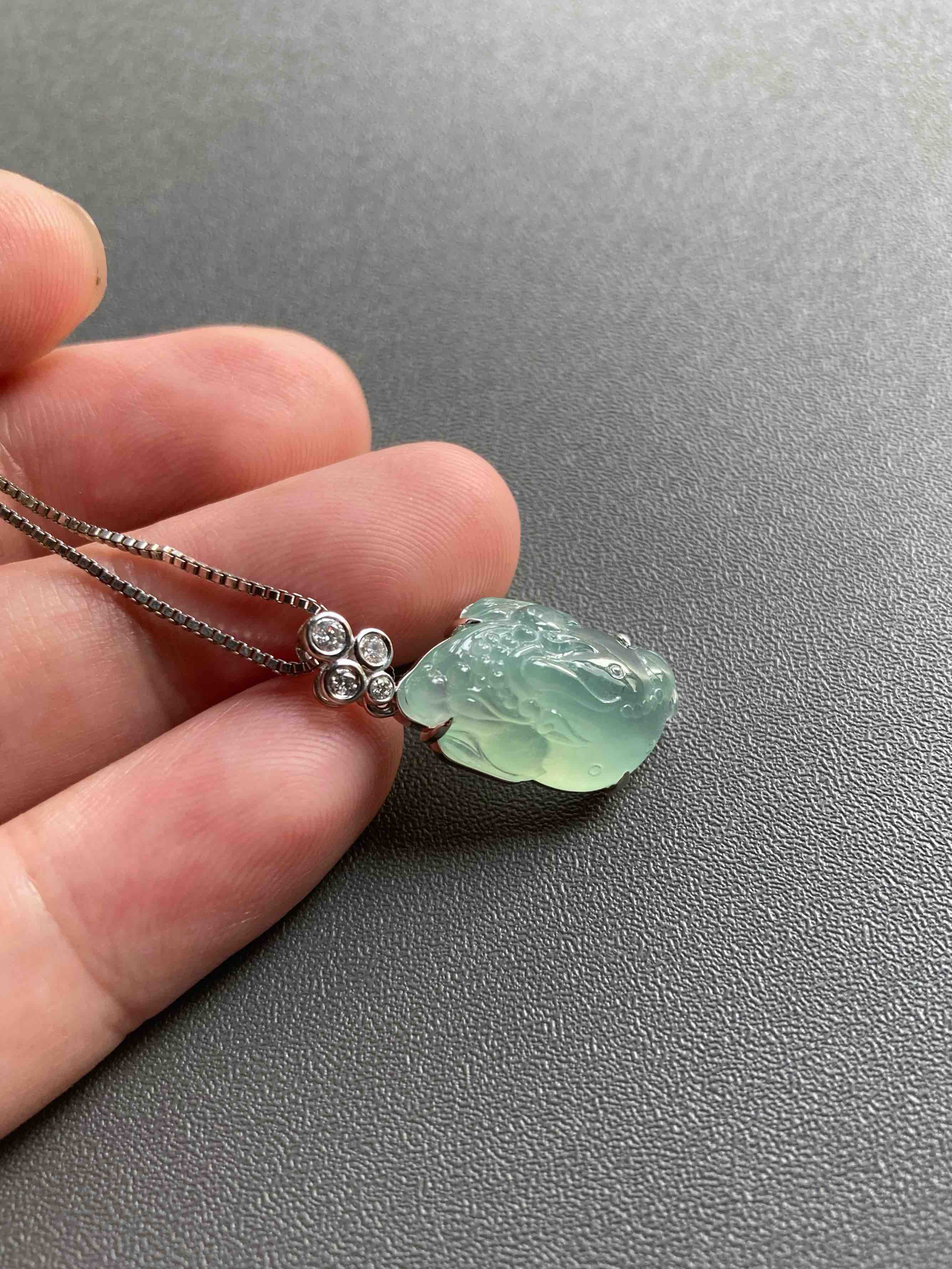 冰种淡晴水厚庄翡翠金蟾18k白金钻石镶嵌