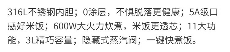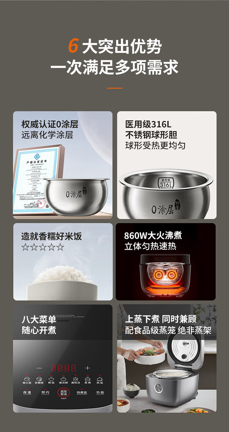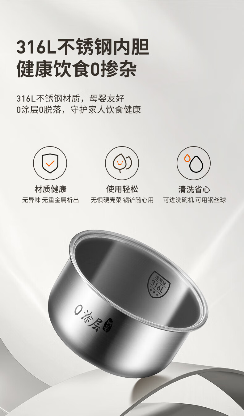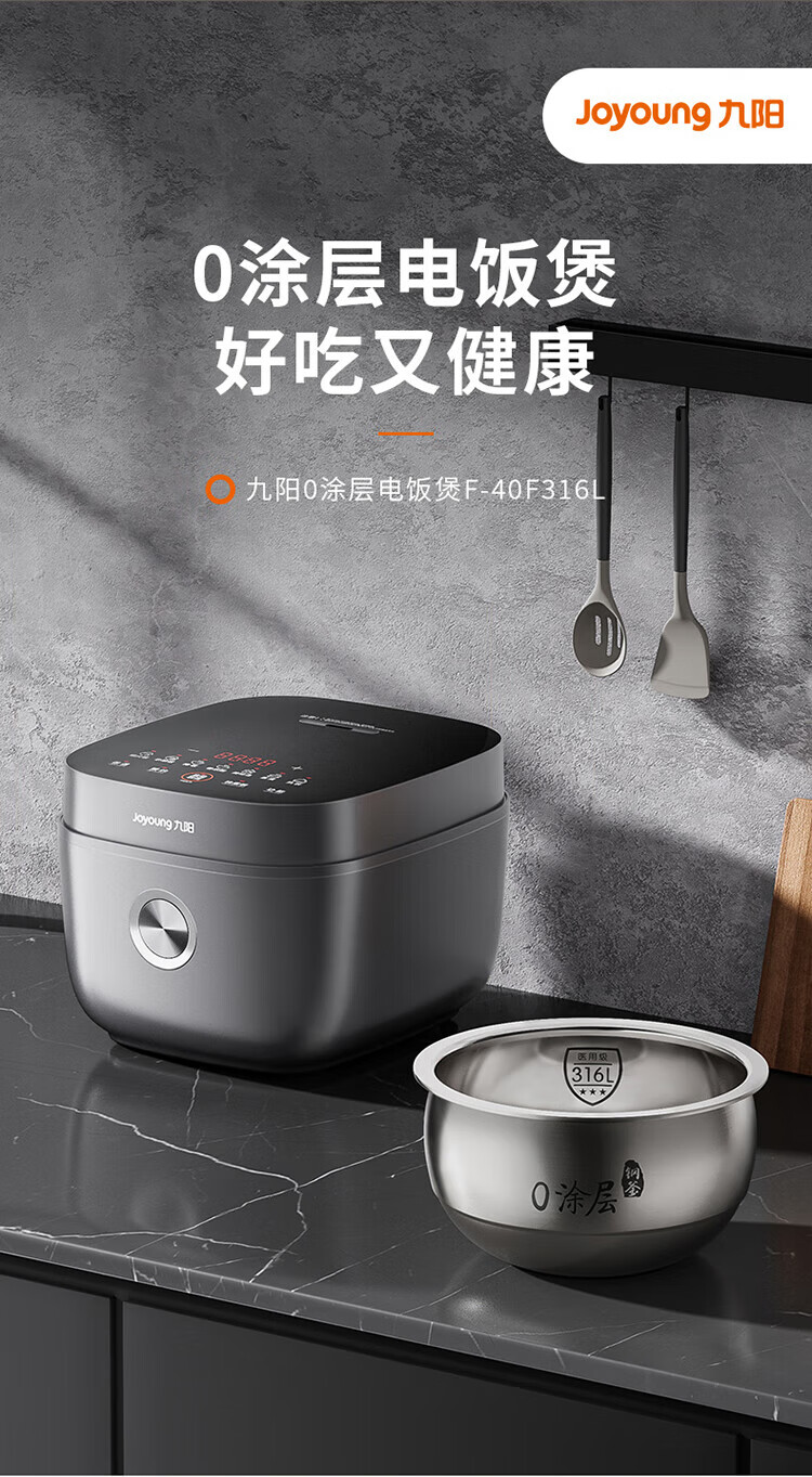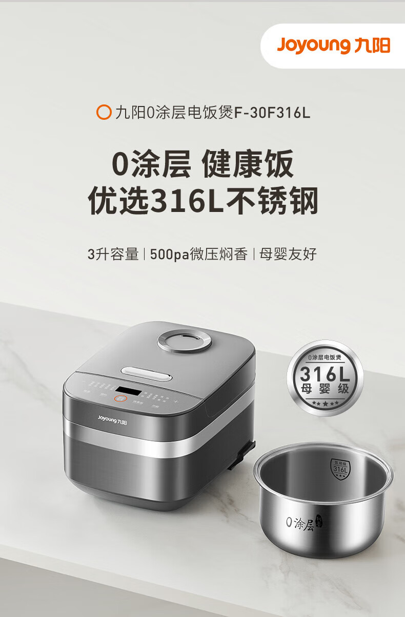 九阳3升0涂层电饭煲316L不锈钢内胆智能预约家用多功能蒸煮电饭锅