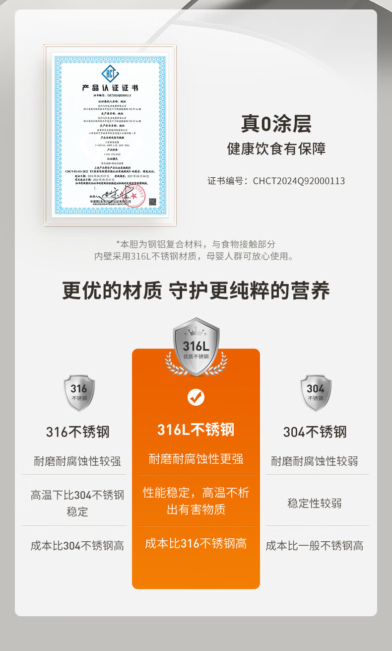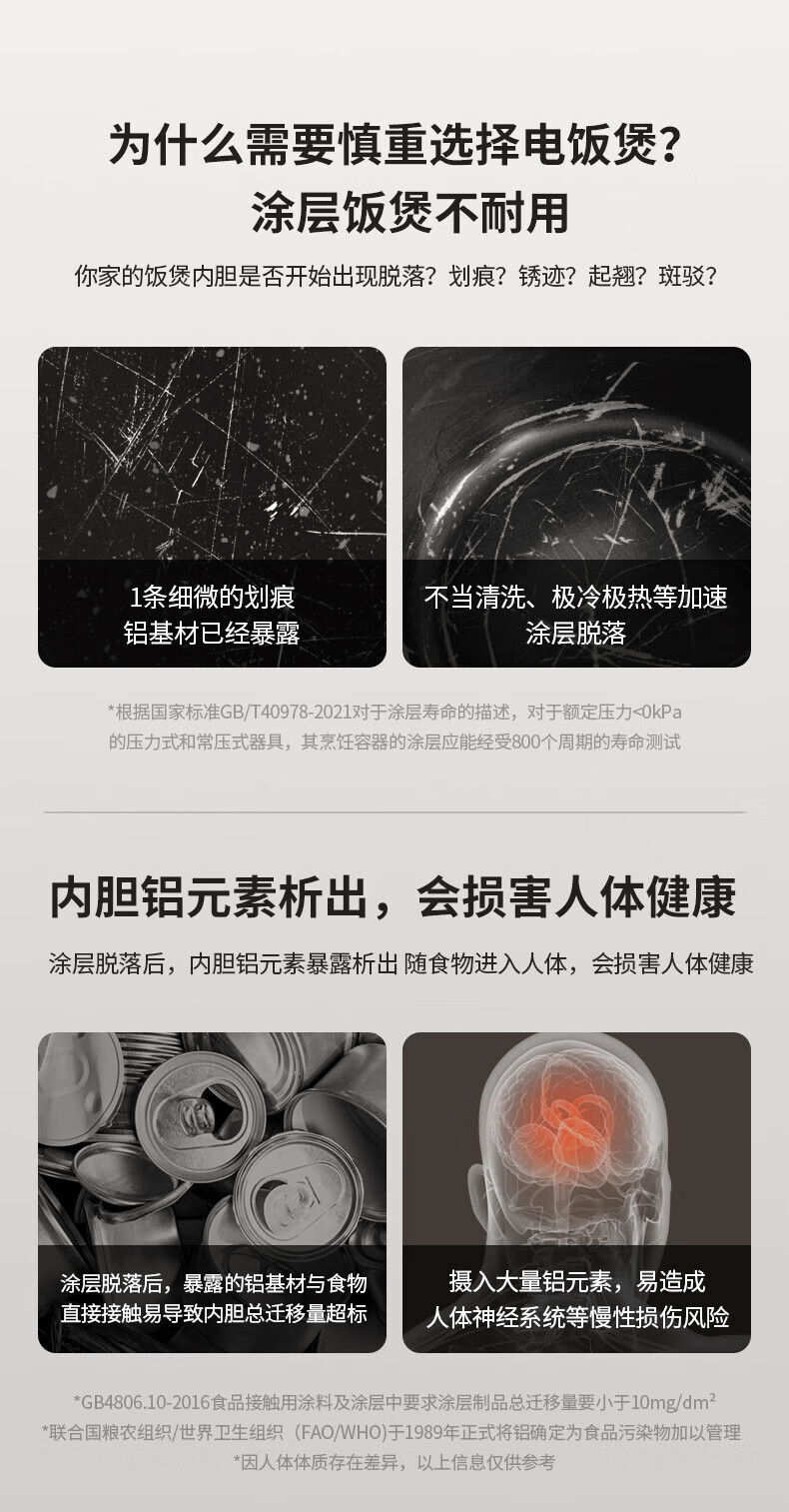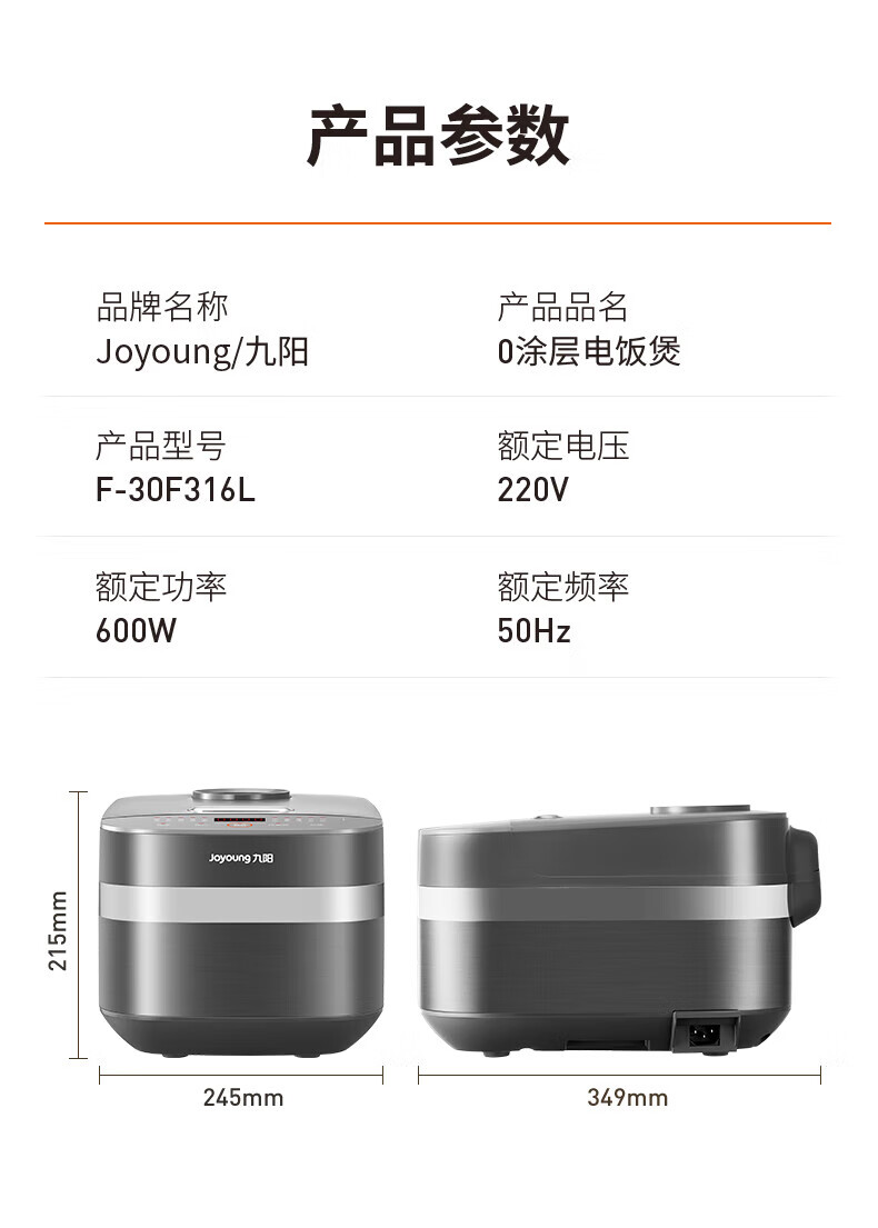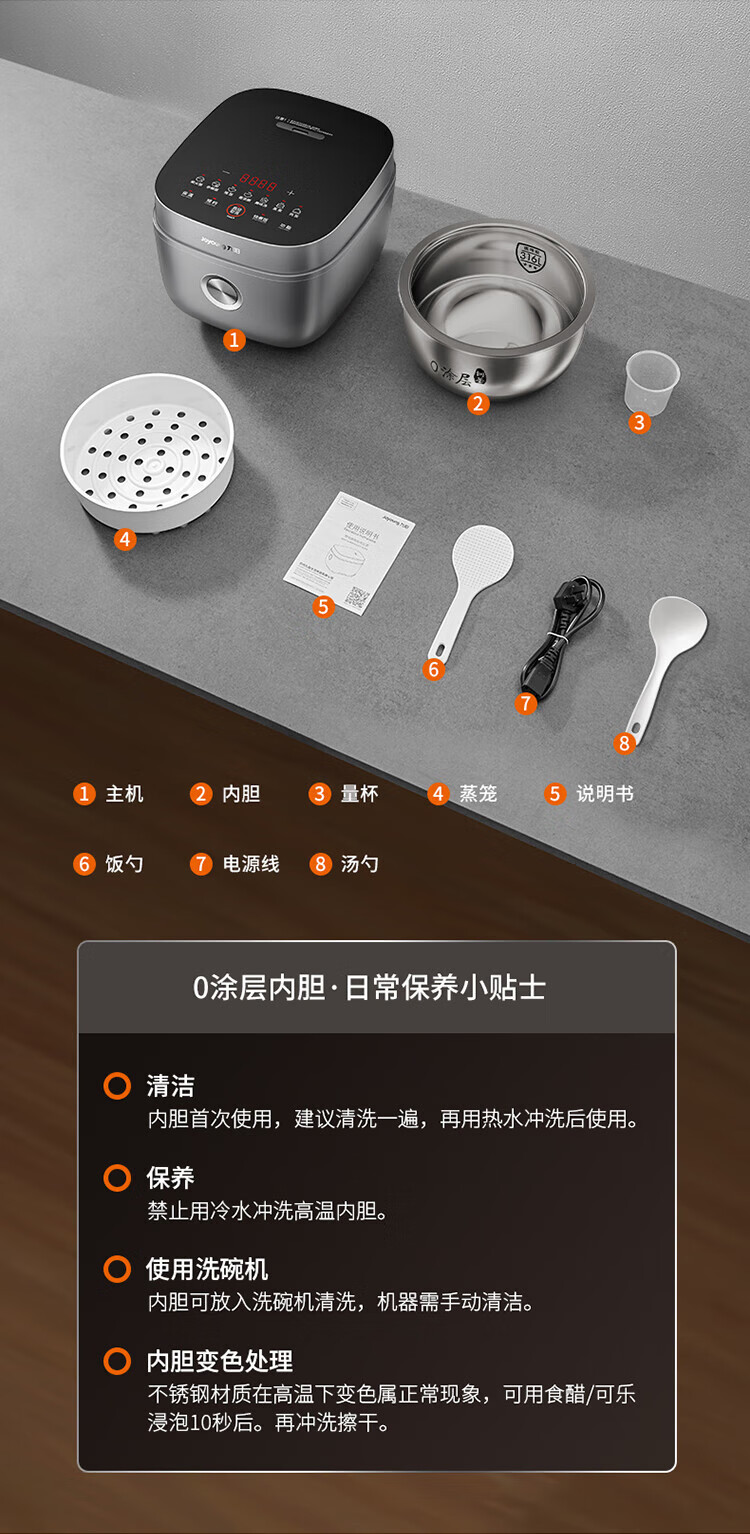 九阳3升0涂层电饭煲316L不锈钢内胆智能预约家用多功能蒸煮电饭锅
