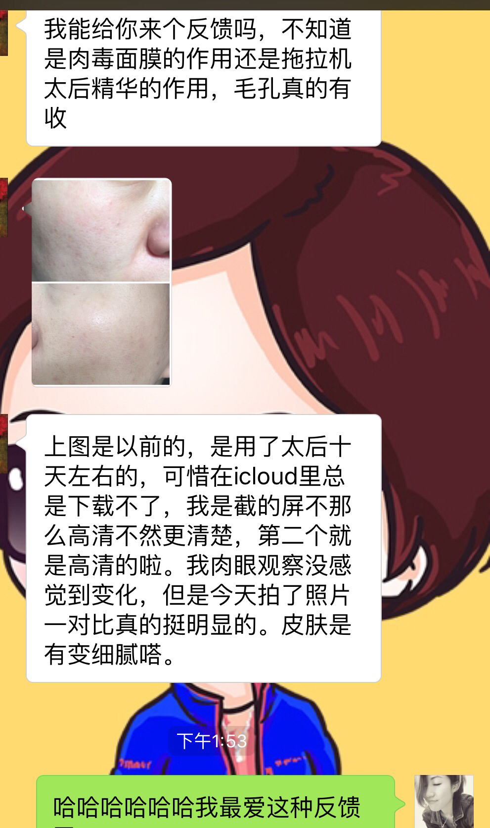 一个晚上之后,配合了SAL一道光和SAL的app,皮肤软嫩发亮,最容易看到粗大毛孔的早晨居然全都是闭合的,不干不油的状态真是让人开心。不过话说回来,我希望大家理性的对待依靠产品改善松弛的问题。举个例子,已经成型的深深的法令很难单纯依靠产品彻底解决,产品能做到的,是延缓衰老并且抑制恶化。至今还没有一支一抹就平的去皱产品问世,如果有,你们当医美是吃干饭的?你们当基因改造工程是儿戏?