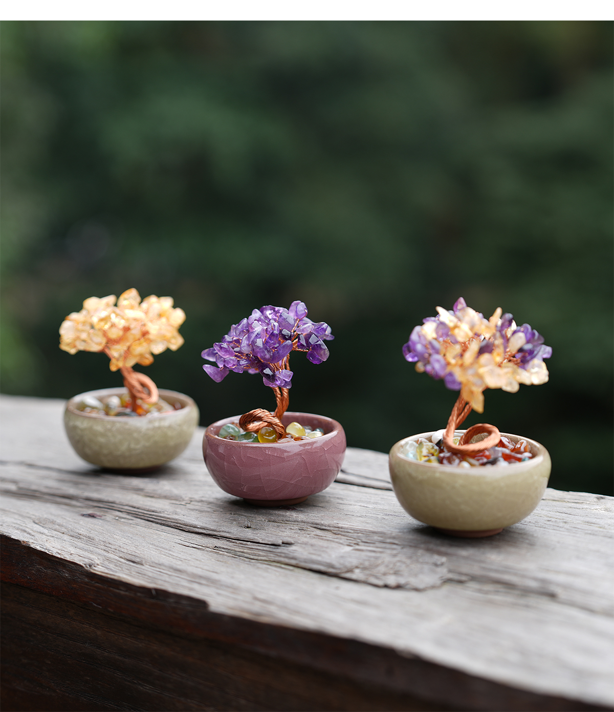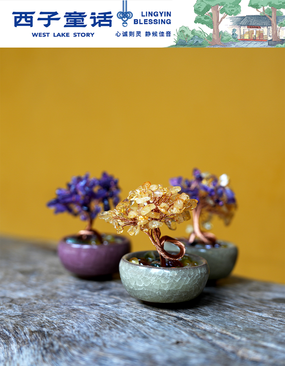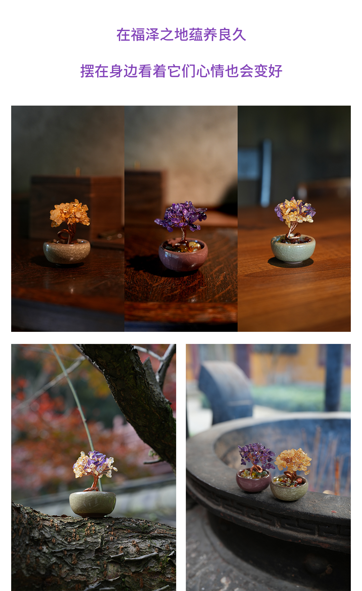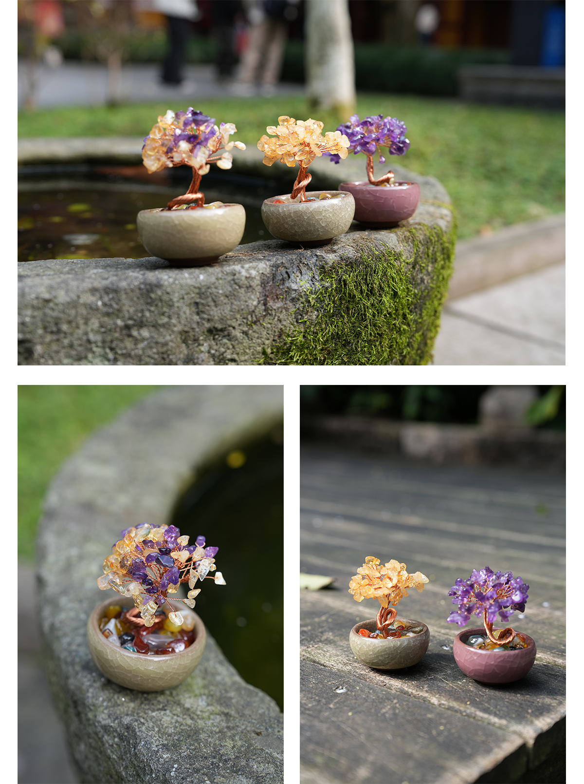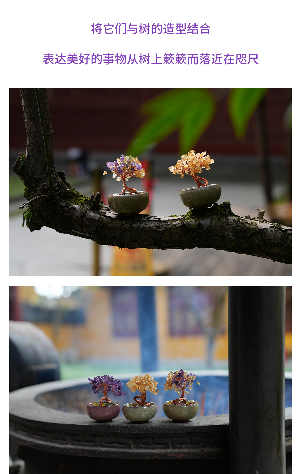 【灵隠景区直发】发财树摆件黄水晶风水玄关摆件招财桌面摆件办公室水晶摆件 3-5天发货